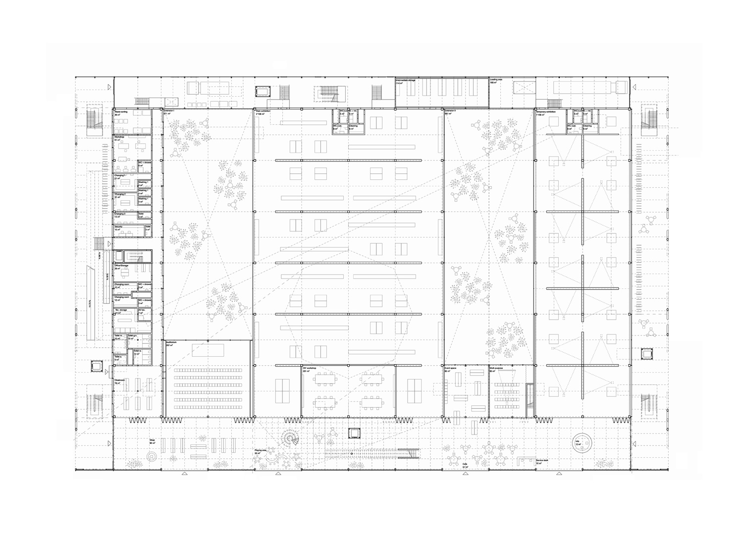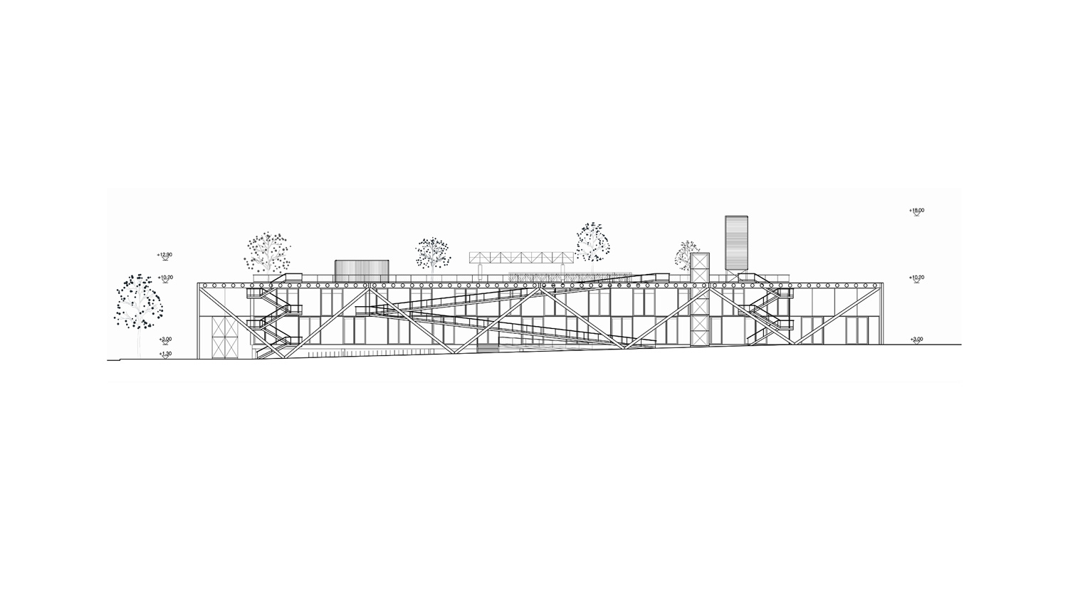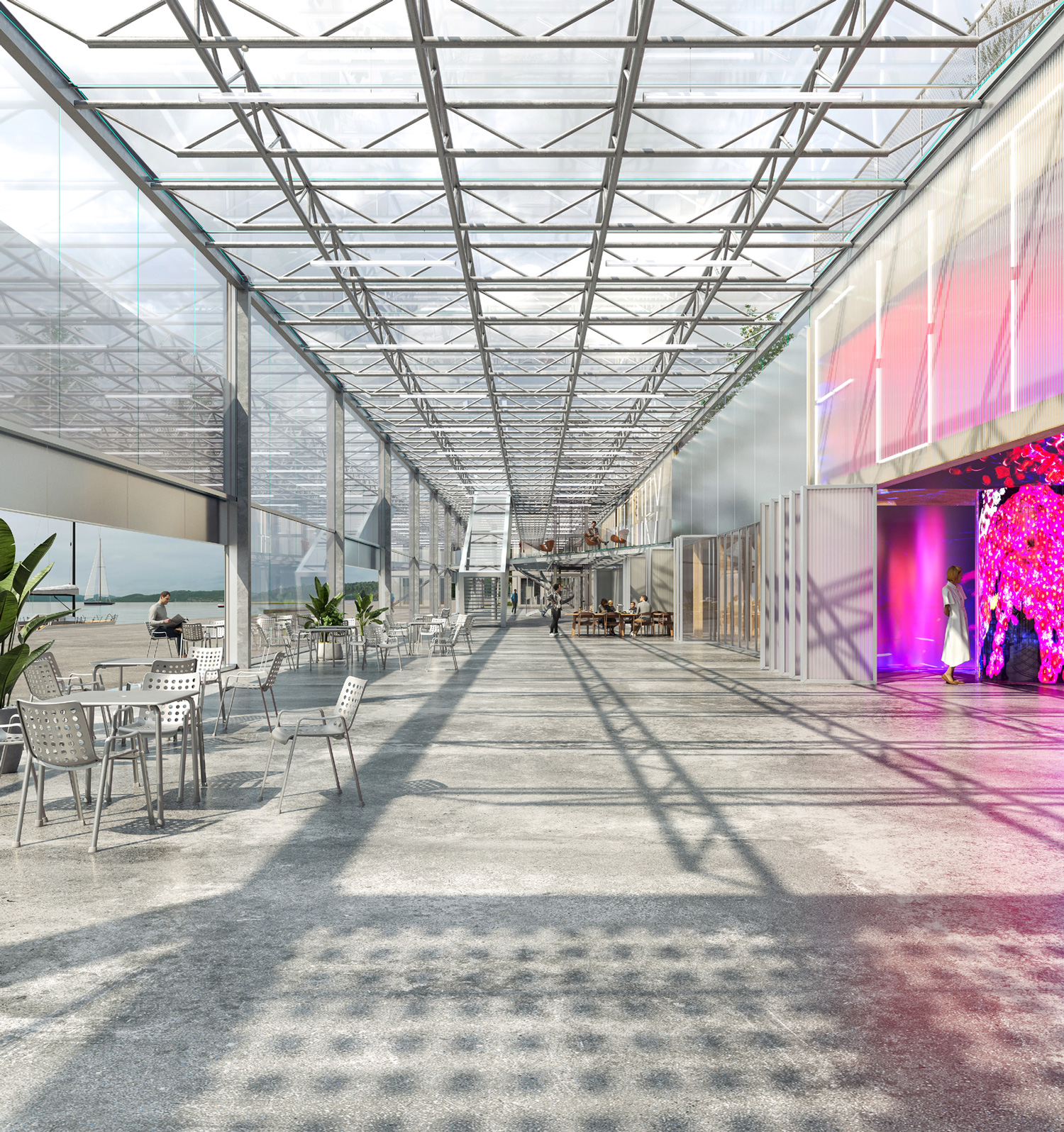 International competition for the new Museum of History and Future at the Seashore in Turku, Finland. The design draws architectural, structural, organizational, and material references from the past, present, and future use of the port. Elements like shipyards, warehouses, cargo-handling infrastructure, and terminal buildings for passengers and vehicles influence the building’s design, ensuring a connection with its role as a museum of history and future. The project repurposes existing port infrastructure, turning necessity into an opportunity for sustainability: bridges, ramps, containers, and entire pavilions, as well as structural and façade elements from the existing buildings, are integrated into the new design as objets trouvés from the harbor, symbolizing both the past and future through their reuse.
