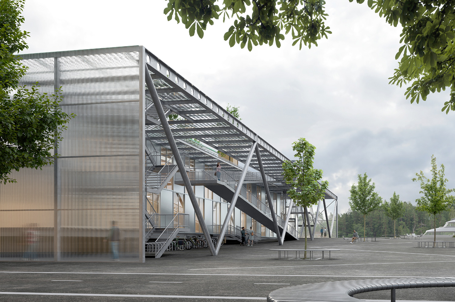 ☉ Museum for History and Future is a proposal by Dürig Ag for City of Turku. It is located in Turku Finland in a seaside setting. Its scale is medium with a surface of 6.900 sqm. Key materials are metal and polycarbonate. Tegmark collaborated as visualizer. Concepts such as technology and sustainability are explored. Review the 6 proposals for the same competition.