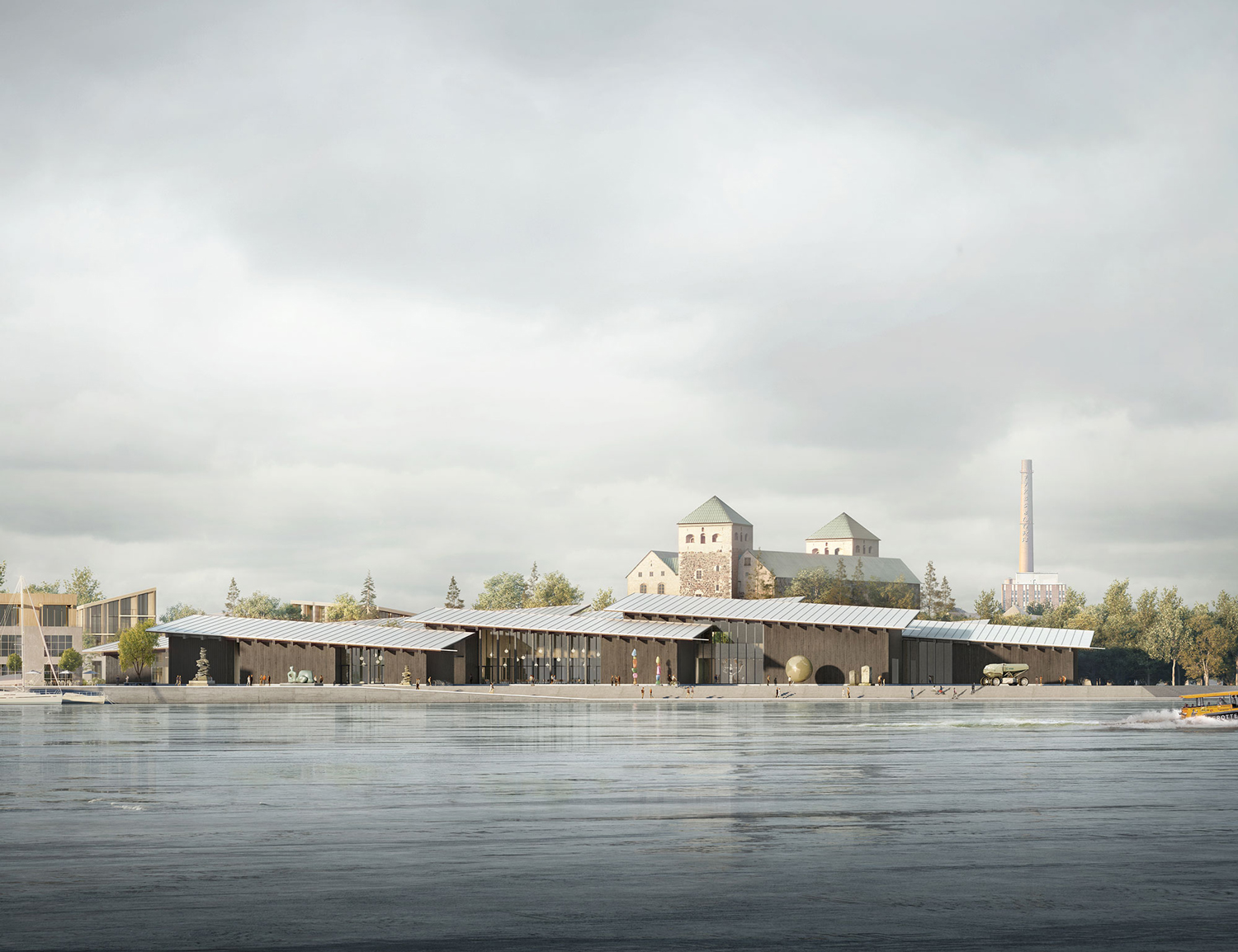 The Museum is in constant dialogue with its surroundings and offers a lens through which to contextualise the ever-changing perspectives Turku offers. The building’s orientation and proposed landscaping create a condition of privacy benefiting neighbouring residential areas while allowing for solar gains inside and in between the built forms. Grand glazed windows on the ground floor offer panoramic views of the waterfront, and on the second floor galleries frame curated views of the historic surrounding built environment.