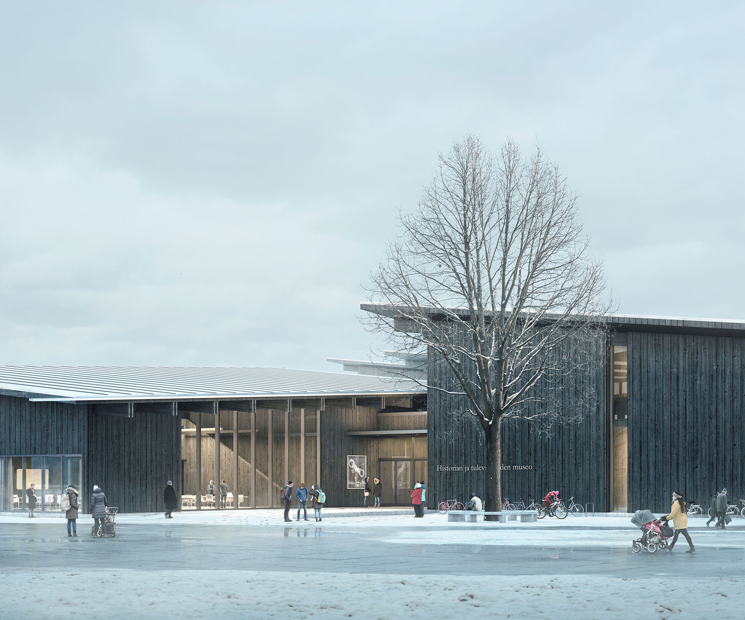 The role of the museum in contemporary society is one prone to evolution and state-change. We believe the Museum of History and the Future in the City of Turku has to embody Linnanniemi culture and constantly challenge public expectation primarily by staying present and quotidian, activating the urban condition within which it is located. Our vision comes into place with higher consciousness towards local materials, vernacular forms, and finite resources, whilst offering a flexible, adaptable and resilient space that elevates human comfort and well-being; ‘Matkustaja’ defies time by acting as a portal and invites you to travel.