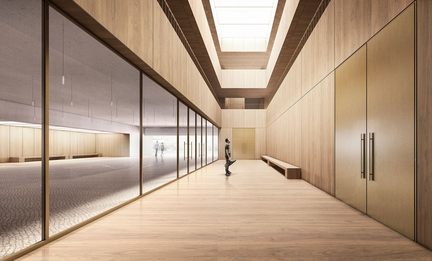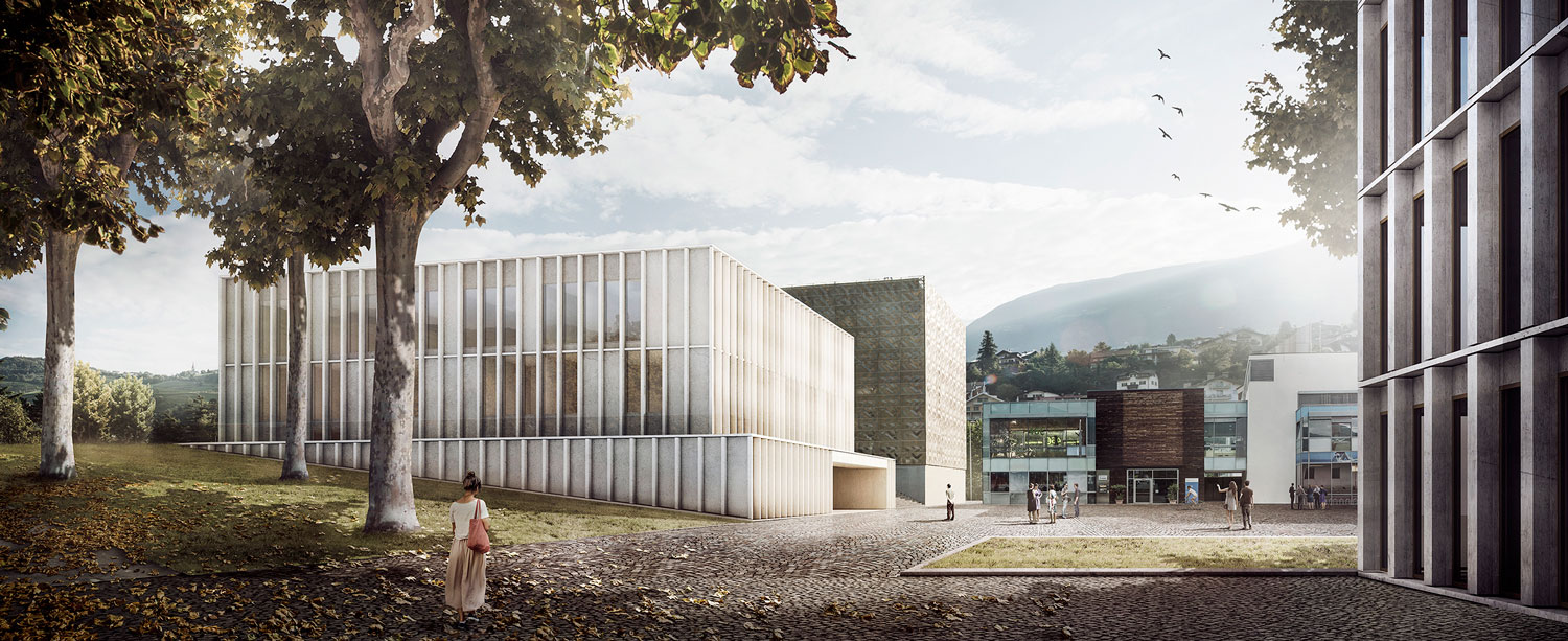 The project of the Music School of Bressanone is set in a strategic urban context for the city. The area allows access to the historical center from the North, while it connects the green axis of the riverpark of the Isarco river to the West of the territory, becoming an important node in terms of mobility, social life and the future development of the city. The proposal responds to the existing urban complexity through a new building able to lay out the programme of use on three levels. The building is made up of a foundation volume which hosts the main public functions of the school, the covered gallery and the music band areas while the classrooms are laid out in the top volume on two levels.