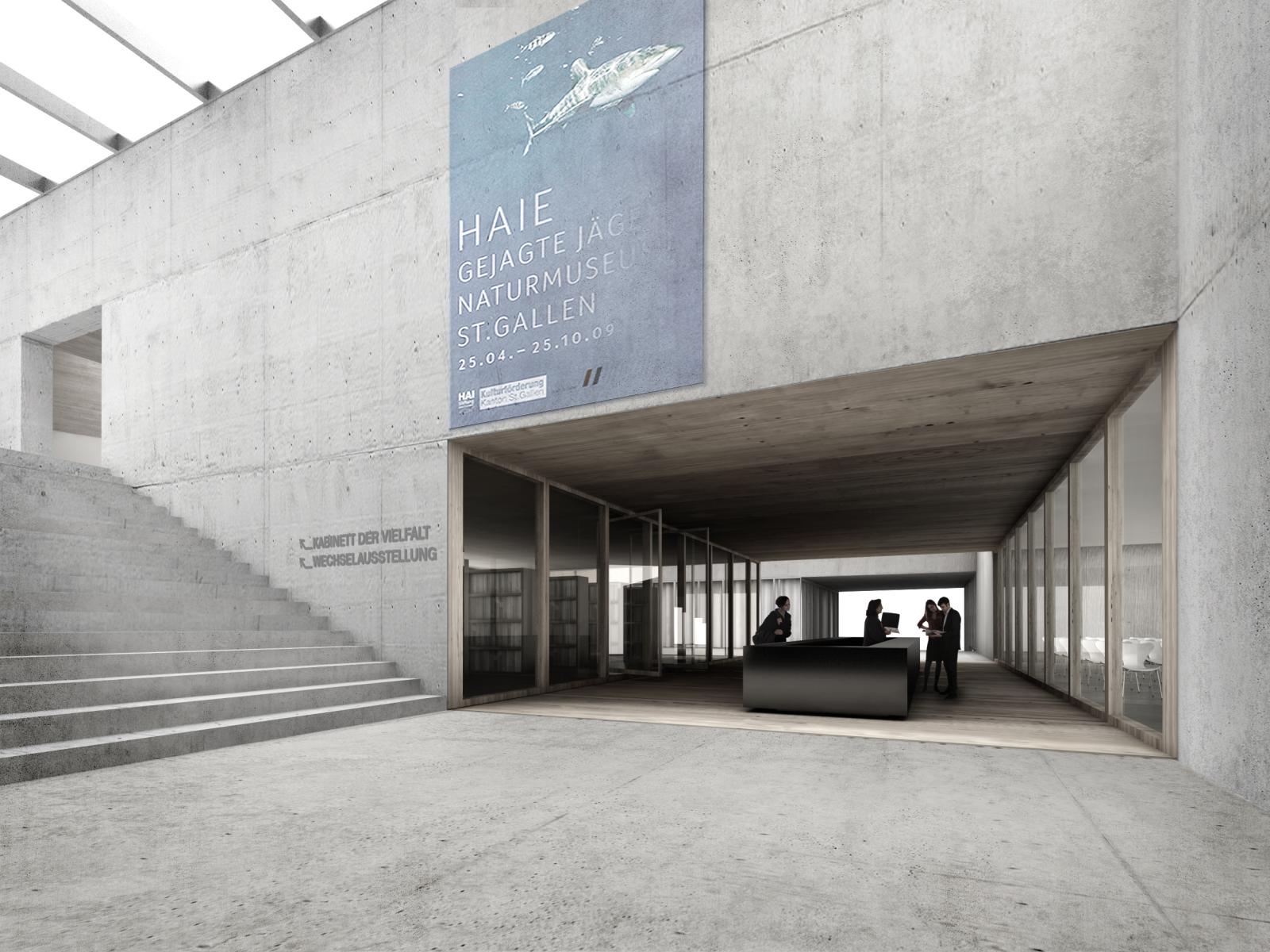 Naturmuseum St. Gallen is a second prize proposal by e2a for Stadt St. Gallen designed in 2010. It is located in St. Gallen Switzerland in a park setting. Its scale is medium. Key material is concrete. Concepts such as ribs lattice and sloped roof are explored. Review the 3 proposals for the same competition.