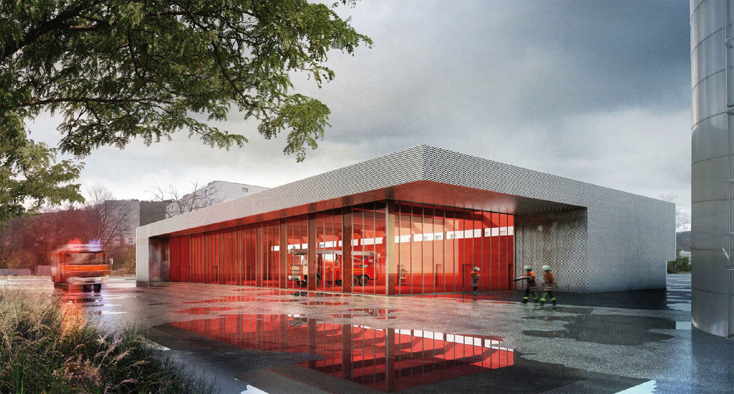 Neubau Feuerwehrmagazin is a completed project by Berrel Berrel Kräutler for Municipality of Pratteln designed in 2010. It is located in Pratteln Switzerland in an industrial setting. Its scale is medium. Key materials are glass and metal. Concepts such as transparency and color explosion are explored.