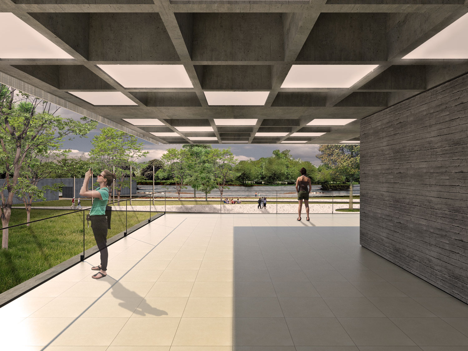☉ Neuquén mira al río is an academic project by Mauro Benedetti and Ariana Sánchez for Universidad de Flores designed in 2016. It is located in Neuquén Argentina in a riverside setting. Its scale is large. Key materials are concrete and metal. Concepts such as water circle shape open room enclosure and nature are explored.