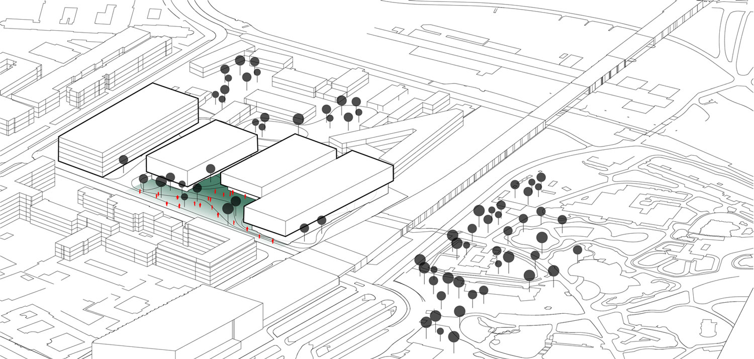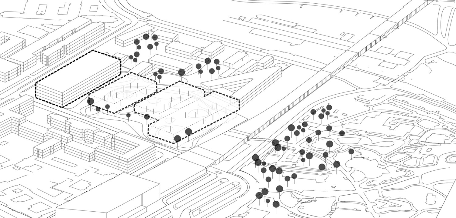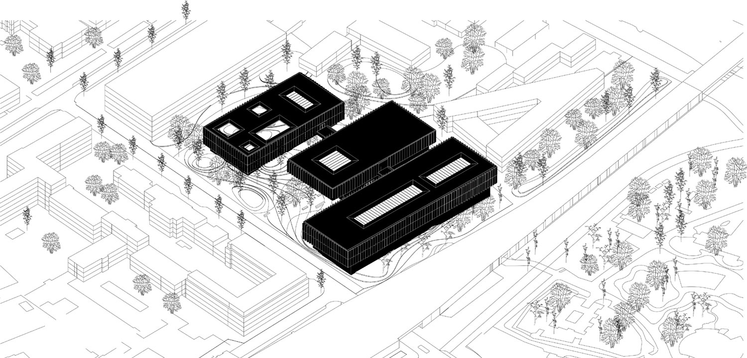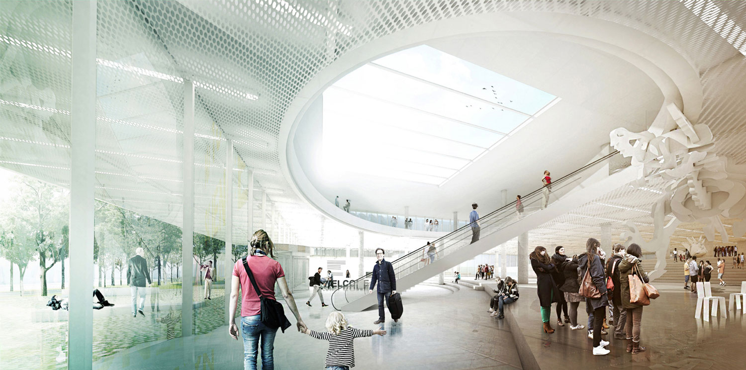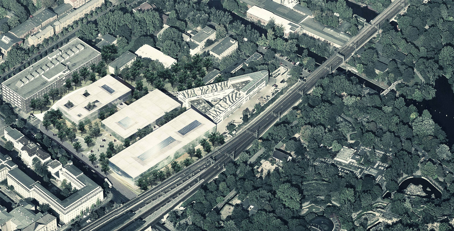 ☉ New Berlin Natural Science Museum is a winning proposal by NAS Architecture for AWR Competitions designed in 2014. It is located in Berlin Germany in a park and railway setting. Its scale is large with a surface of 30.000 sqm. Key material is concrete. Concepts such as parallel blocks nature and underground are explored.