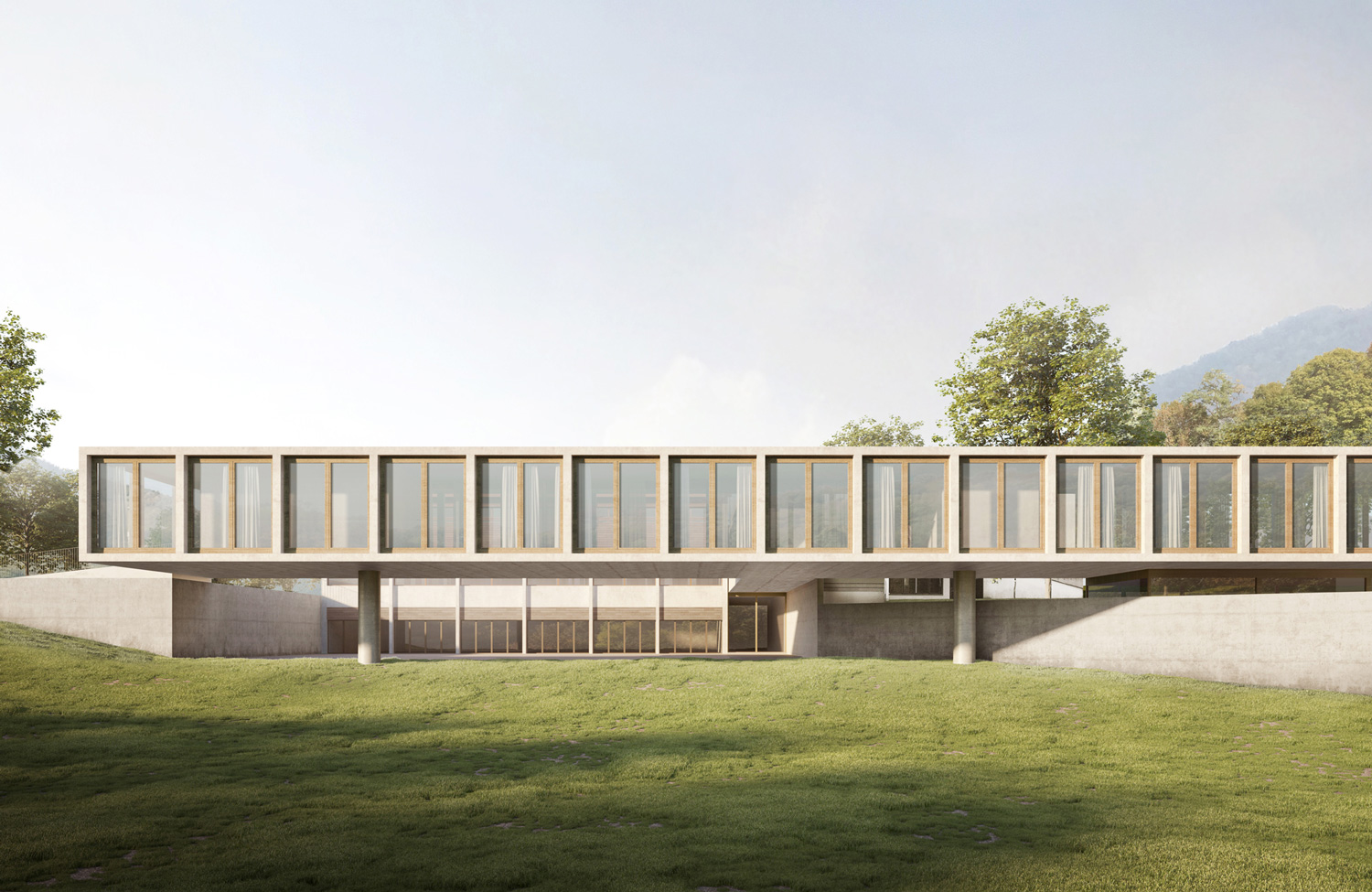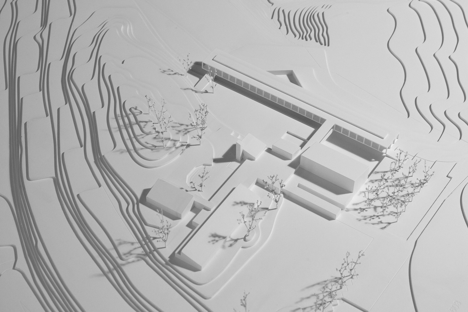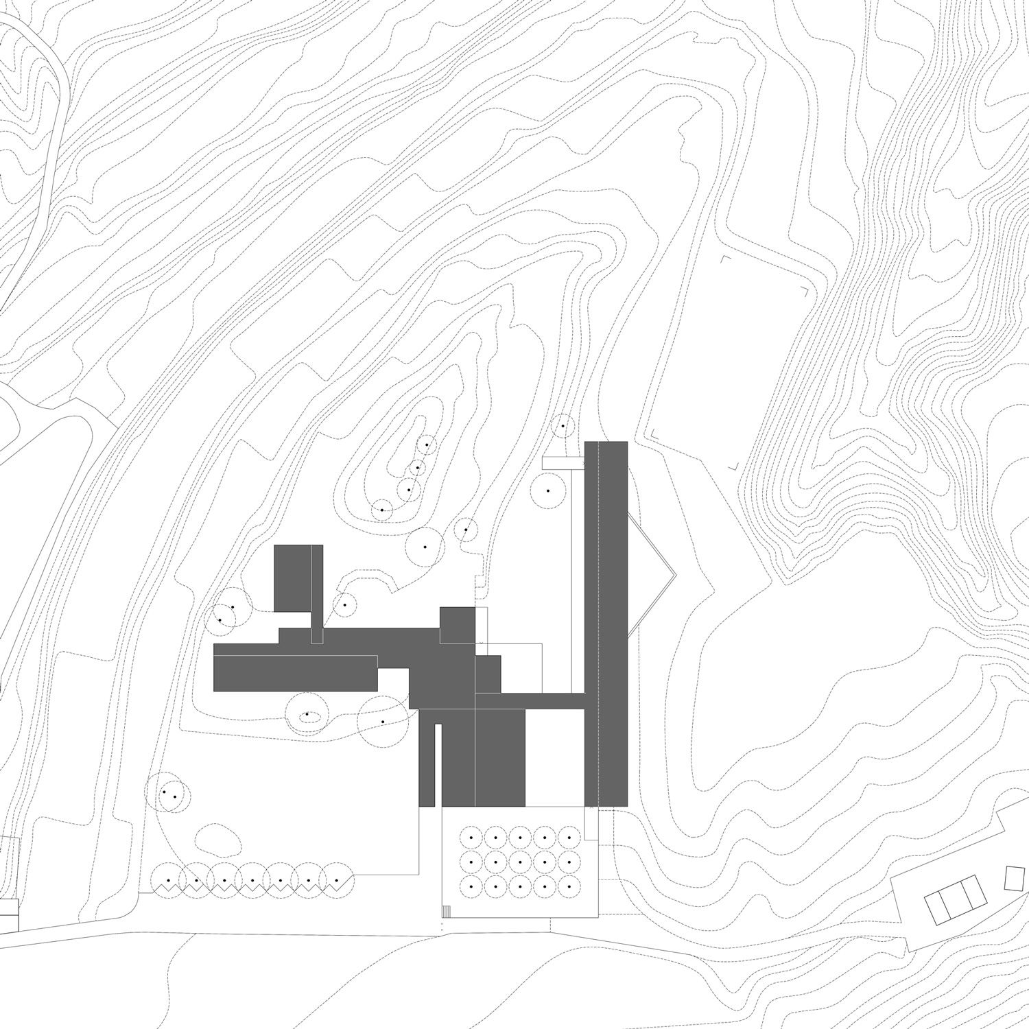 The project becomes part of the settlement system of the existing ensemble, which is in pleasant balance with this special place. The reference altitude is the higher one of the existing entrance: starting from here, the new building reshapes the contour of the hill and becomes a public path. A new front is offered to the valley, redeeming what today appears as a back. At the higher level the most public part of the program, at the lower an intimate world intended for the children.