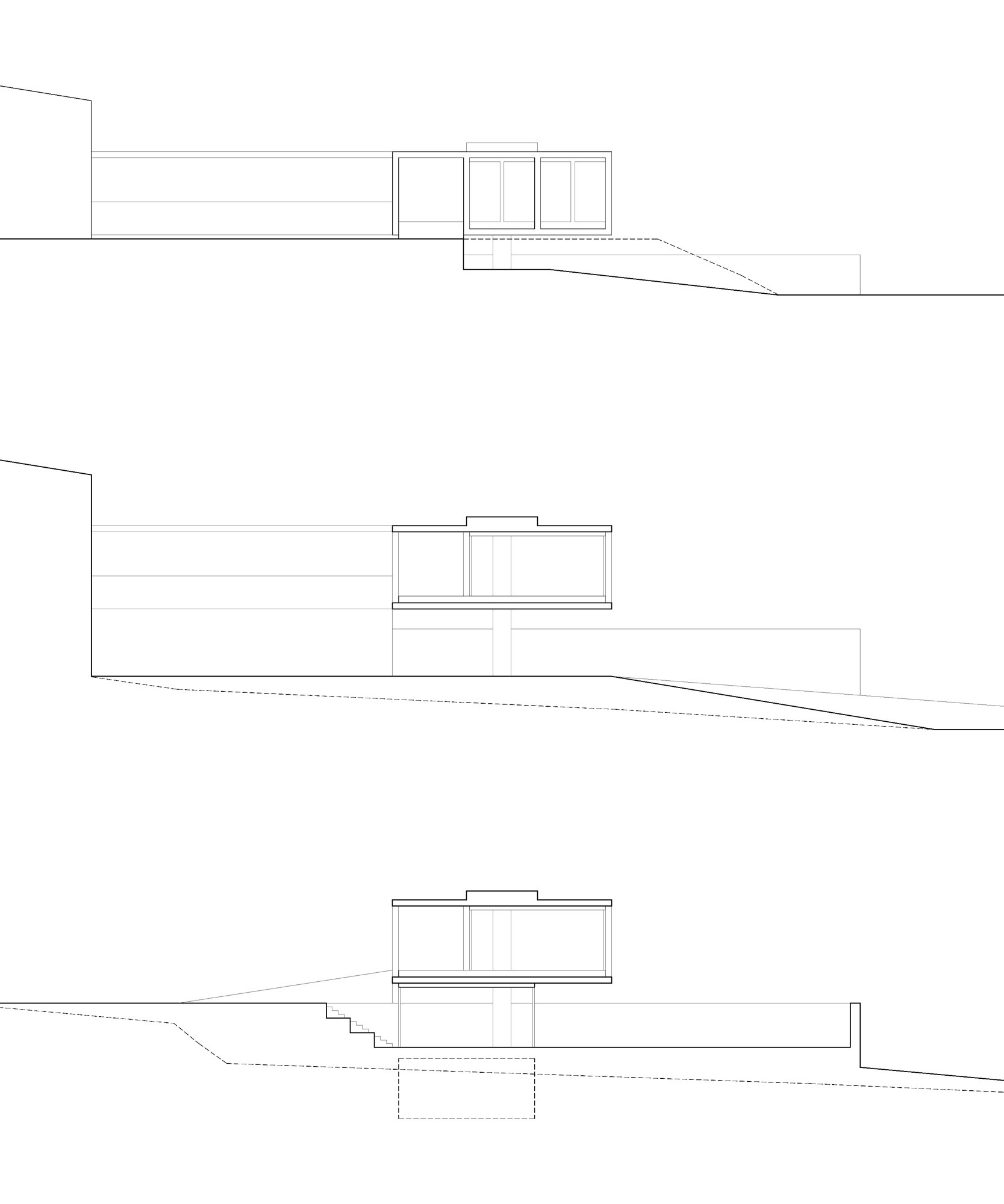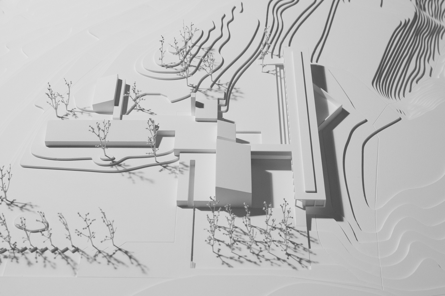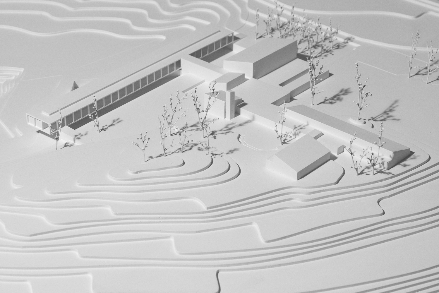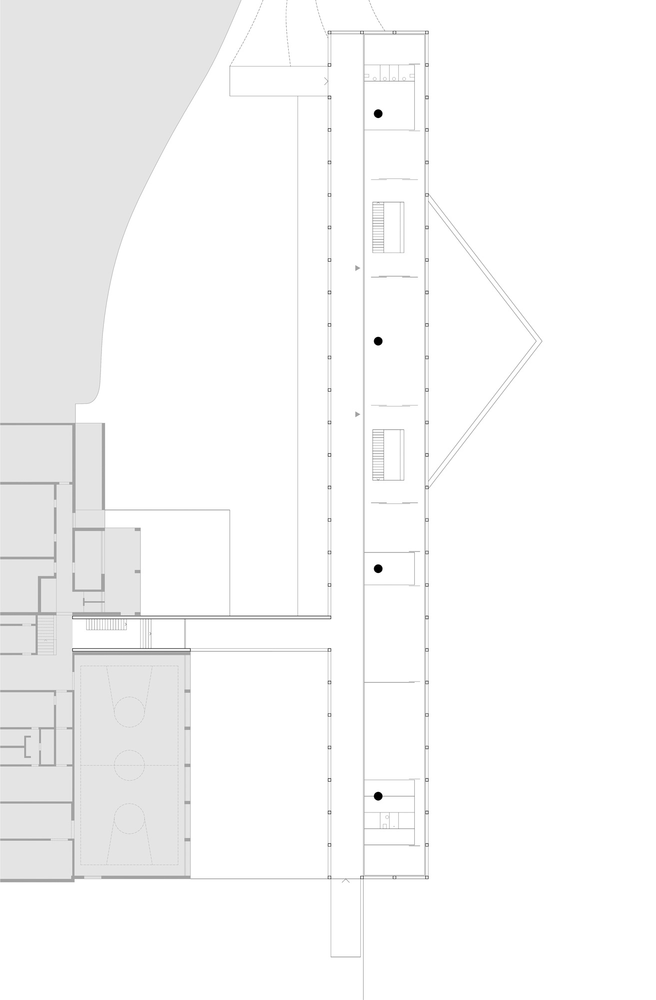 The project becomes part of the settlement system of the existing ensemble, which is in pleasant balance with this special place. The reference altitude is the higher one of the existing entrance: starting from here, the new building reshapes the contour of the hill and becomes a public path. A new front is offered to the valley, redeeming what today appears as a back. At the higher level the most public part of the program, at the lower an intimate world intended for the children.