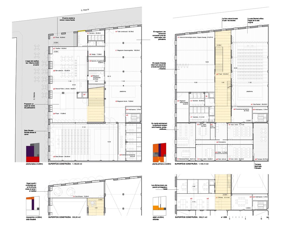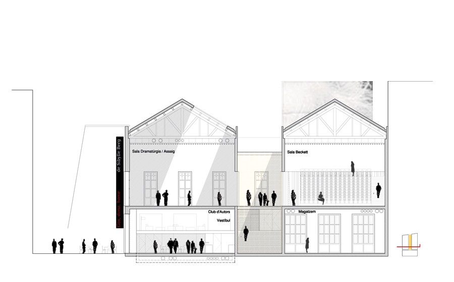 New Sala Beckett is a proposal by BAAS for Sala Beckett Institut de Cultura de Barcelona and Generalitat de Catalunya designed in 2011. It is located in Barcelona Spain in an urban setting. Its scale is medium with a surface of 2.868 sqm an estimated budget of 5.306.963 € and a ratio of 1.850 €/sqm. Key materials are brick and metal. The concept of adaptable reuse is explored. Review the 2 proposals for the same competition.