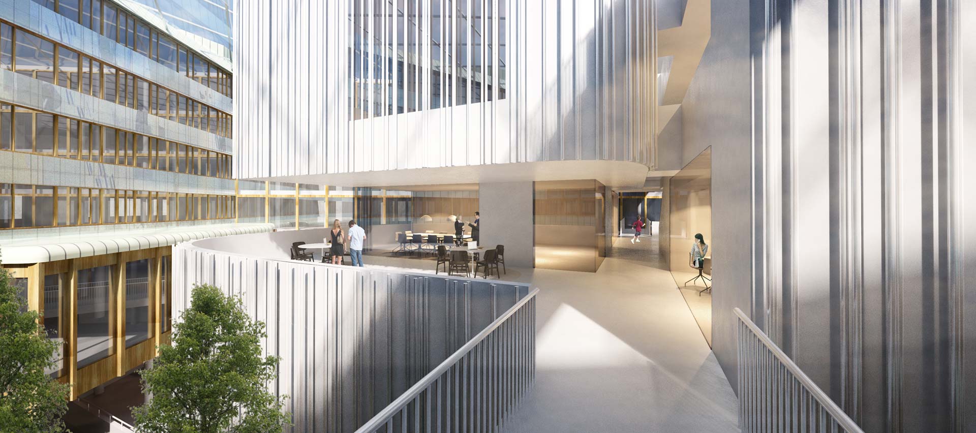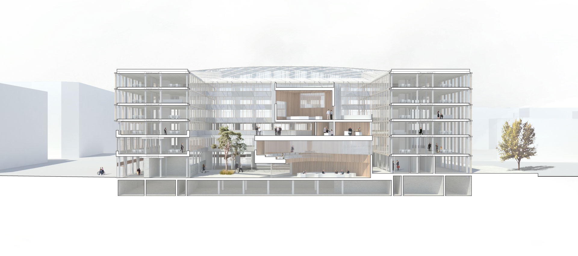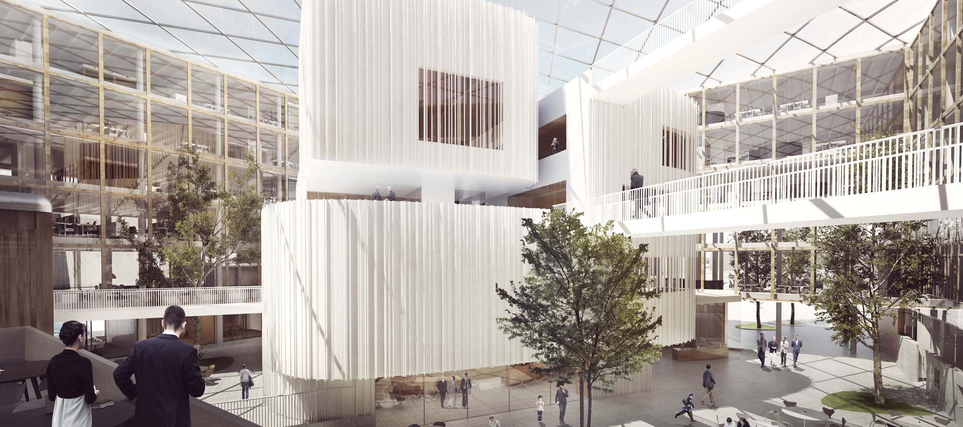 With its transparent architecture the new town hall of Uppsala enters a dialogue with the citizens. The town hall greet the public through a passage running through the ground floor of the building. A courtyard covered with a great glass roof makes up the heart of the town hall where public services and programs are situated. A sculptural building in the center of the courtyard connects old and new departments with footbridges at different levels. The town hall, meeting- and conference facilities are located here. The central building adds to the modern environment where knowledge sharing and cross-disciplinary problem solving are key. The new town hall comprises 1,500 flexible work places, a cafe with outdoor service, a restaurant, shops, conference facilities, and spaces for public and private exhibitions and events. The project is a refurbishment and an addition to the existing town hall which was only partly completed in accordance with the original drawings. The proposal build upon the competition proposal from 1957 and completes, with an L-shaped building, the original intention of a closed town block. The transformation of the town hall will be initiated in 2017 and the building is expected to be completed in 2020.