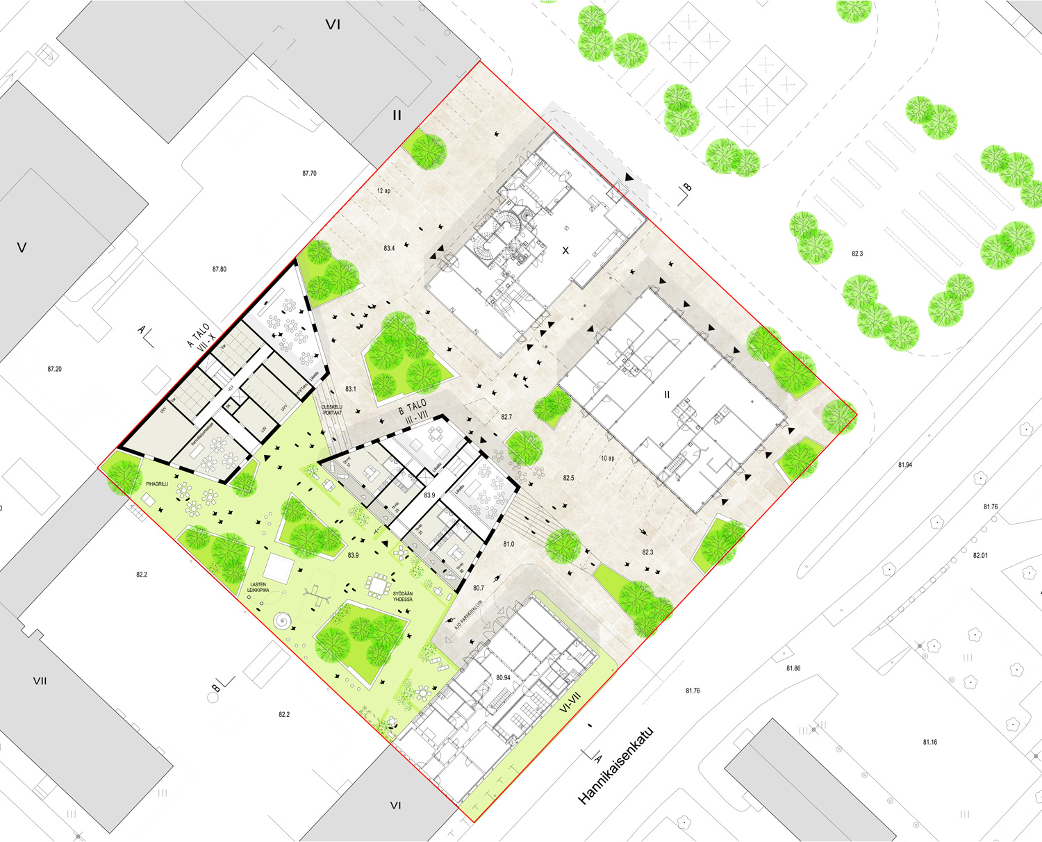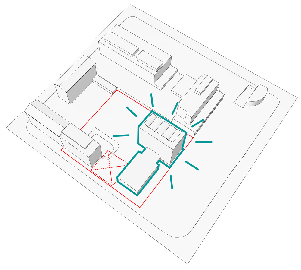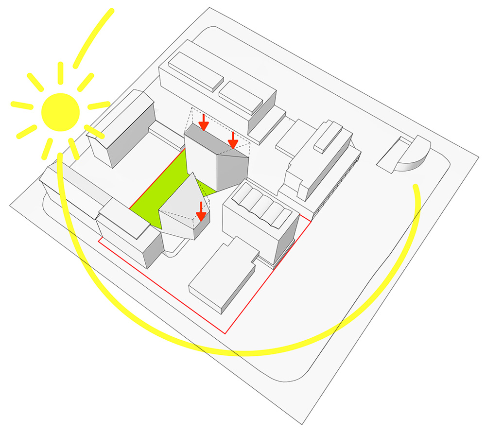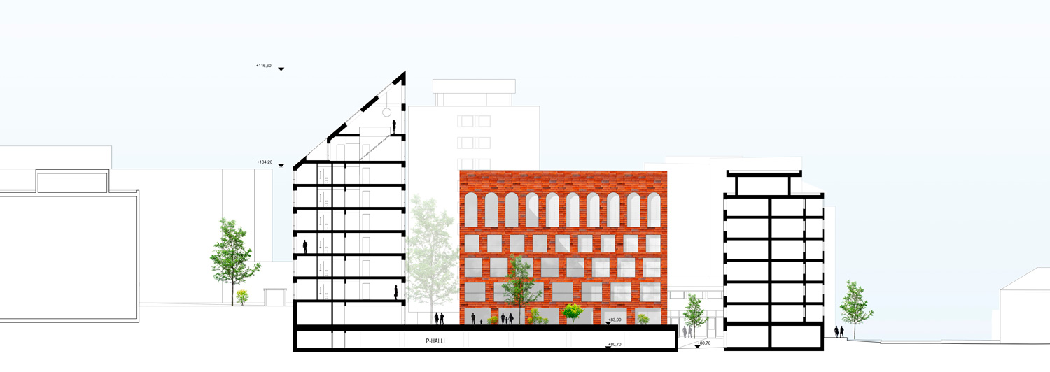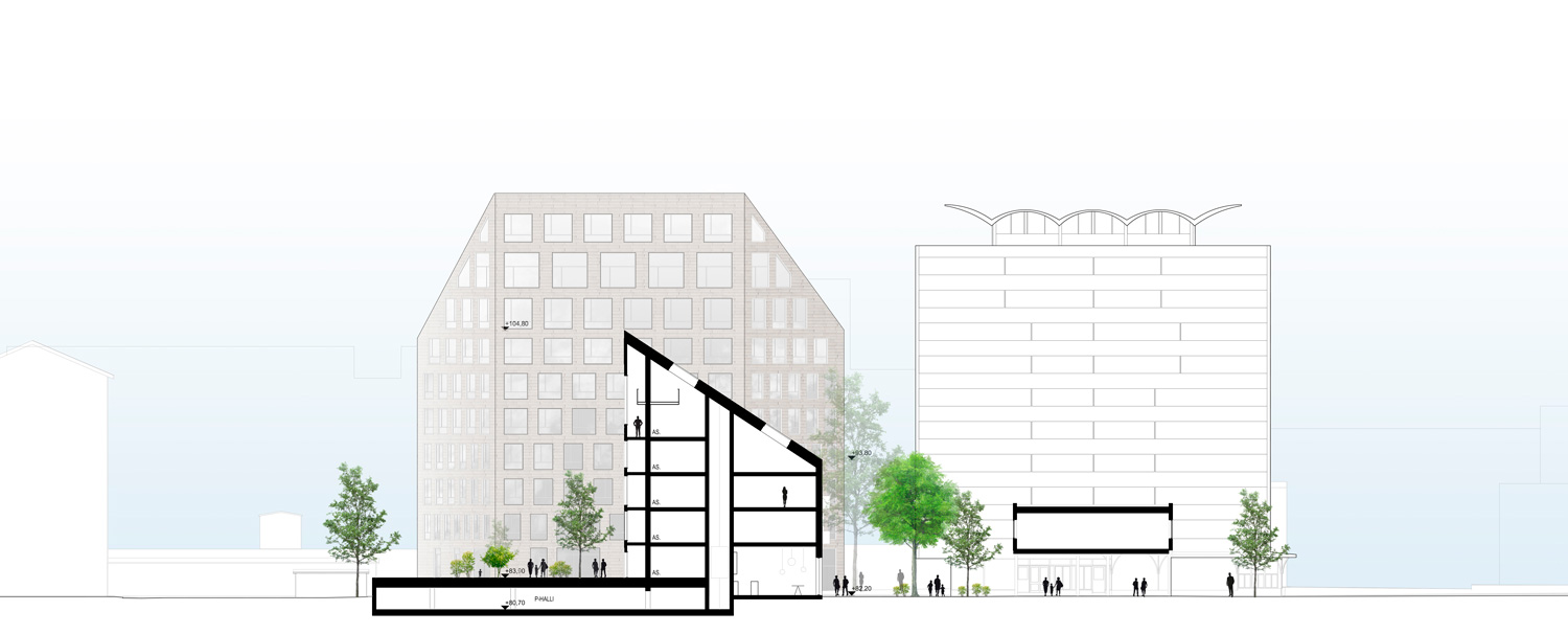 The composition of two sculptural and solid masses in Hannikaisenkatu 27-29 has a modern and strong identity, yet it respects the current landmark – Milton tower and the scale of existing city block. New building volumes skilfully reshapes and activates existing courtyard with a new semipublic city square while still providing a more private, west facing, garden for the new residents.