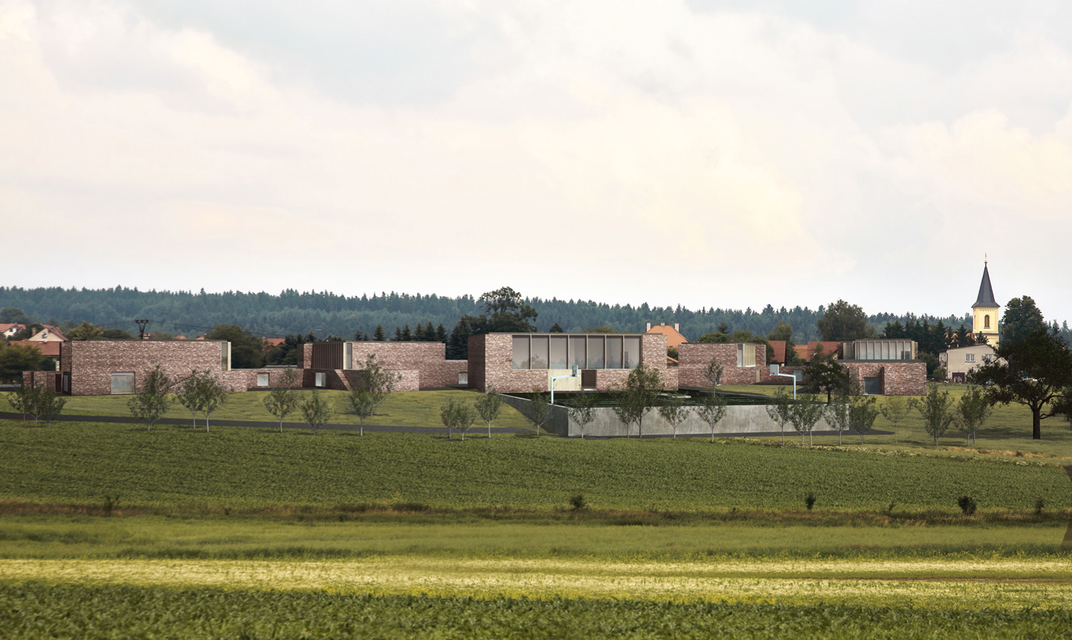 ☉ Nová Škola pro Psáry is a proposal by Dome Architecture for Psáry Municipality designed in 2013. It is located in Psáry Czech Republic in an outskirt setting. Its scale is medium. Key material is brick. Concepts such as broken volume and rural are explored.