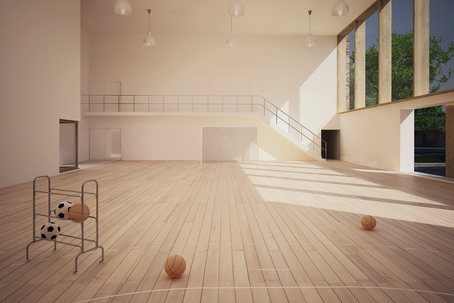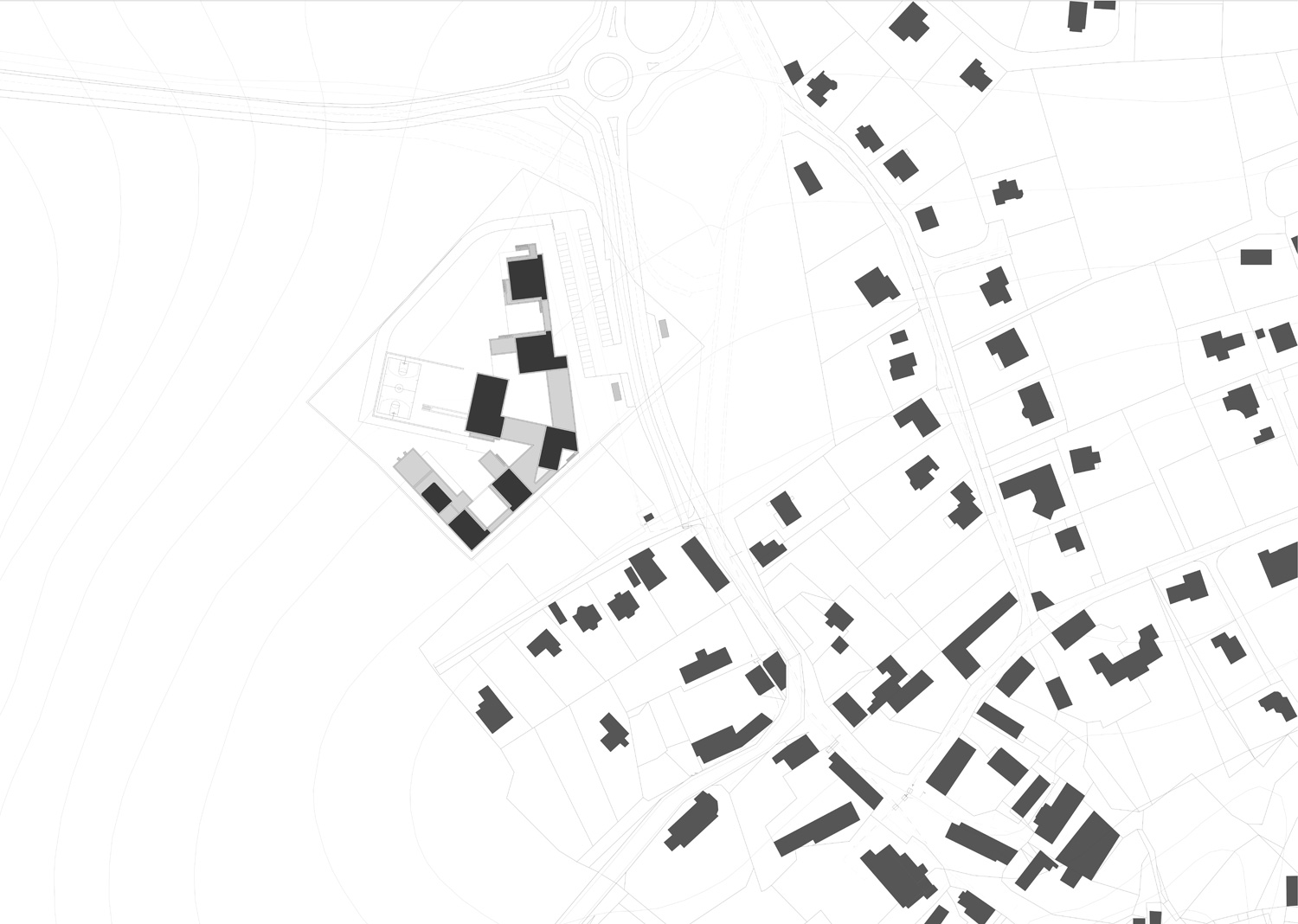 The project intends to make a reinterpretation of the equipment scale, considering the specific urbanistic context of Psary. The schools’ architecture was conditioned by the need of organization of a very splited program, and it’s different phases of construction. Another big concerning was to provide a construction system that could handle with the disparity of temperatures and weather conditions during the year. But this materials’ choice was also made regarding an integration of the new building in the village identity. One of the most important premises for the project was the urban integration in the village. There’s an intention of keep the relation with the existing type of urbanization, but still expressing the scale of the equipment – the ground floor is a continuous mass and the first floor is fragmented, just as the majority of the built environment around the school developed in the East side. This first floor designs a new village skyline, relating to the existing one. The all program is contained in two floors plus a basement occupying the area underneath the sports facilities. The project is based on an idea of rational distribution and efficient occupation of the site. The strategy was to occupy the street side of the plot leaving its interior for a generous garden where the playgrounds are placed.