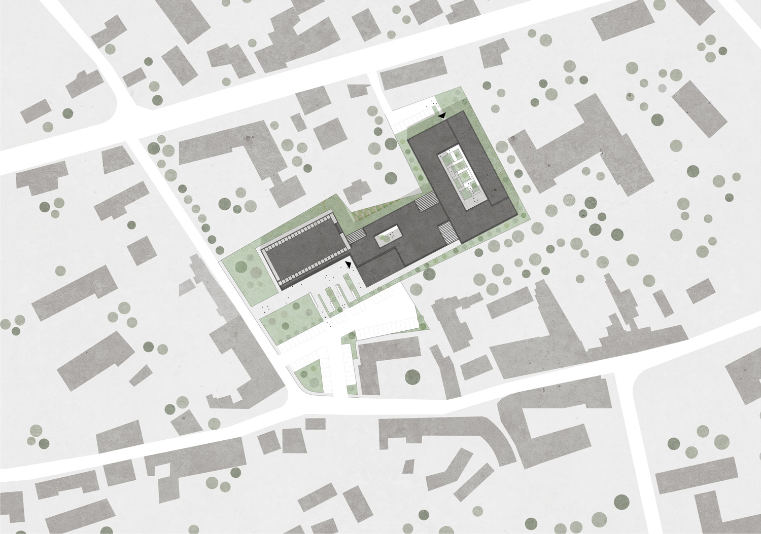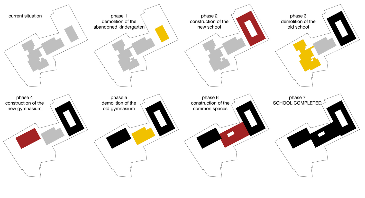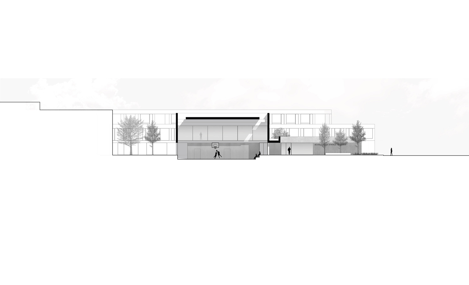 The school is at the same time a large urban space and an open public building, so flexibility in outofschool use is very important. the school today and in the future will be more and more than a place dedicated to teaching, also a place for meeting, meeting, party and culture, whose equipment and indoor and outdoor spaces will be used by children but also by adults: gym, auditorium and entrance square are, together with the green areas, designed as spaces for the community.