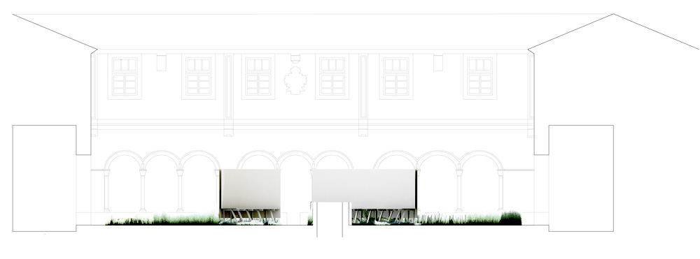 Se plantea la instalación de un pabellón central. Este elemento hace referencia al hecho de que existe constancia de que, hasta época bastante reciente, debió existir en el claustro un elemento central destinado a usos teatrales: