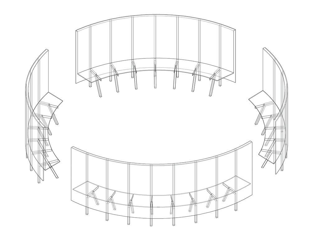 ☉ O Xardin Das Ideas is a proposal by MID estudio designed in 2011. It is located in Lugo Spain in an old town setting. Its scale is small. Key material is metal. Concepts such as reflexion and circle shape are explored.