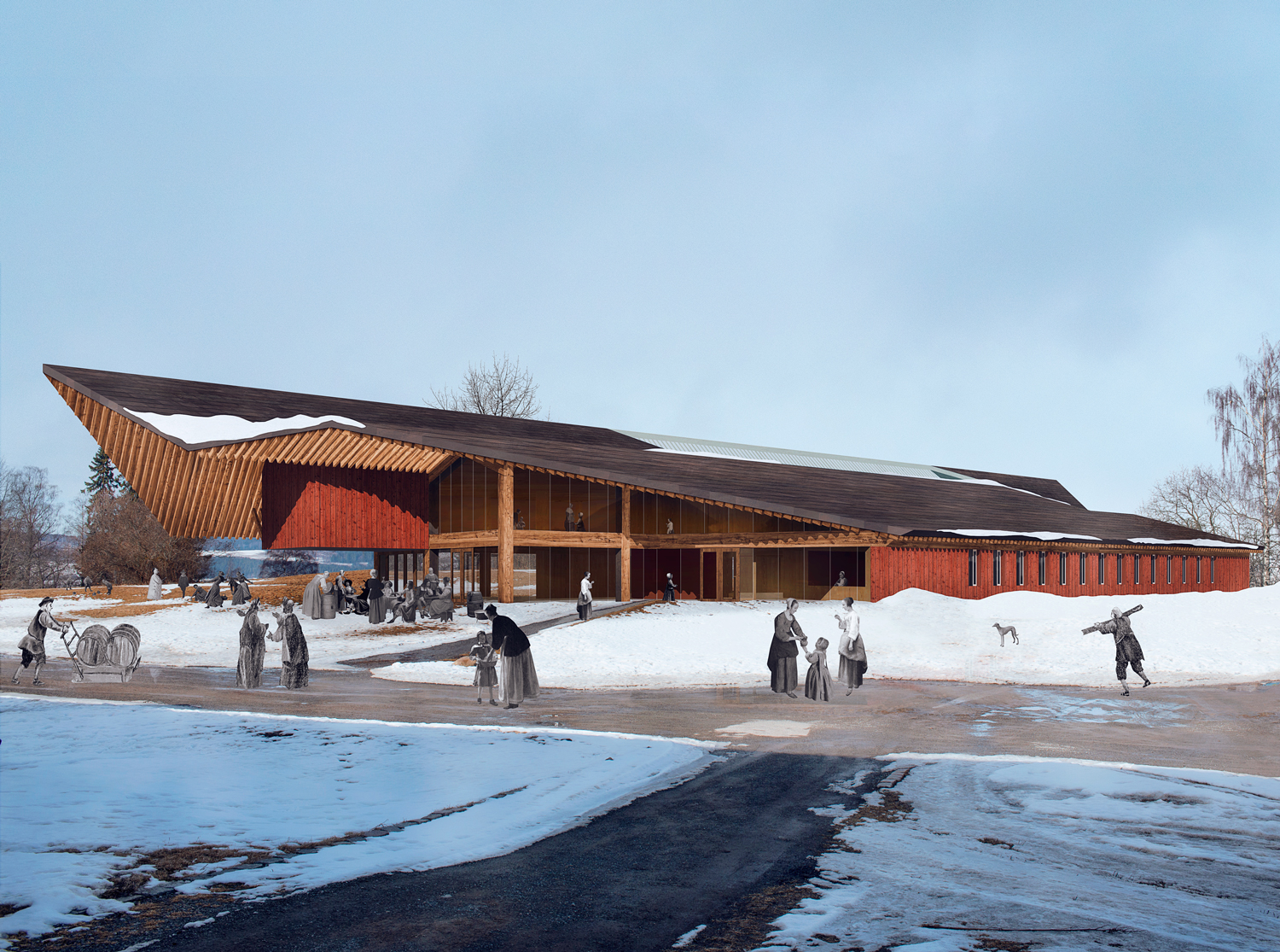 ☉ Origami Roof is a proposal by Studio MADe designed in 2021. It is located in Hamar Norway in a riverside setting. Its scale is medium. Key material is wood. Carlos Gonzalvo collaborated as visualizer. Review the 3 proposals for the same competition.