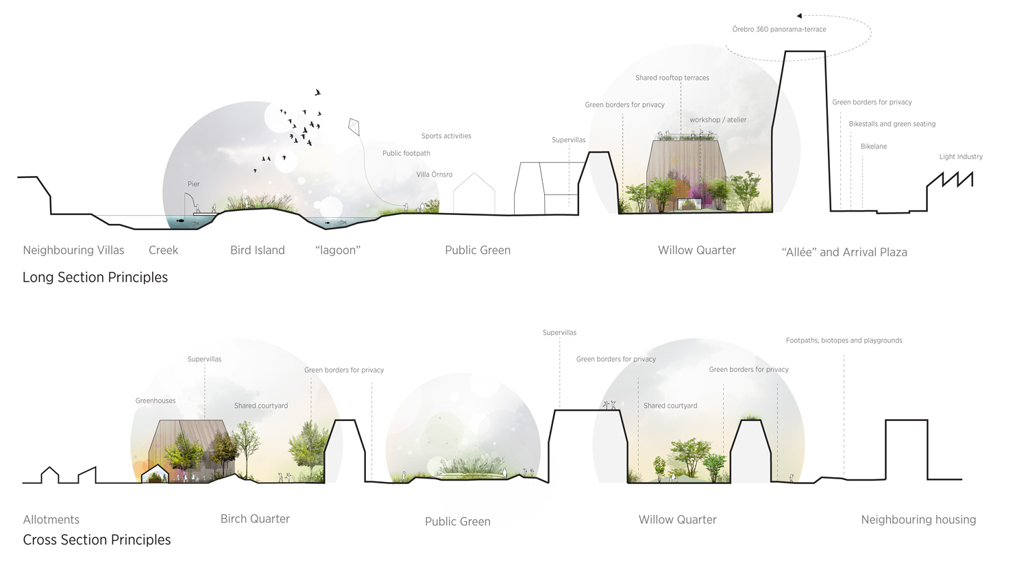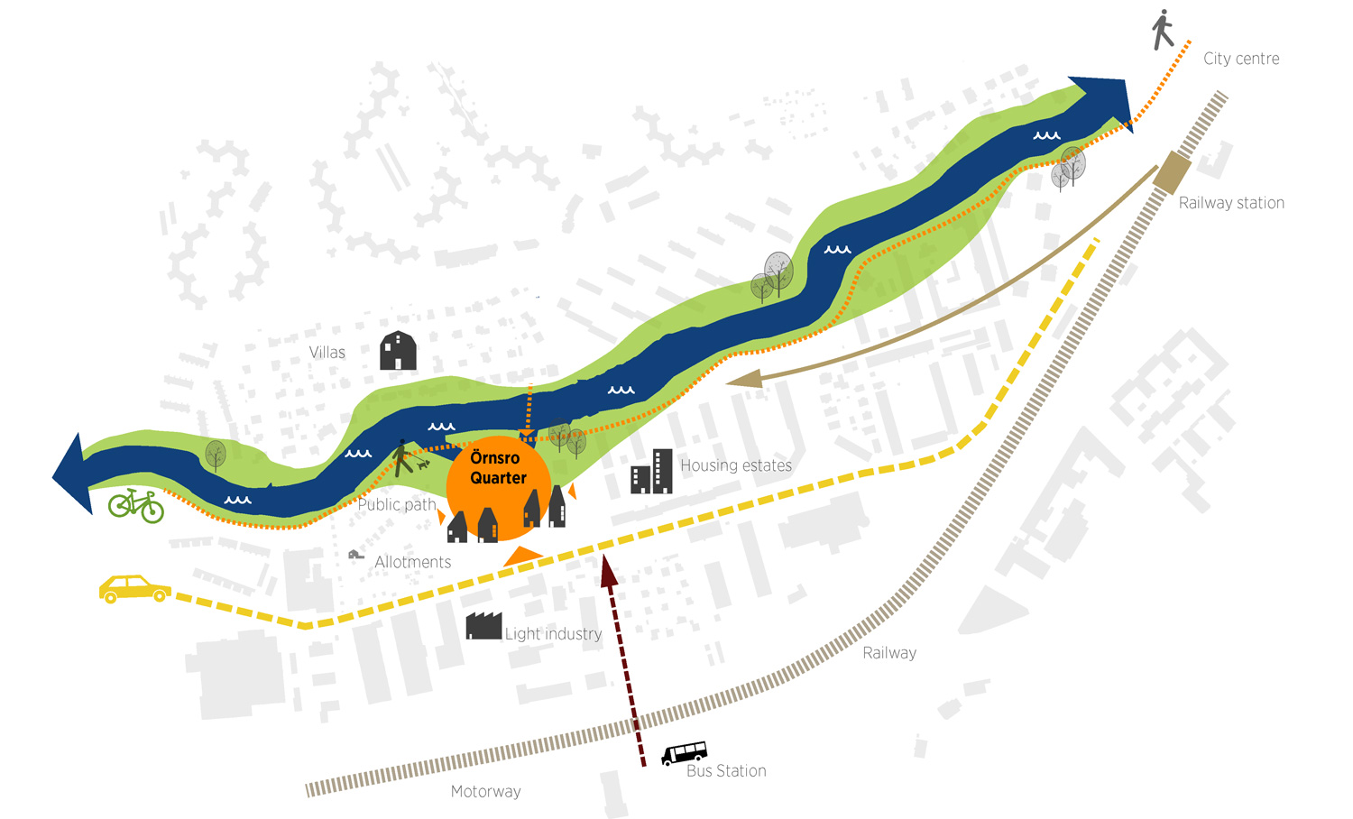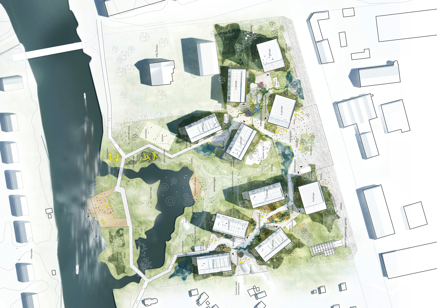 Örnsro Trästad will be a destination and a vibrant quarter of Örebro, with a clear idea of how to enrich the city’s social networks by integrating nature into the urban landscape. The residential buildings interact with an urban city park including a variety of activities and plazas for social meetings and recreation. The buildings in the district will be created with solid timber frame structures, and will contribute positively to the overall lifecycle perspective of the project. Timber is a renewable material, with low energy consumption and a limited carbon footprint. The new urban quarter comprises several apartment buildings of varying heights. The activity route, or thoroughfare, through the area interconnects the existing promenade sections along Svartån creek with the surrounding quarter. Ängen, a generous public city park, gives the area an unexpected meeting between city and wild nature.