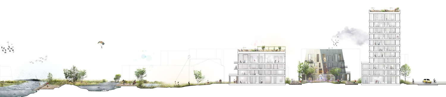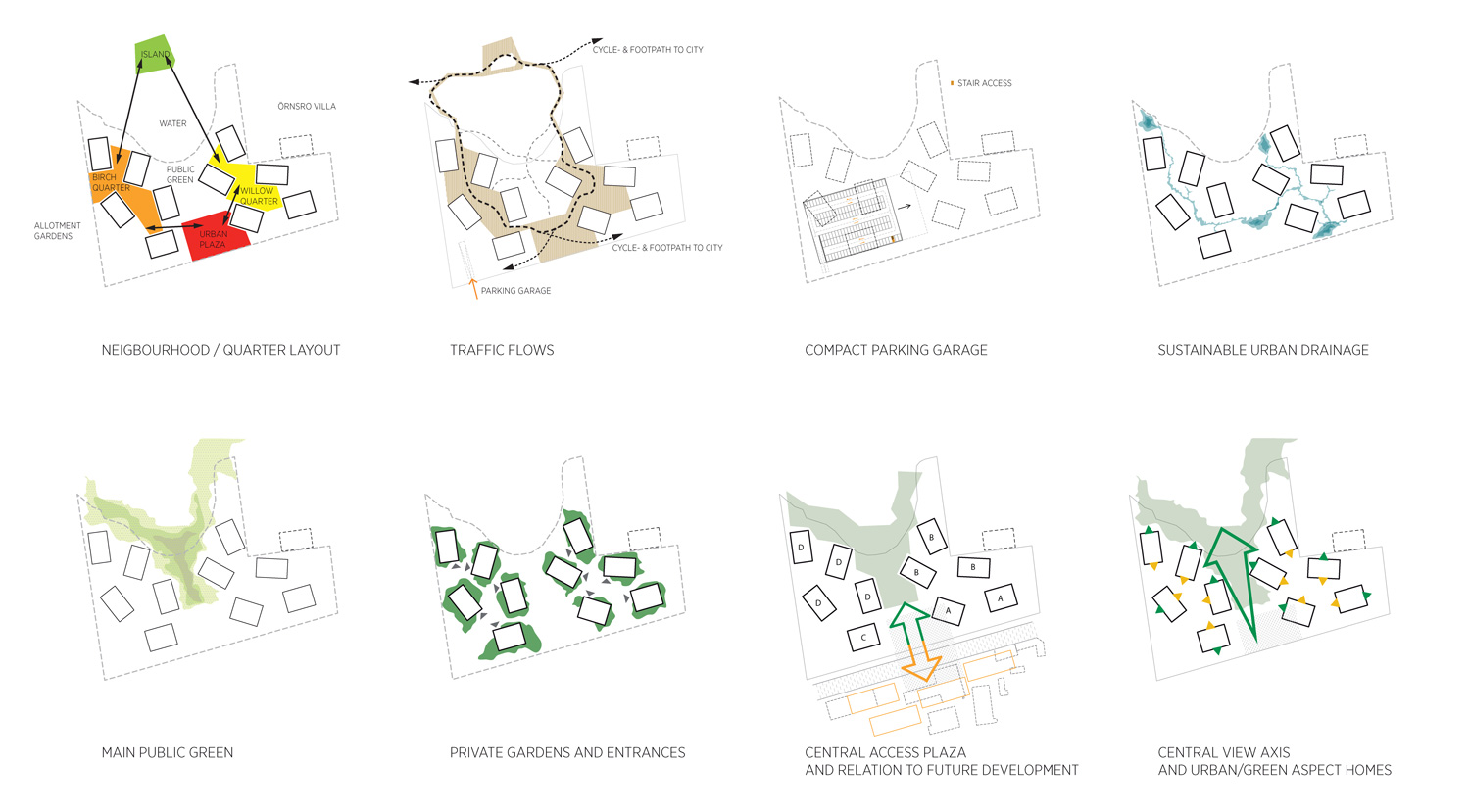 ☉ Örnsro timber town is a winning proposal by C. F. Møller for Slättö Förvaltning AB designed in 2016. It is located in Örebro Sweden in a riverside setting. Its scale is large with a surface of 18.000 sqm. Key material is wood. Concepts such as new development cells central core folded facade usable roof and balcony are explored.