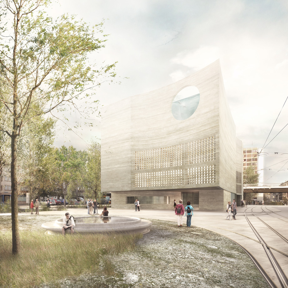 Ozeanium Zoo Basel is a winning proposal by Boltshauser for Zoo Basel designed in 2012. It is located in Basel Switzerland in a park setting. Its scale is large. Key material is concrete. Nightnurse images collaborated as visualizer. Concepts such as folded facade and water are explored. Review the 6 proposals for the same competition.