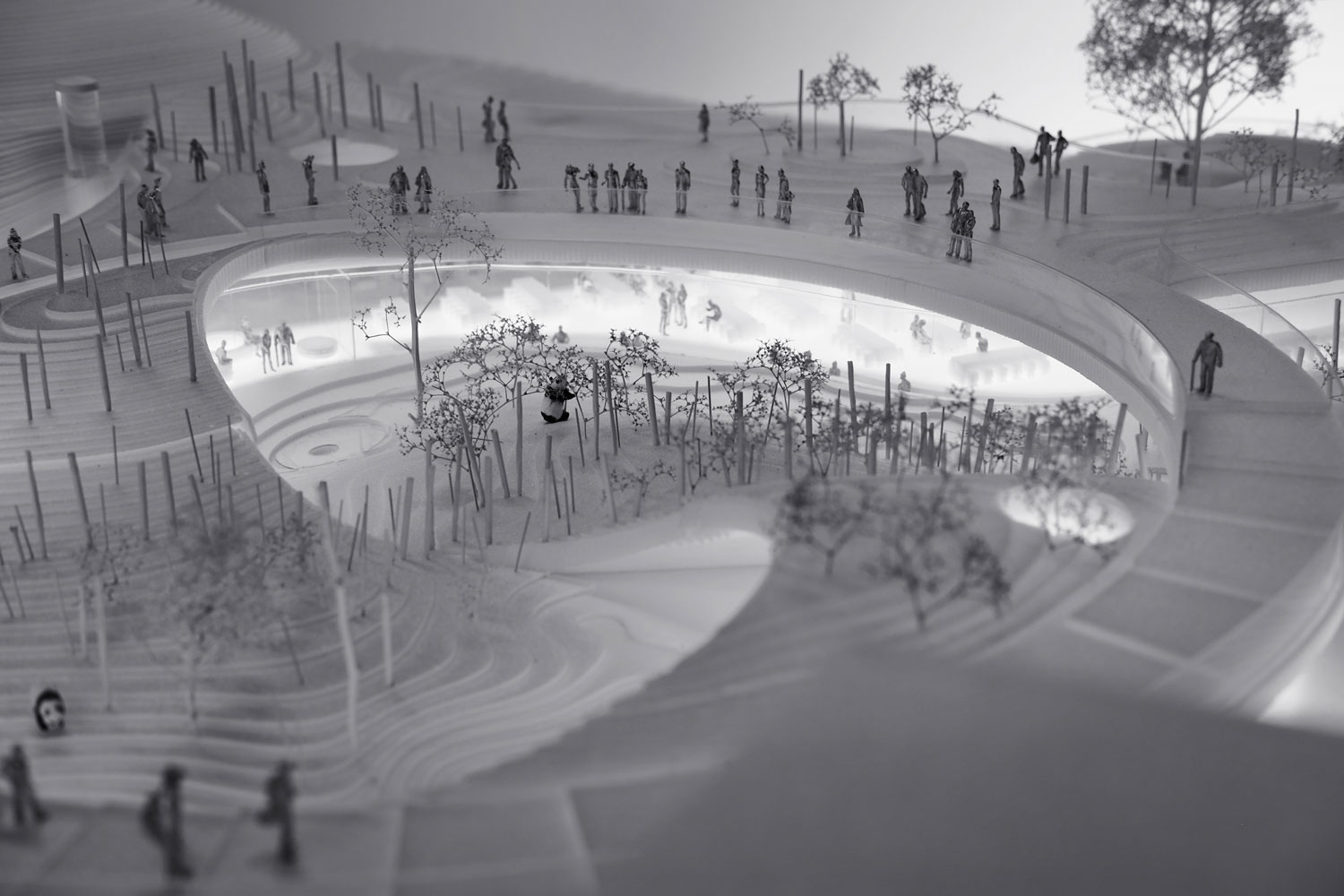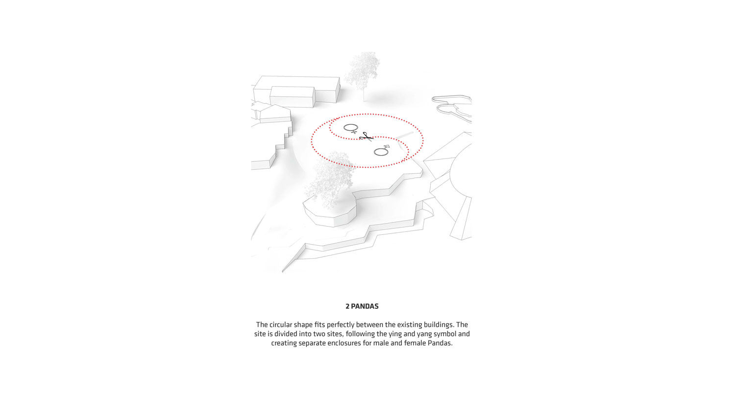 ☉ Panda House is a proposal by Bjarke Ingels Group for Copenhagen Zoo designed in 2017. It is located in Copenhagen Denmark in a park setting. Its scale is medium with a surface of 2.450 sqm. Key materials are concrete glass and vegetal. Concepts such as circle shape and topography are explored.