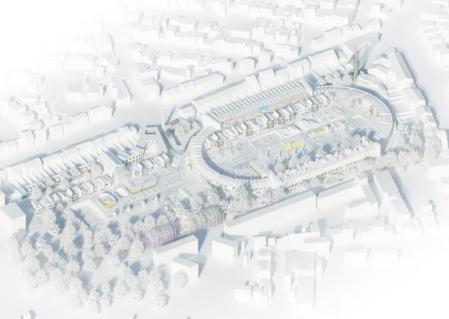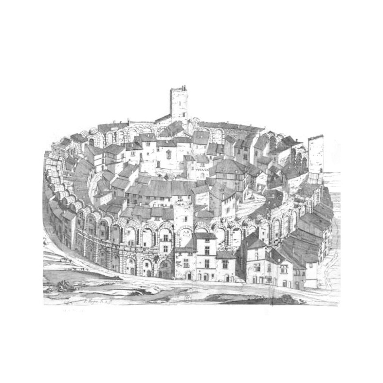 Notre projet s’attache à mettre en valeur les éléments architecturaux qui sont l’essence même du Parc Lescure. à la manière de ce que les villes ont pu faire d’un équipement comparable tombé en désuétude, les arènes de l’époque Romaine, notre réflexion porte sur tous les possibles du devenir du stade. Les arènes étaient comparables en ferveur aux stades de football d’aujourd’hui, et si certaines villes les ont progressivement oubliées au point de les confondre avec d’autres ruines antiques, d’autres ont réussi à jouer avec pendant des siècles pour toujours l’intégrer aux différentes évolutions de la Ville. Les arènes de Nîmes sont un bon exemple, progressivement abandonnées, reconverties en village fortifié servant de refuge à la population lors des grandes invasions, puis transformé en véritable village du Moyen Âge jusqu’au 19° siècle avec ses rues et ses boutiques, puis nettoyées et progressivement restaurées pour accueillir des courses de taureaux en 1863 qui reçoivent une ferveur comparable à celle des stades populaires d’aujourd’hui. Malgré toutes ces transformations, les arènes de Nîmes sont les mieux préservées au monde car elles n’ont jamais cessé d’être utilisées.