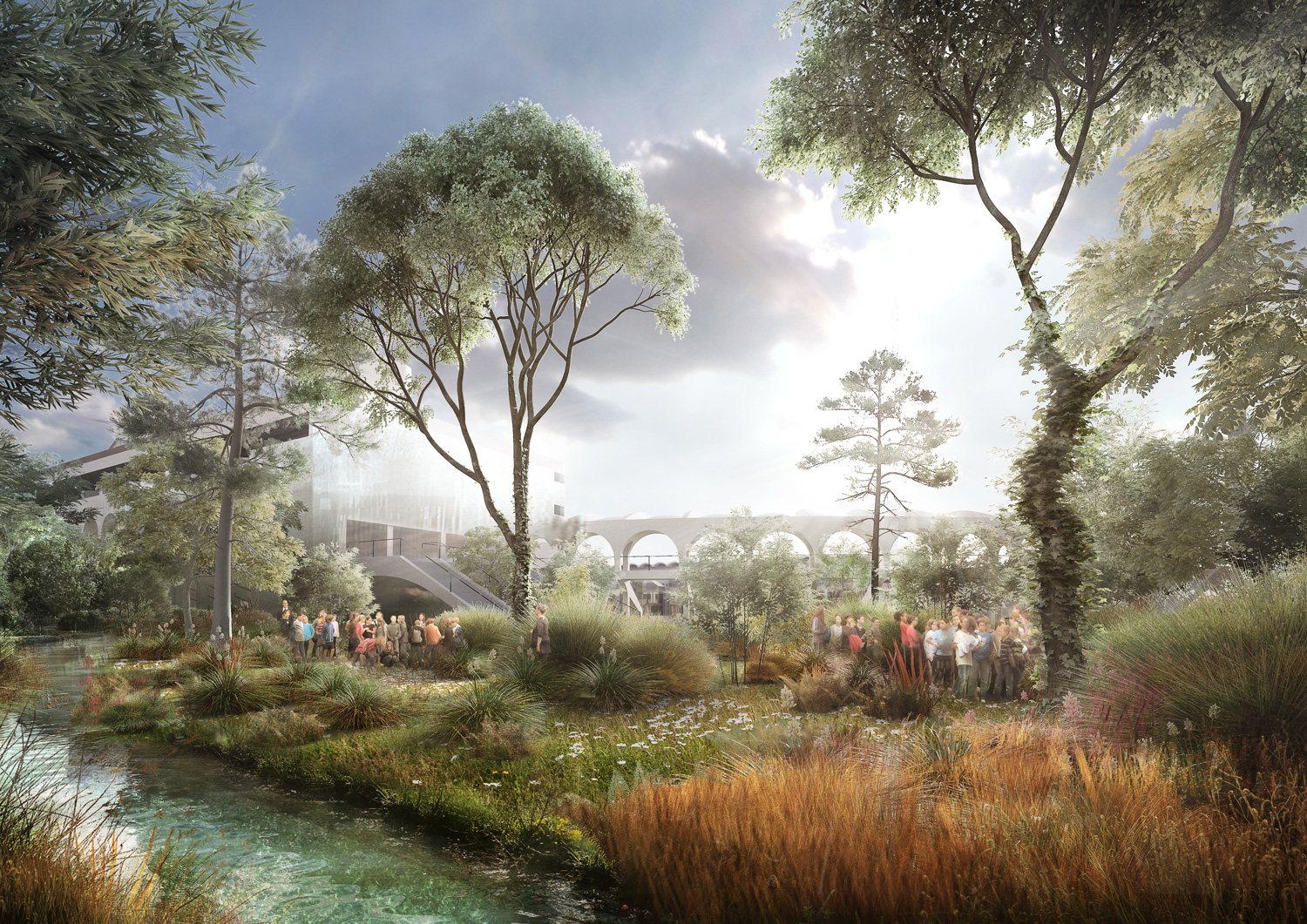 ☉ Parc Lescure is a proposal by 2:pm architectures Dauphins Architecture and Atelier Physalis for Ville de Bordeaux designed in 2013. It is located in Bordeaux France in an urban setting. Its scale is medium. Key material is vegetal. Concepts such as adaptable reuse and renaturalization are explored.