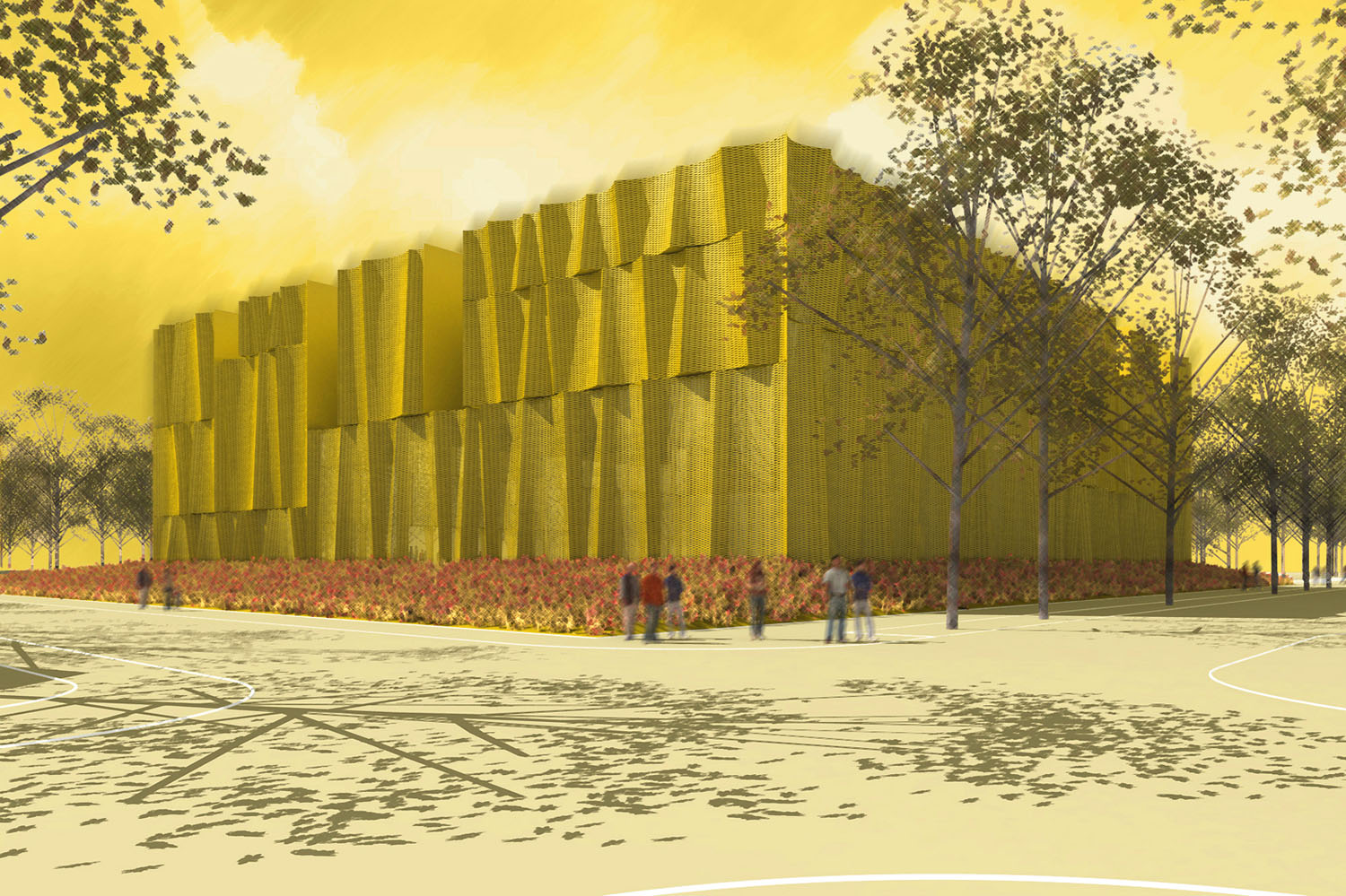 ☉ Pegan Petkovšek National Gymnastics Centre is a proposal by Enota for Gimnastična zveza Slovenije designed in 2011. It is located in Ljubljana Slovenia in a park setting. Its scale is medium with a surface of 6.470 sqm. Key material is metal. The concept of folded facade is explored.