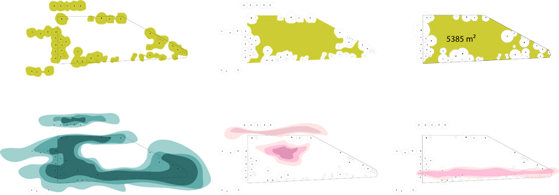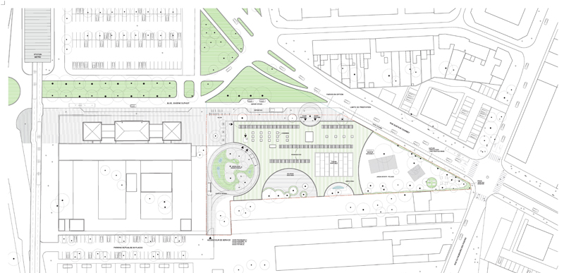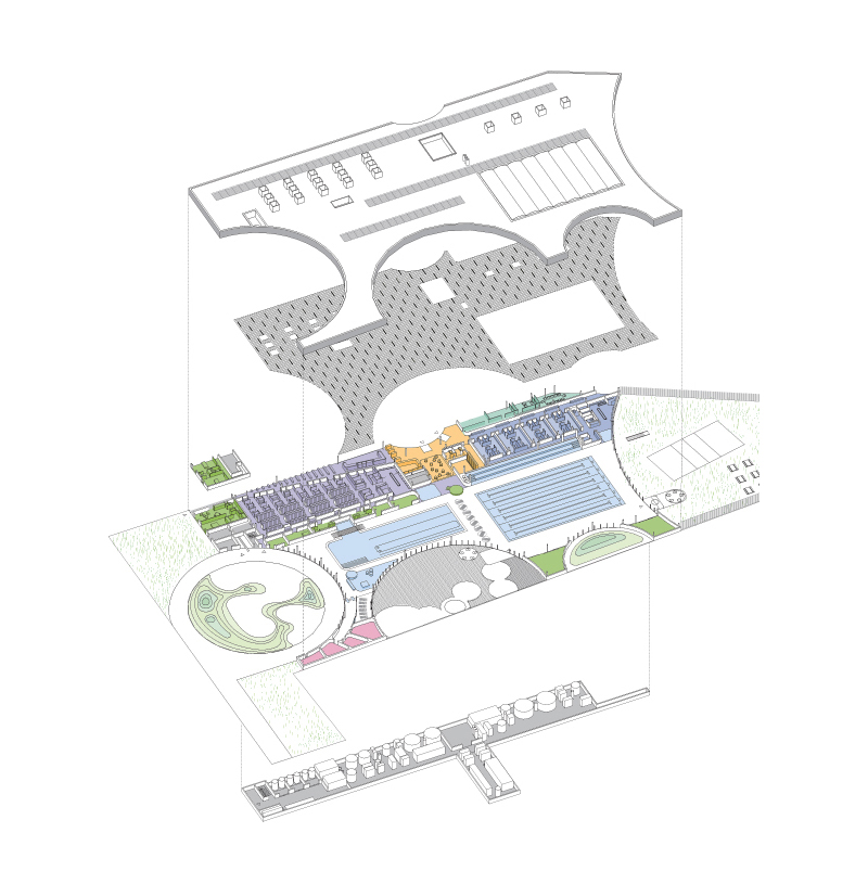 L’eau, élément naturel, pur, essentiel, et la relation avec le corps que les pratiques aquatiques induisent, sont envisagées comme un projet de paysage où le contexte, le rapport au sol et au territoire sont constitutifs d’un jardin urbain tendu entre les tropiques de la ville. Nous nous intéressons d’abord au sol, à cette terre dans laquelle nous viendrons inclure des bassins comme autant de lagons, de sources, de masses fluides. Notre préoccupation première a ainsi été de trouver des filiations territoriales, de proposer des conditions suffisantes pour que l’appartenance du projet au site soit donnée, perçue, élargie au quartier, que la source ou le lagon du programme soient constitutifs d’un paysage urbain, enfin que la piscine ne soit pas seulement équipement public mais principe narratif sur l’eau dans la ville, évocation de la nature, mise en scène des usages liée aux pratiques aquatiques.