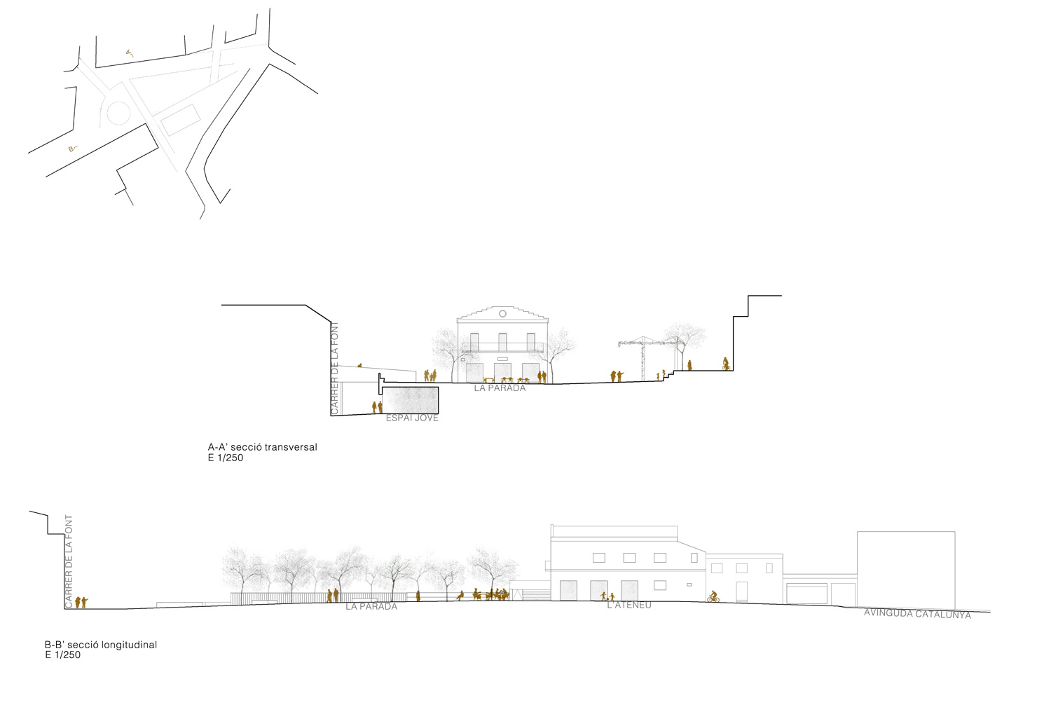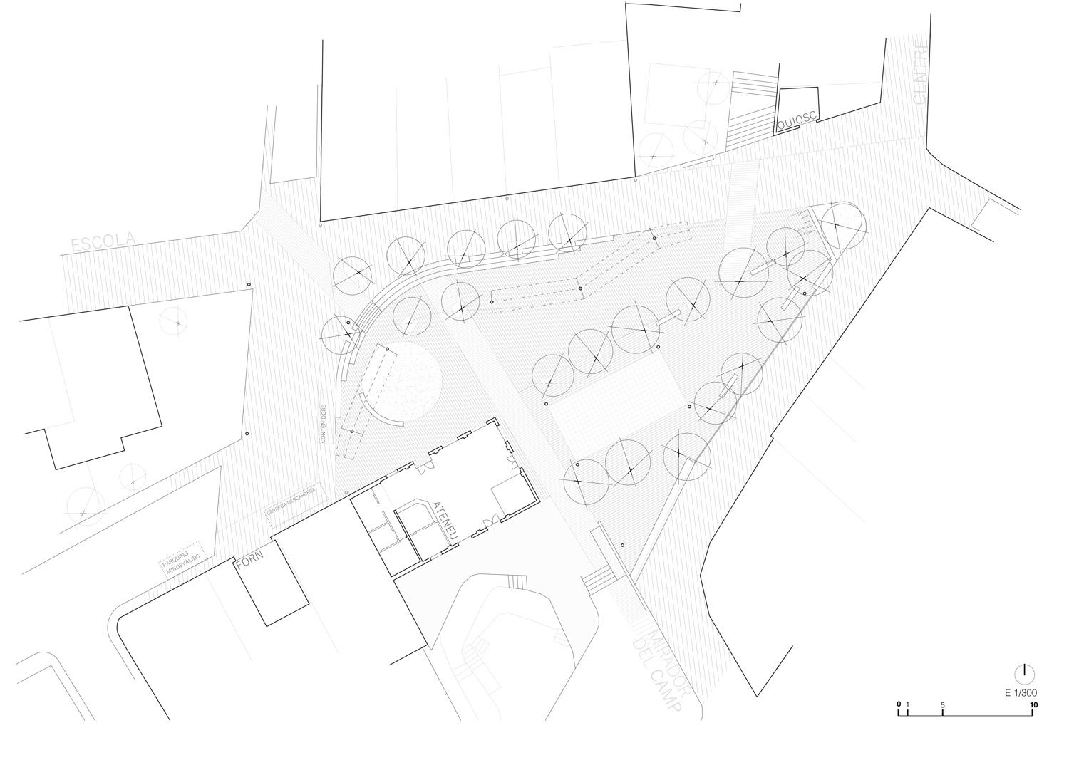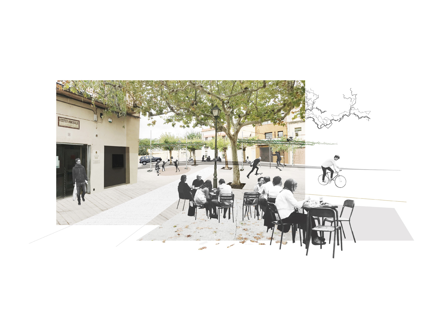 Alhora, s’intenta enfatitzar el màxim la seva posició estratègica dins el poble, posant de relleu la seva proximitat i relació amb elements tant importants com el Teatre, l’Ateneu, l’Escola o el Camp.
