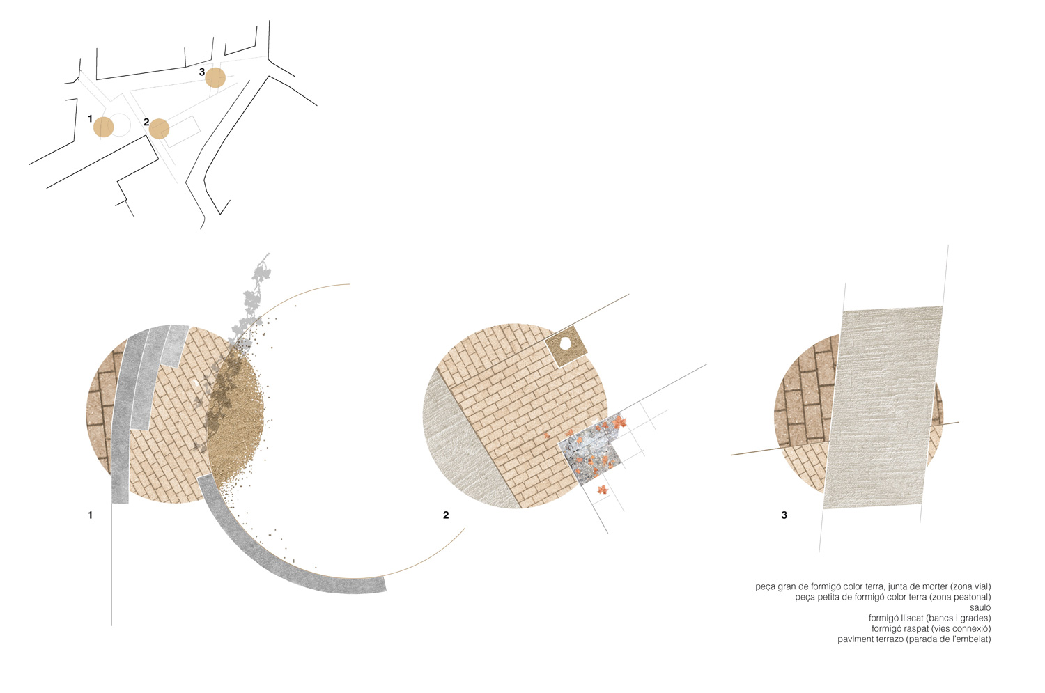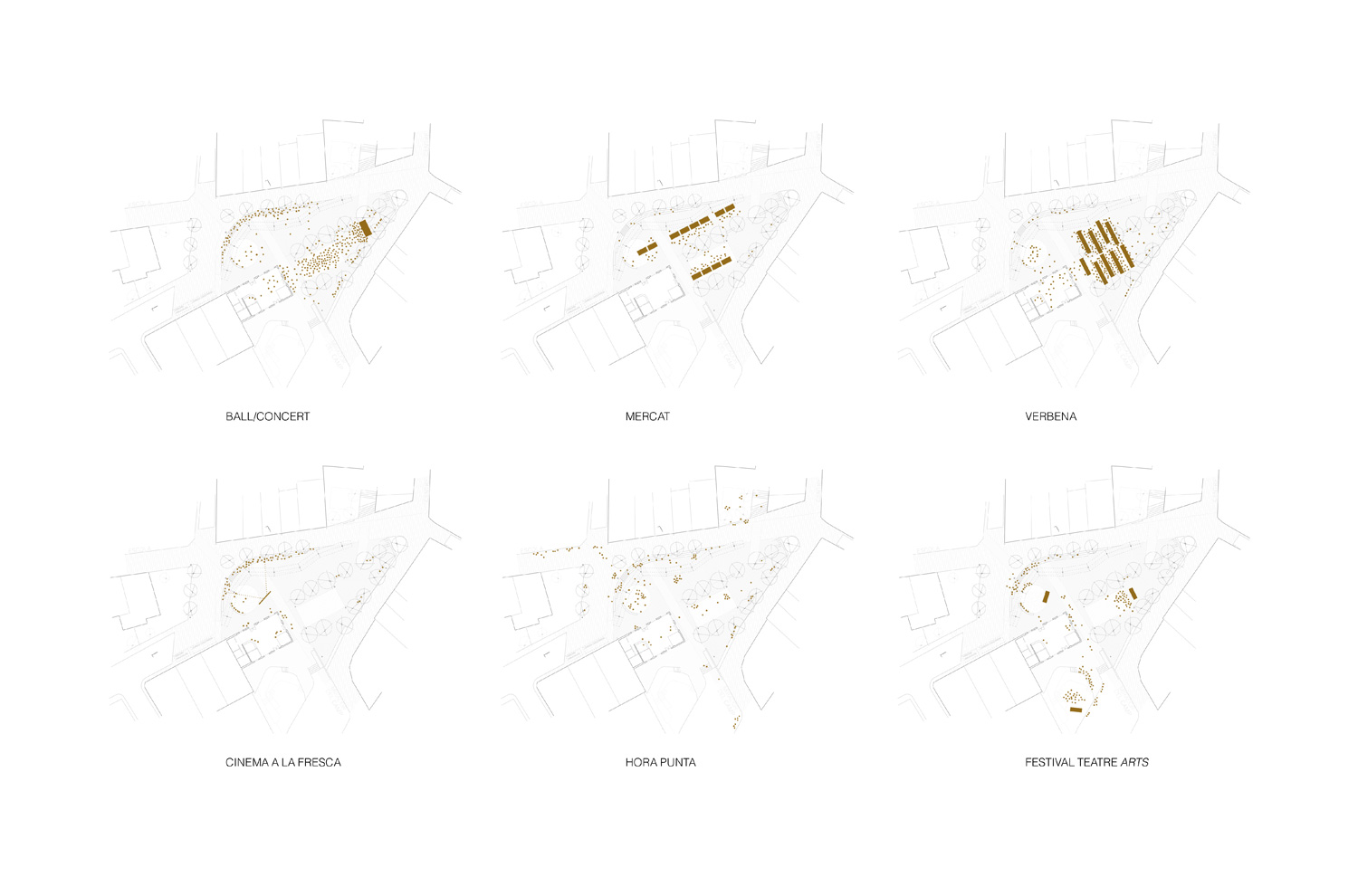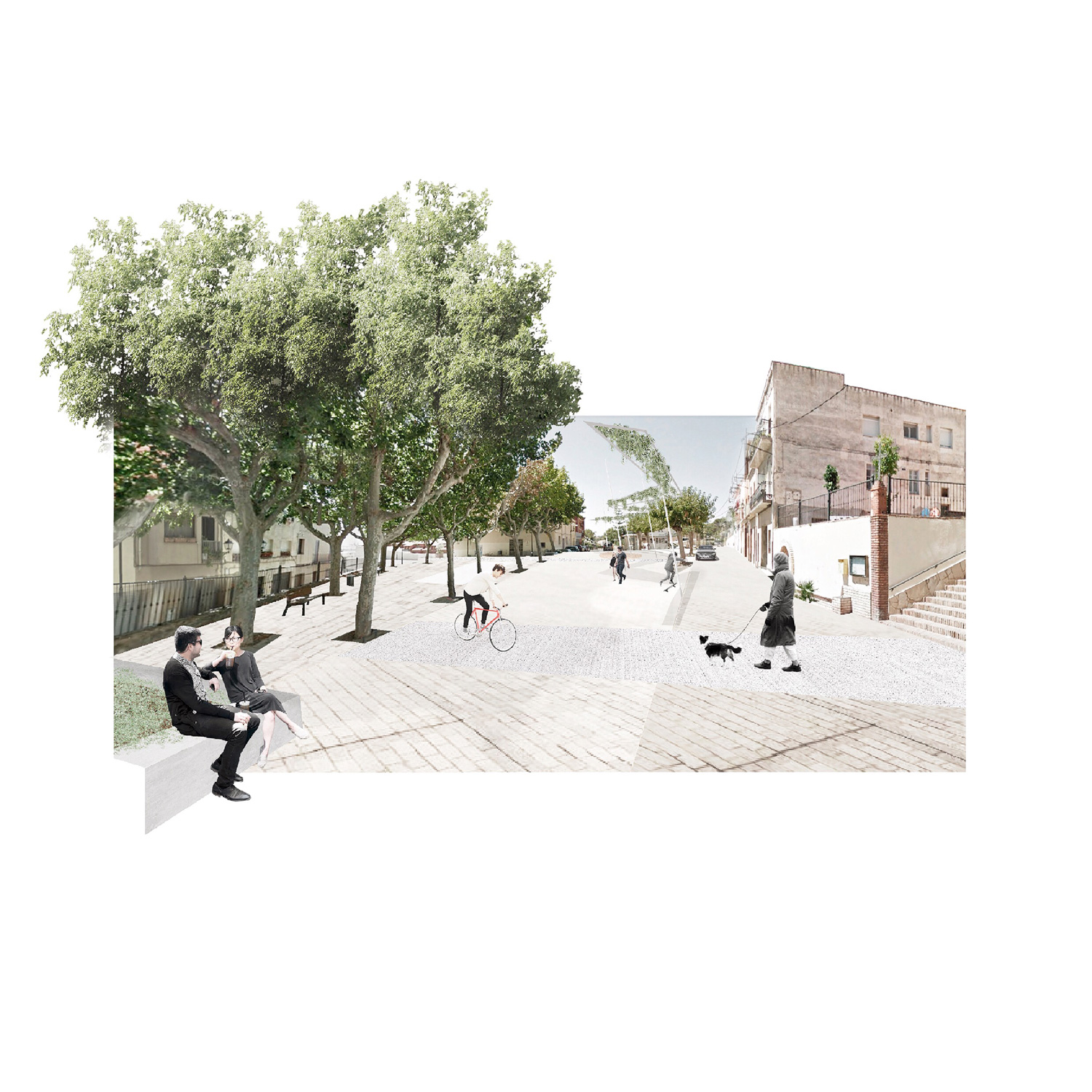 La proposta implementa les estratègies anteriors i els requeriments tècnics establerts. La nova plaça, més gran i contínua, s’entén com un conjunt heterogeni de peces diferents, algunes noves i d’altres existents. D’una banda es busca convertir el vestíbul del poble en un espai polivalent de gran qualitat urbana, on tot i hi té cabuda, des de multitud d’activitats efímeres fins a escenes de la vida quotidiana del poble.