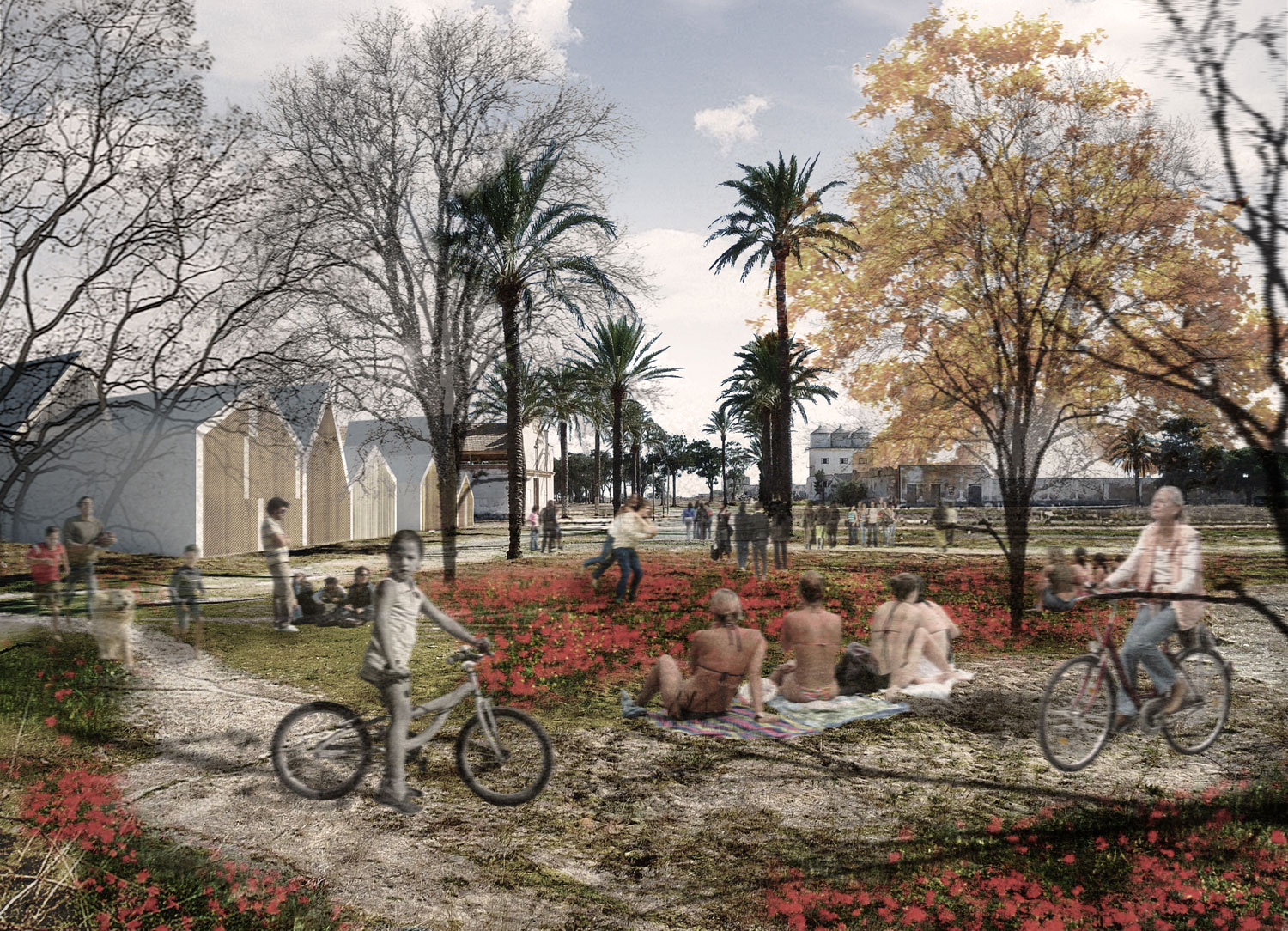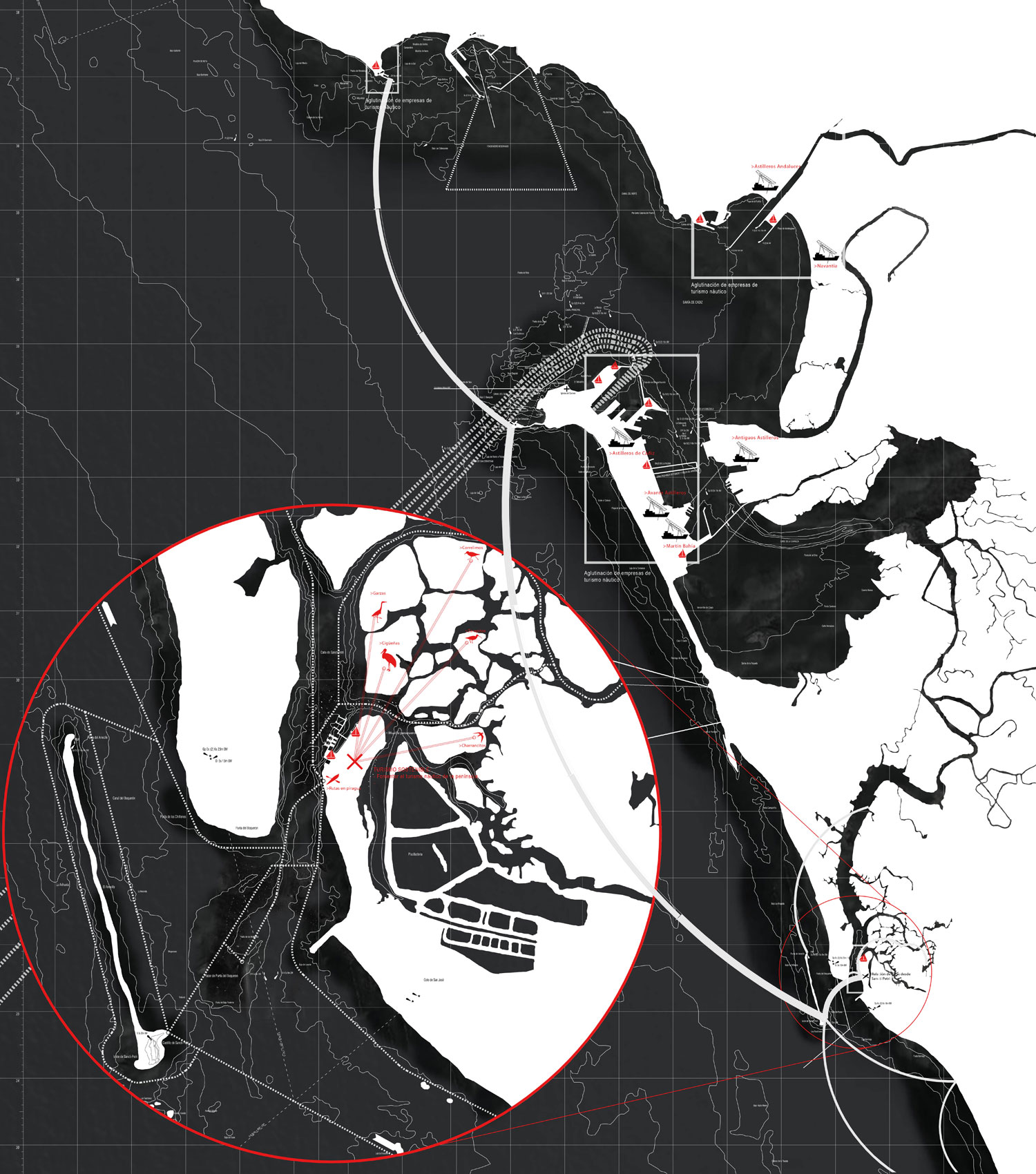 Gran parte del atractivo de la zona de Sancti Petri reside en su condición de parquet natural, perder esta característica sería absolutamente sería absolutamente contraproducente para su explotación, por ello la operación principal de la propuesta consiste en recuperar la zona como una marisma y por tanto un espacio public natural para el disfrute de los visitantes. Como resultado de esta estrategia, la peninsula de Sancti Petri puede llegar a ser un lugar para trabajar y vivir, con visitas turísticas esporádicos. No mas resorts. Sólo un territorio en bruto que se desarrolla a nivel local o incluso un escenario histórico abandonado donde la vegetación inunda las ruinas de un pasado delirante.