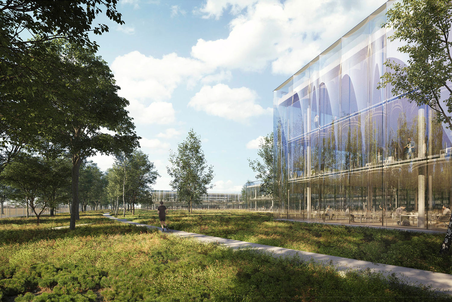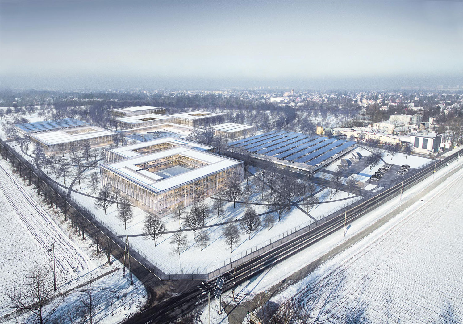 ☉ Polish Flight Control Headquarter is an honour mention proposal by Bakpak Architects and EOVAStudio for Polish Flight Control Agency designed in 2017. It is located in Warsaw Poland in an industrial setting. Its scale is large with a surface of 32.278 sqm. Key material is glass. Play-Time collaborated as visualizer. Concepts such as folded facade courtyard and box are explored.
