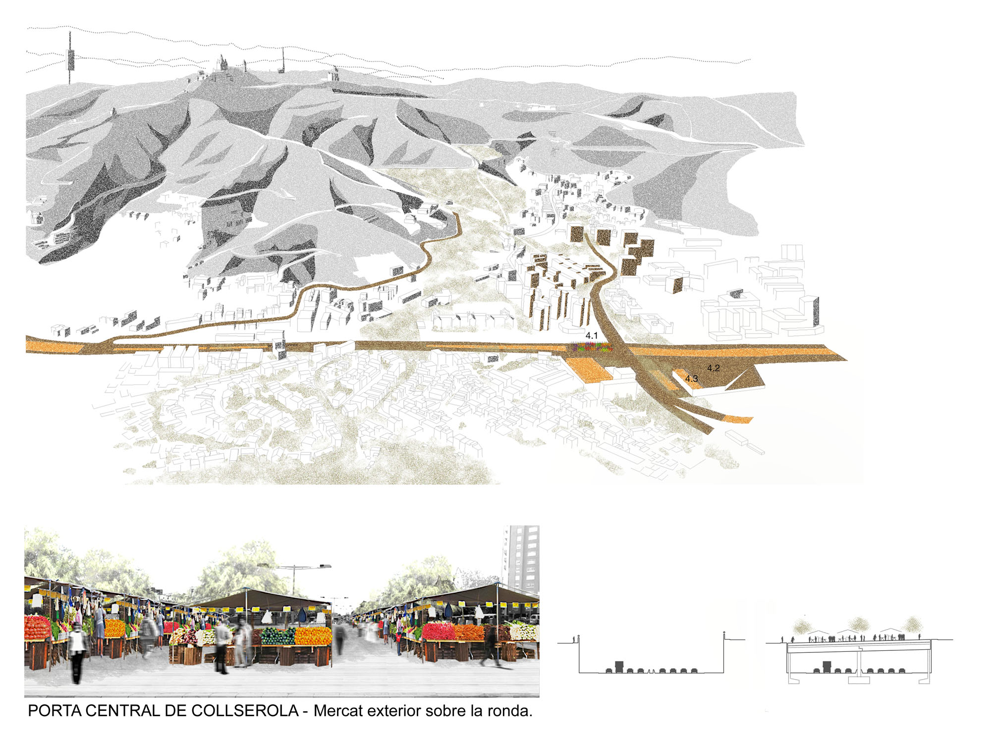 L’àmbit de Sant Genís-La Teixonera no és només el centre geomètric de la franja de contacte de Collserola amb la ciutat, si no també el seu centre històric i funcional. L’antic camí de Barcelona a Sant Cugat dona peu al nucli de Sant Genís. La Rebassada és l’actual versió d’aquesta connexió. Aquesta àrea tan ben comunicada amb la resta de la ciutat a través de vialitat i el transport públic, hauria d’acollir els centres de cohesió de tota l’activitat de la falda de Collserola. En aquest sentit es proposa la creació d’un nou Centre d’Interpretació de Collserola (Can Soler seria un emplaçament idoni) i un mercat a l’aire lliure de producte de proximitat i ecològic que potenciaria la productivitat de les hortes (la cobertura de la Ronda al costat del metro de la Vall d’Hebró i de l’edifici del mercat municipal seria l’espai apropiat per aquesta activitat. El conjunt d’elements naturals i patrimonials dels que gaudeix el barri de Sant Genís converteixen aquest barri en un camí educatiu de gran interès. Passar una jornada a la porta central de Collserola conté el desitjat contacte amb la natura, el retrobament amb les activitats hortícoles, l’esbarjo a les fonts, el reconeixement de la història de Barcelona, i inclús l’activitat comercial al voltant d’aquests valors. I tot això, sense tenir la necessitat d’entrar als àmbits protegits del Parc.