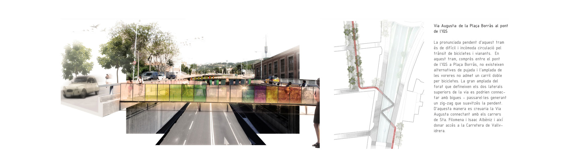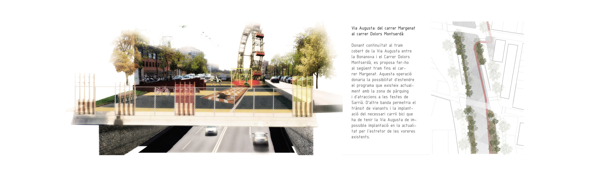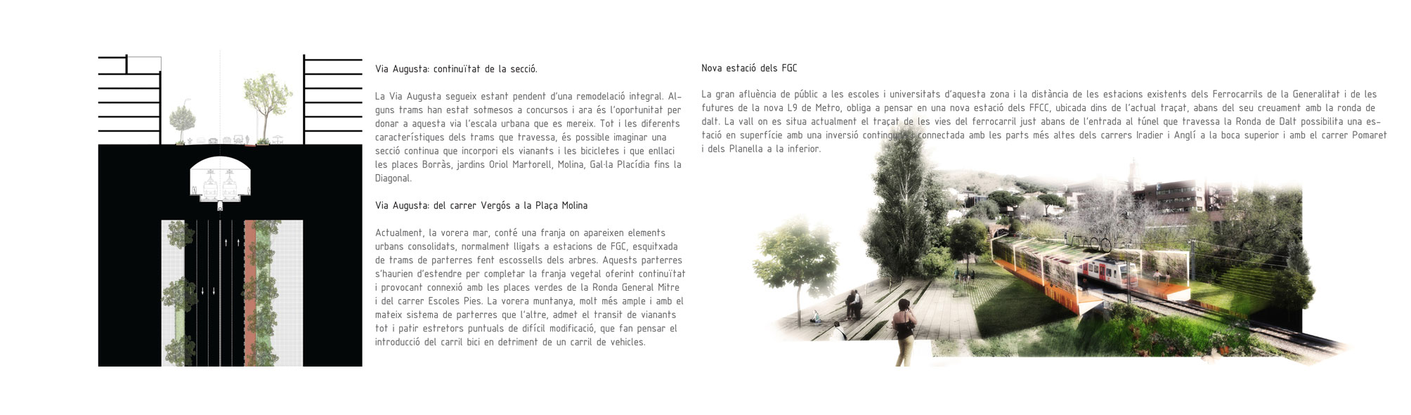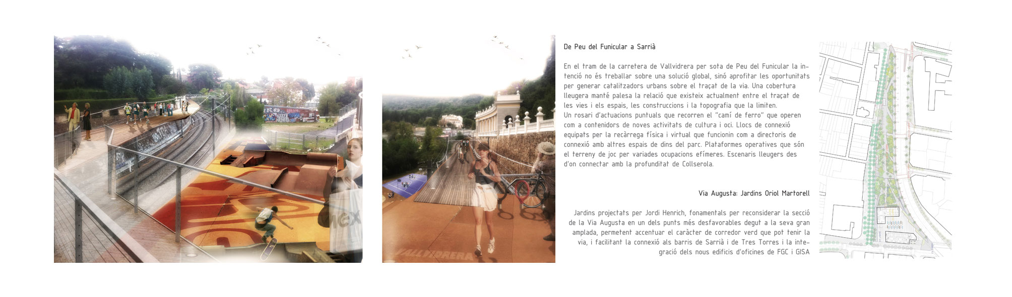 Tres Torres, Bonanova, Sarrià, Vallvidrera… no parece que sean una de las prioridades de mejora de esta ciudad aunque precisamente por el hecho de que se trata de un espacio con un uso muy intensivo, y con un carácter claramente metropolitano, todas las mejoras imaginables, no solamente repercutirán positivamente en los barrios, sino que también en la ciudad en general. En este sentido, nuestra propuesta pretende estender las limitaciones espaciales y temporales de la Porta, entendiendo esta como una puerta metropolitana histórica que involucra líneas de infraestructura que pueden coser la ciudad transversalmente desde el mar hasta la montaña.