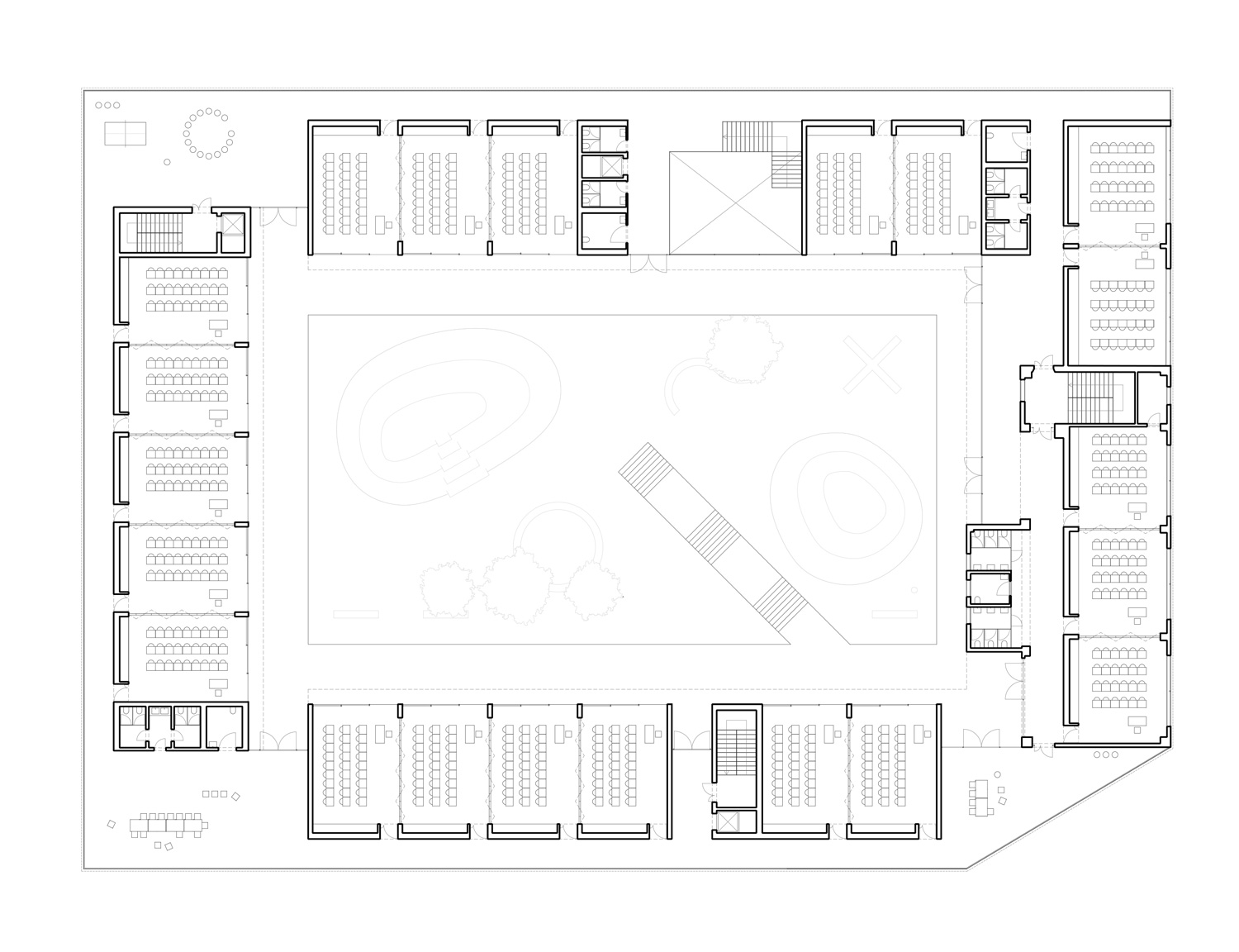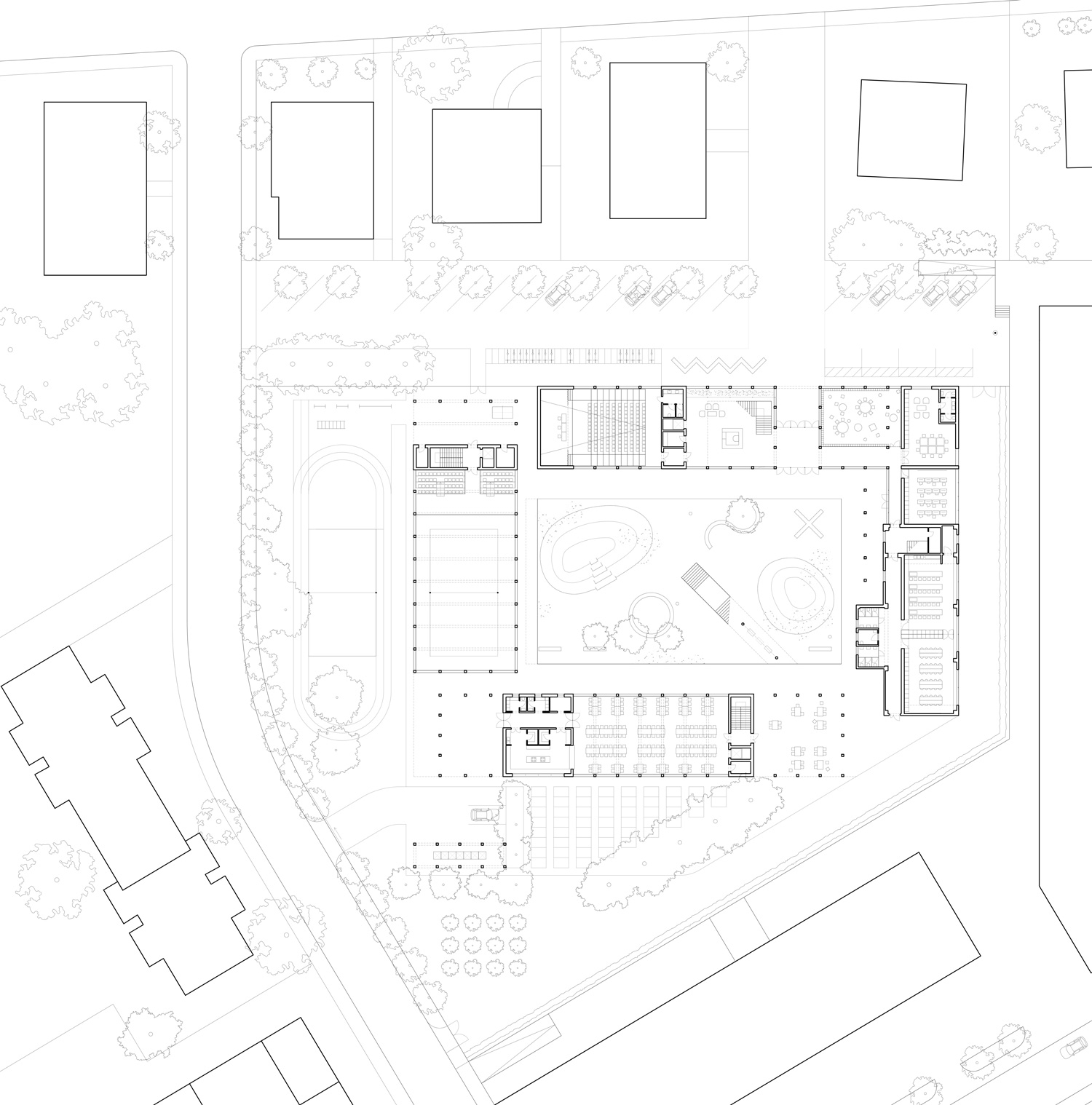 ☉ Primary school is a proposal by Supervoid Architects designed in 2019. It is located in Matelica Italy in an urban and park setting. Its scale is medium with a surface of 3.800 sqm.