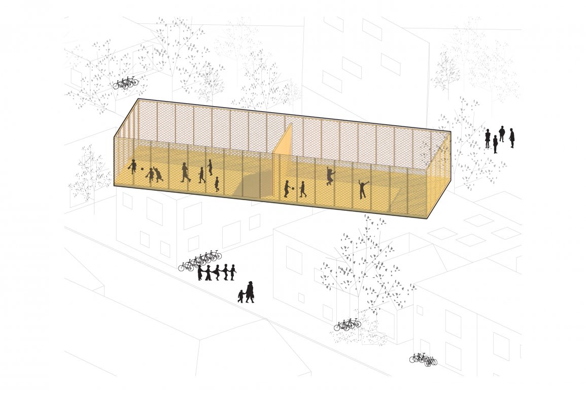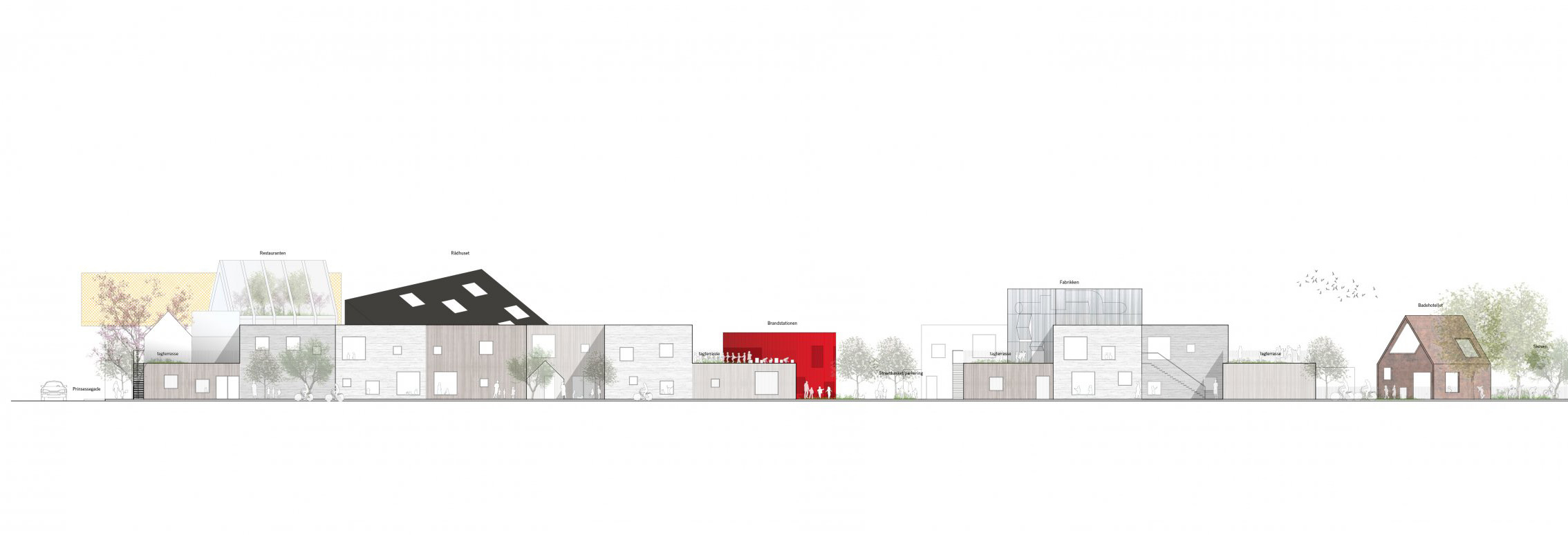 The daycare center in Prinsessegade is a city for kids! It’s not one huge building but rather a cluster of many small and varied buildings, grouped around two central streets that connect to the surrounding city structure. Like Copenhagen, the Kids’ City has different neighbourhoods, different houses, different public spaces, squares and parks. It even has a city hall, a fire station, a restaurant, a stadium, a factory and a golden ballcage on the roof. Most buildings consist of a general city mass, based on a rational, modular construction system, while the special buildings of the city stand out both in terms of function and architecture.