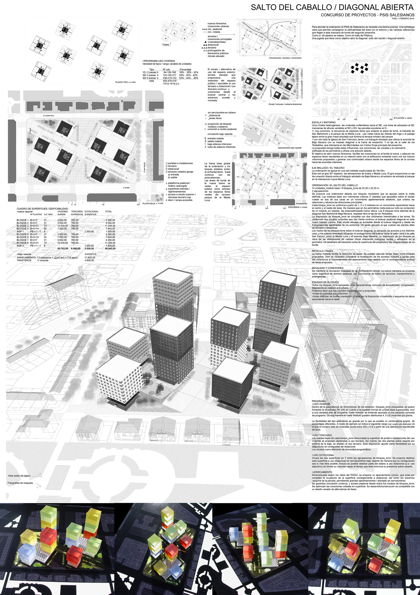 ☉ PSIS Salesianos Pamplona is a proposal by Acha Zaballa for Navarra de Suelo y Vivienda Gobierno de Navarra and Ayuntamiento de Pamplona designed in 2014. It is located in Pamplona Spain in an urban setting. Its scale is large. Concepts such as densification and tower are explored. Review the 2 proposals for the same competition.