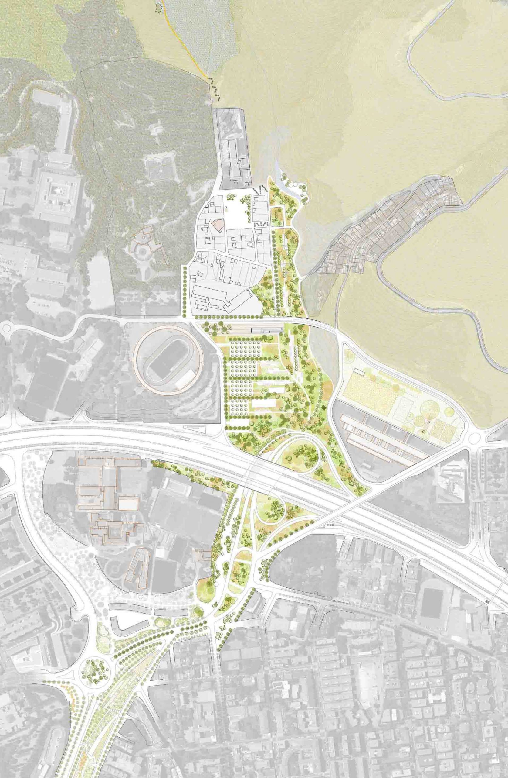 Un modelo de aproximación que no está reñido con la necesaria potencia de la imagen de conjunto. El resultado es un proyecto que reconstituye los elementos topográficos y vegetales en los puntos más sensibles, da un repuesta eficaz al conjunto de asentamientos informales, establece elementos de intercambio entre los usos urbanos y los naturales, y modifica la vialidad excesiva allí dónde ello no implica costes medioambientales contrarios al objetivo que se propone.