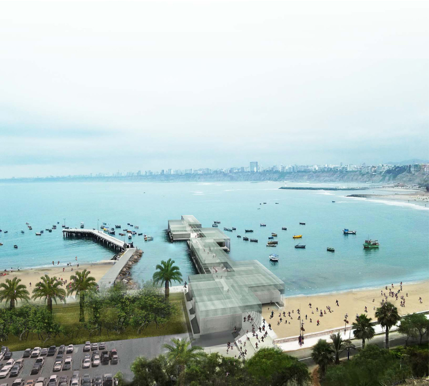 El proyecto rompe con la idea de muelle tradicional proporcionando estancias intermedias, vistas cruzadas, zonas de recreación, así como descargas de productos y embarcaderos para turistas y pescadores. Para ello, la estructura y la circulación se conciben como un sistema integrado a través del desarrollo de una superficie única con varias alternativas en su recorrido, una piel continua que permite la interacción entre los distintos niveles. El edificio puede ser observado como un paisaje de espacios rápidos y lentos en los que los usuarios fluctúan según los días y temporadas, donde la movilidad y la intensidad se combinan en interacciones espontáneas reconsiderando la ocupación y apropiación del espacio público. La transferencia de programas así como la flexibilidad para dar cabida a las intensidades y condiciones cambiantes se consideran vitales para el diseño del proyecto. Los esquemas de usos y la posibilidad de crecimiento proporcionan una condición de flexibilidad en el tiempo que dotan de un enorme valor al futuro del muelle de la Playa de Pescadores de Chorrillos.
