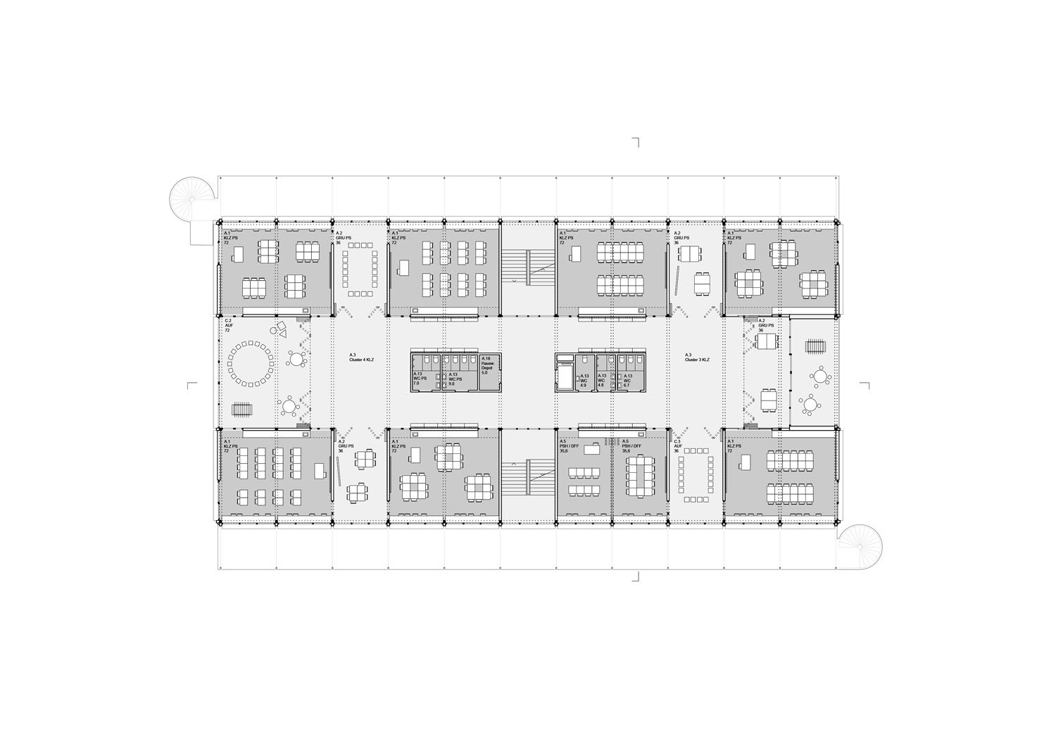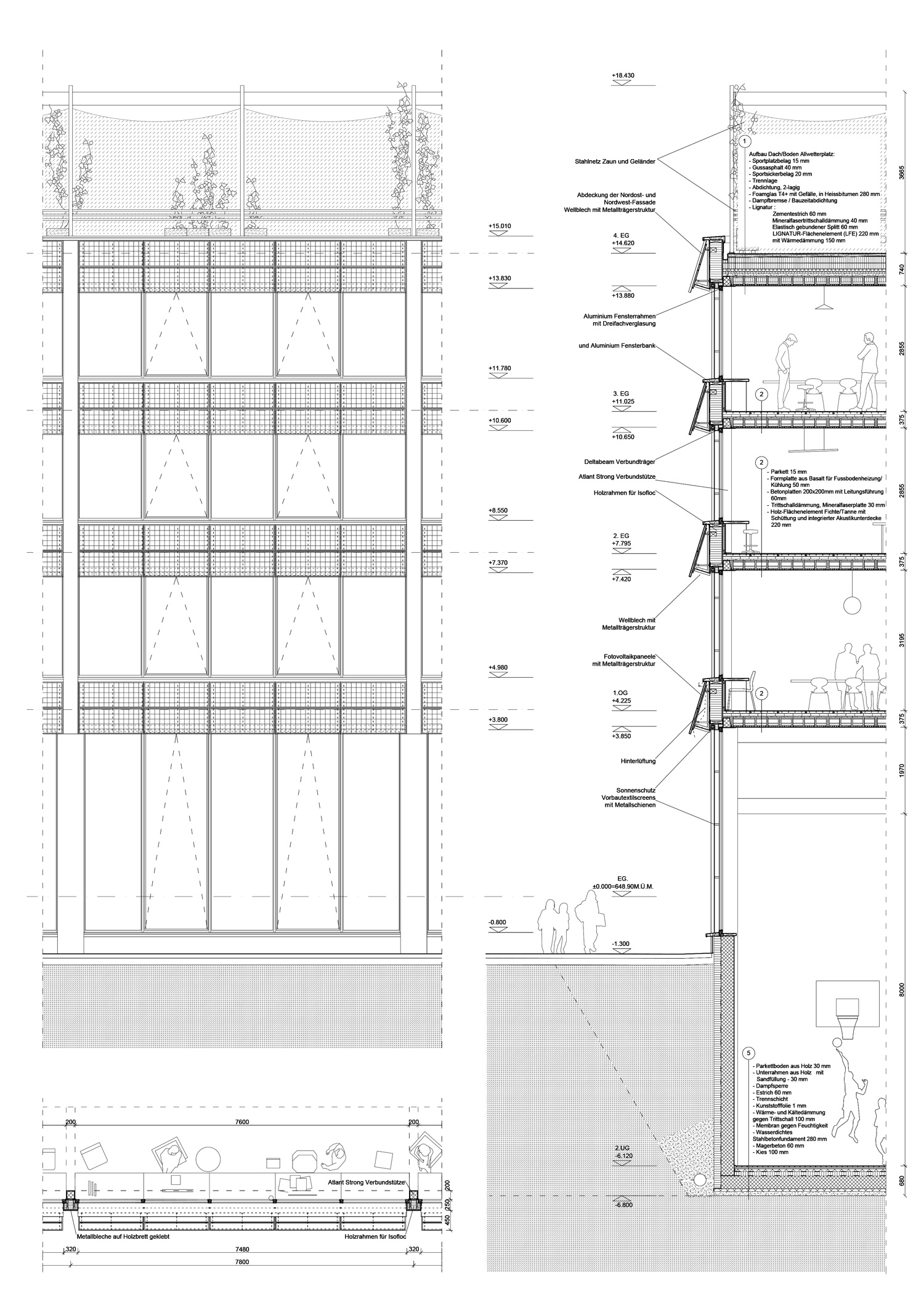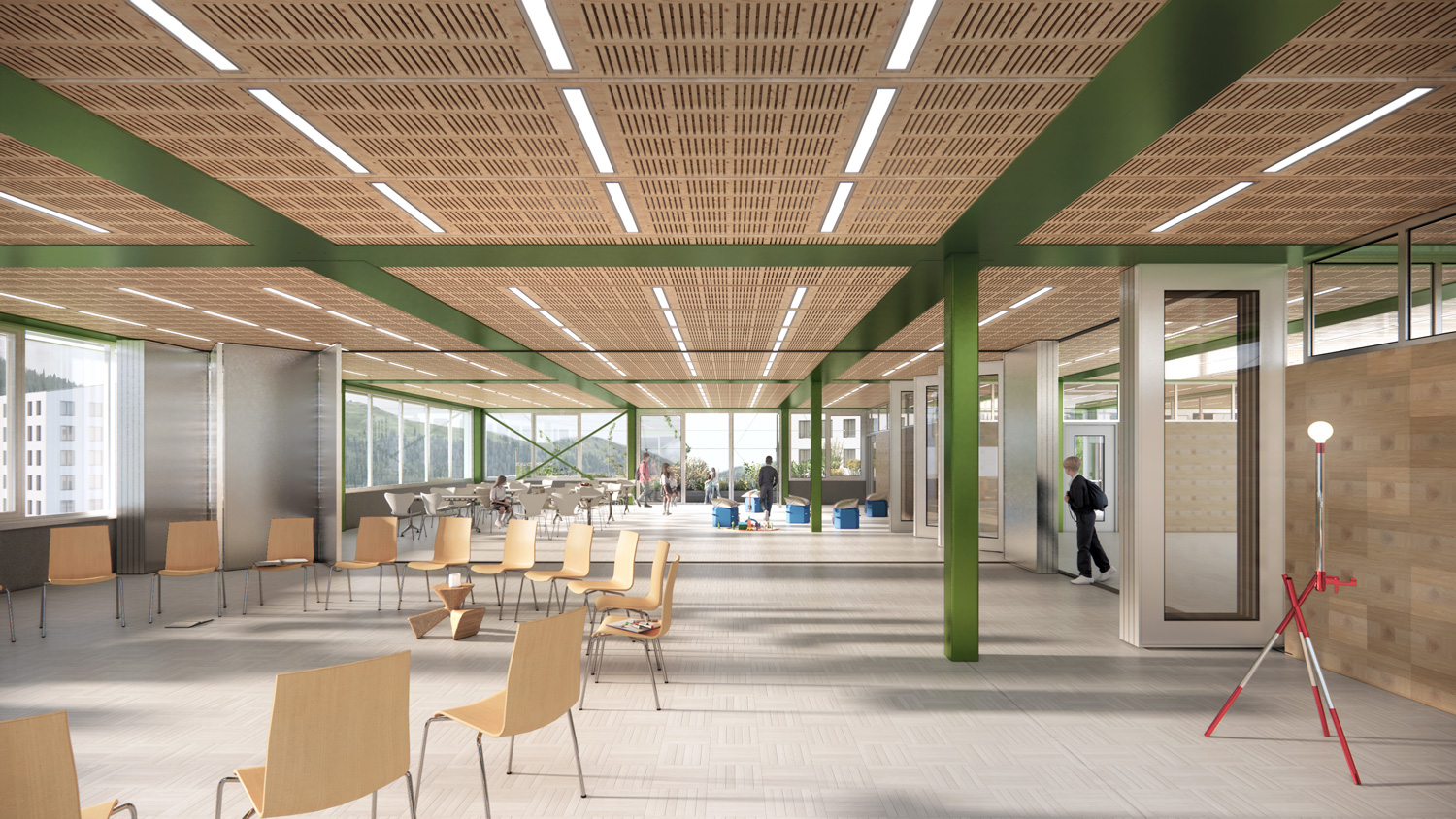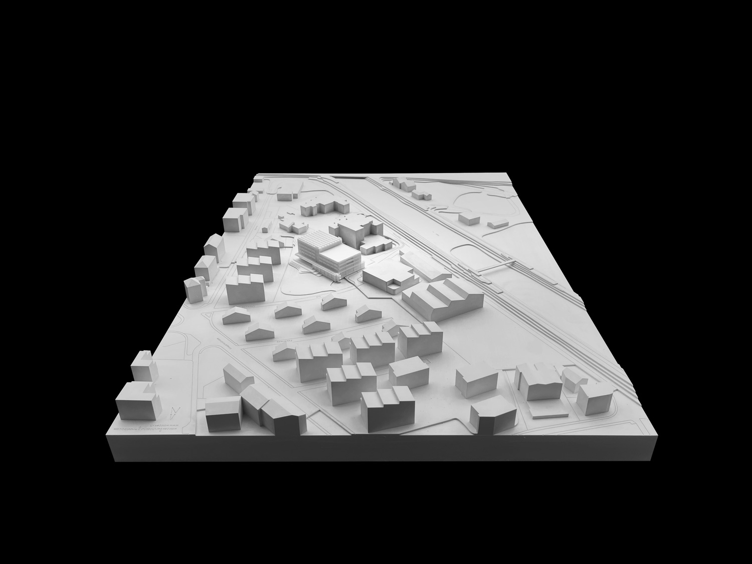 The project is a school with two faces: an urban, mineral front facing the existing brutalist 1970-s schools and a green nature front facing the green space. The park, which we call the “New Biotope”, is a public green space that is a place for play, a green sponge for water infiltration, a place of biodiversity and a noise buffer between the school building and the adjecent residential buildings. The generous balconies are used as a transitional space between the park and the building and serve as elevated space for students’ gardening activities. The project provides a compact school building with minimal footprint adjacent to the existing school complex, maximizing open space for the development of a new park, a new biotope, and reuses the materials of the existing buildings on the site.