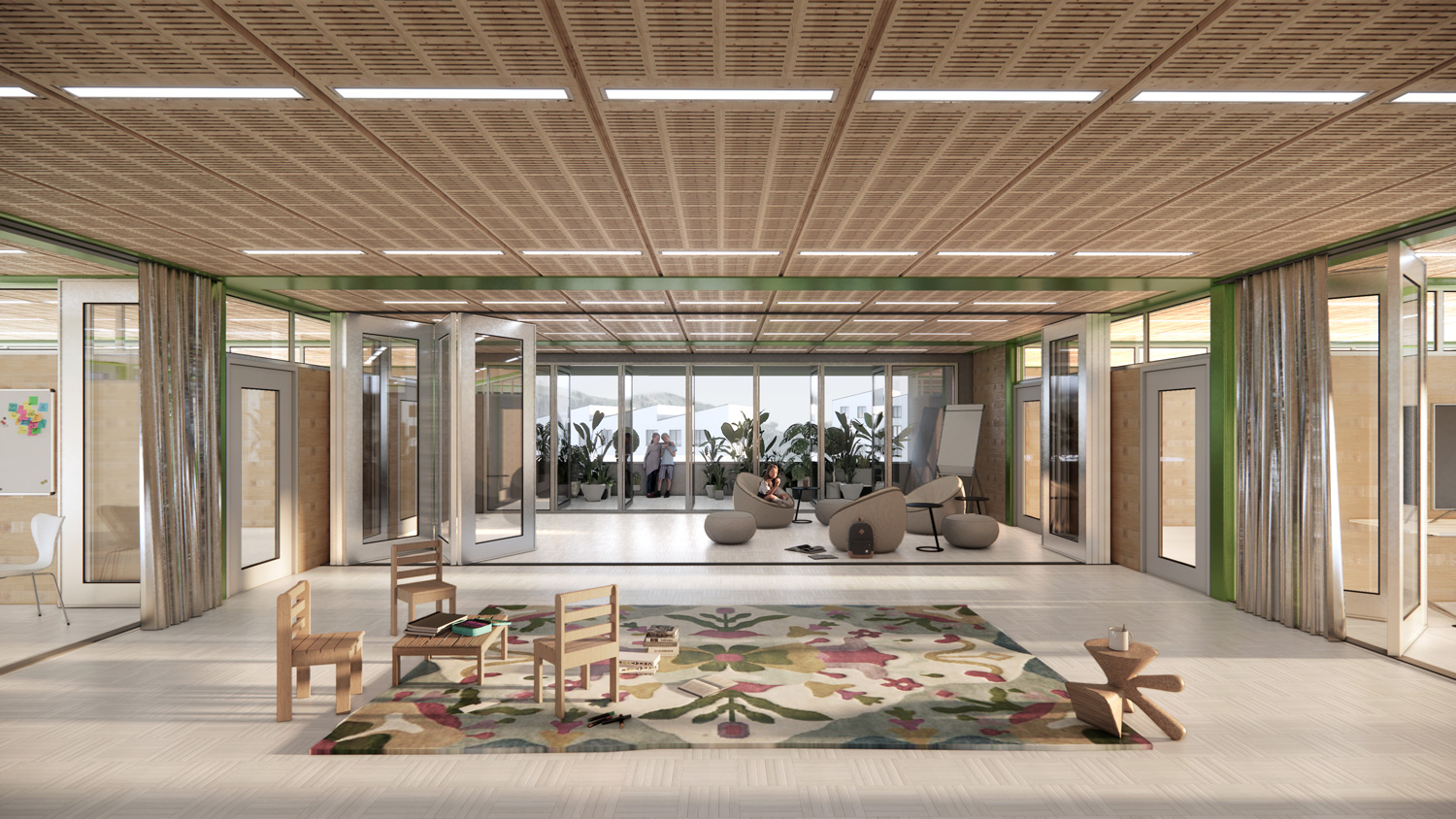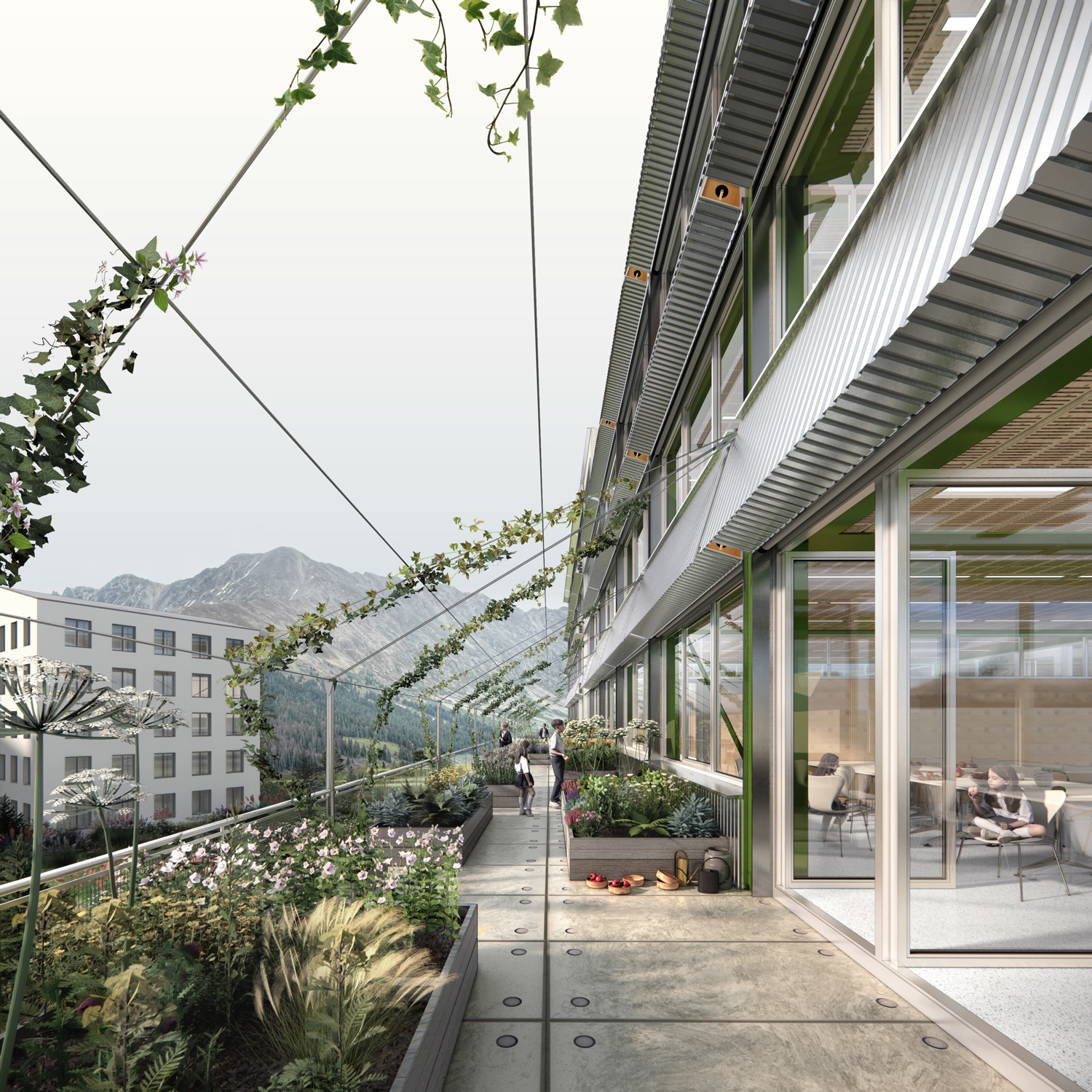 ☉ Rock & Sponge is a proposal by KOSMOS Architects for Municipality of Visp designed in 2024. It is located in Visp Switzerland in a riverside setting. Its scale is medium with a surface of 5.048 sqm. Key materials are wood metal and vegetal. Max-Viz Studio collaborated as visualizer. Concepts such as terrace folded facade and grid are explored.