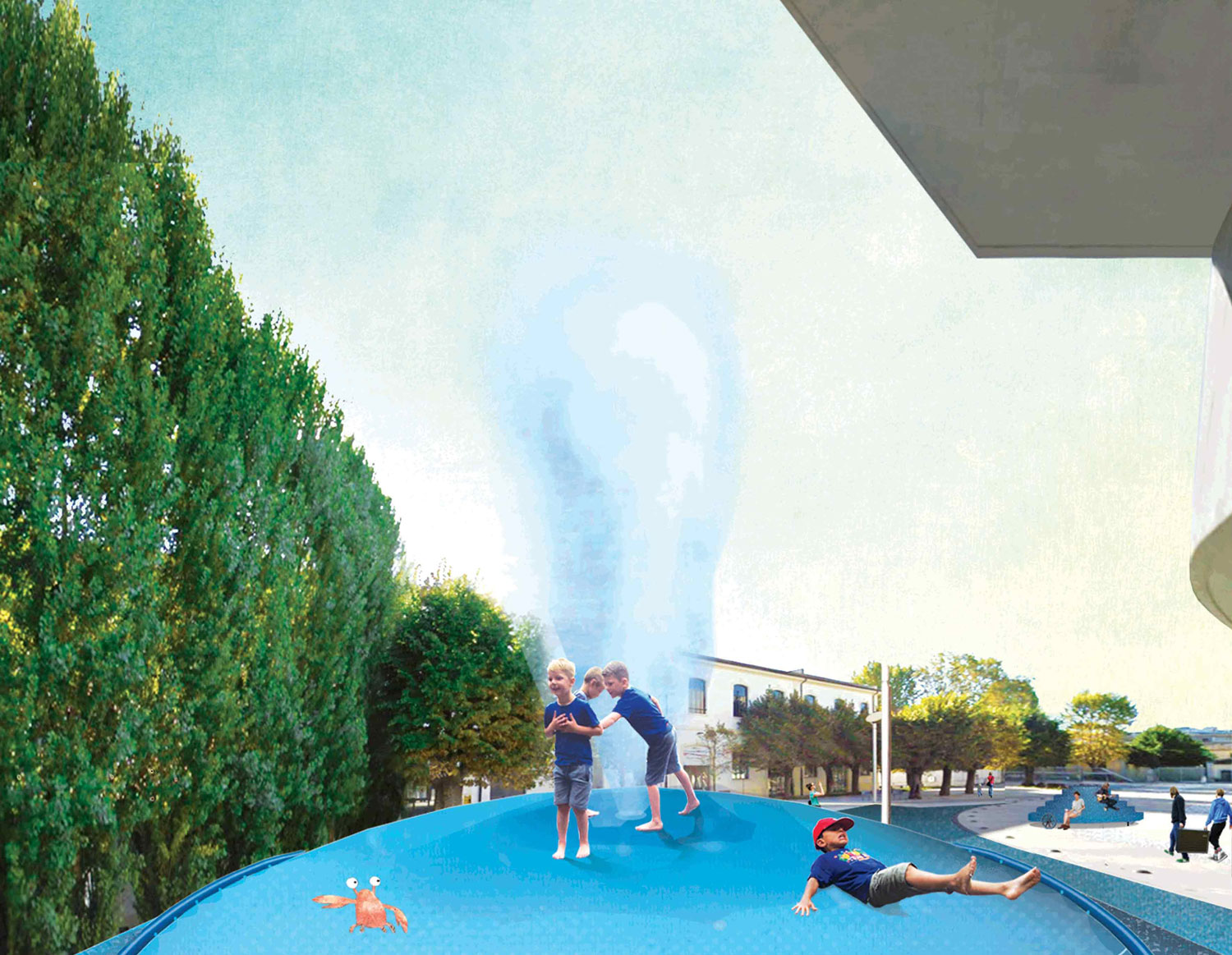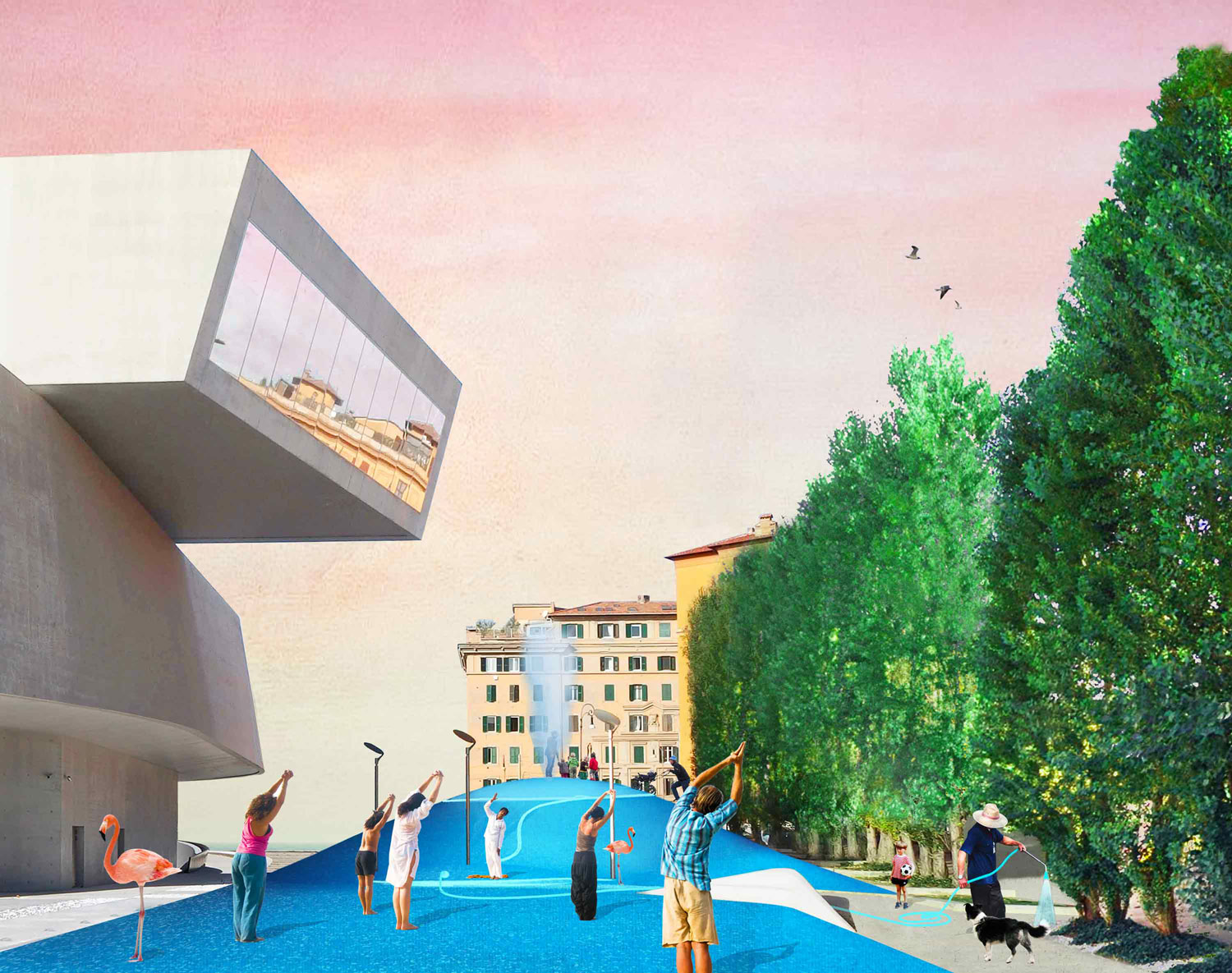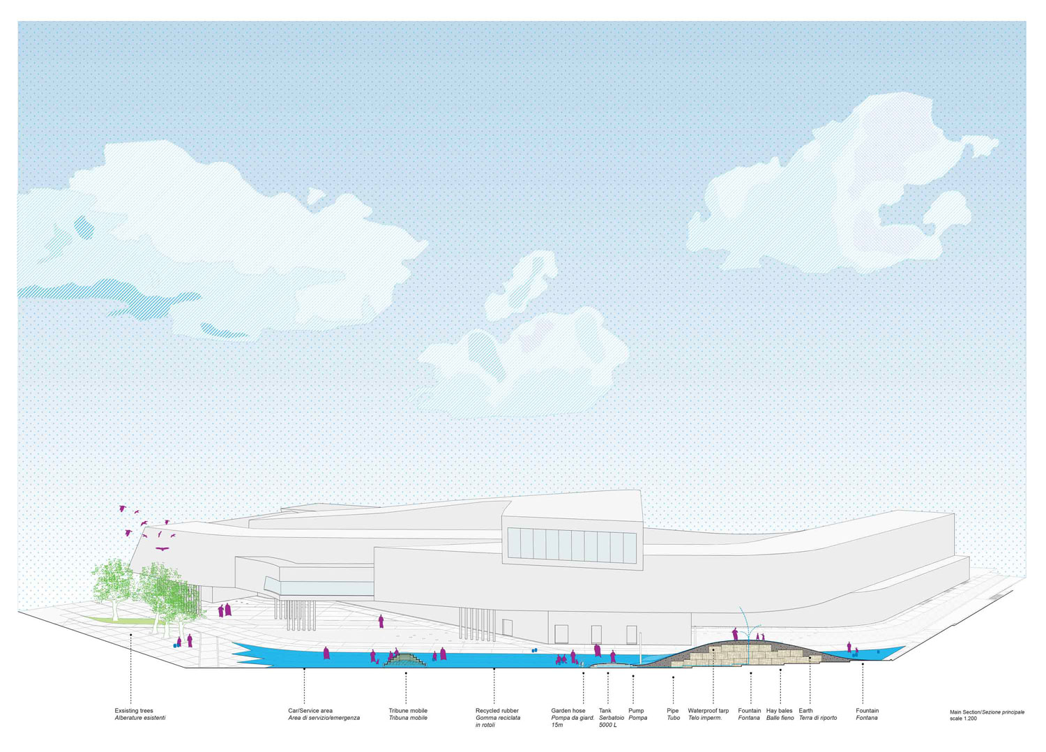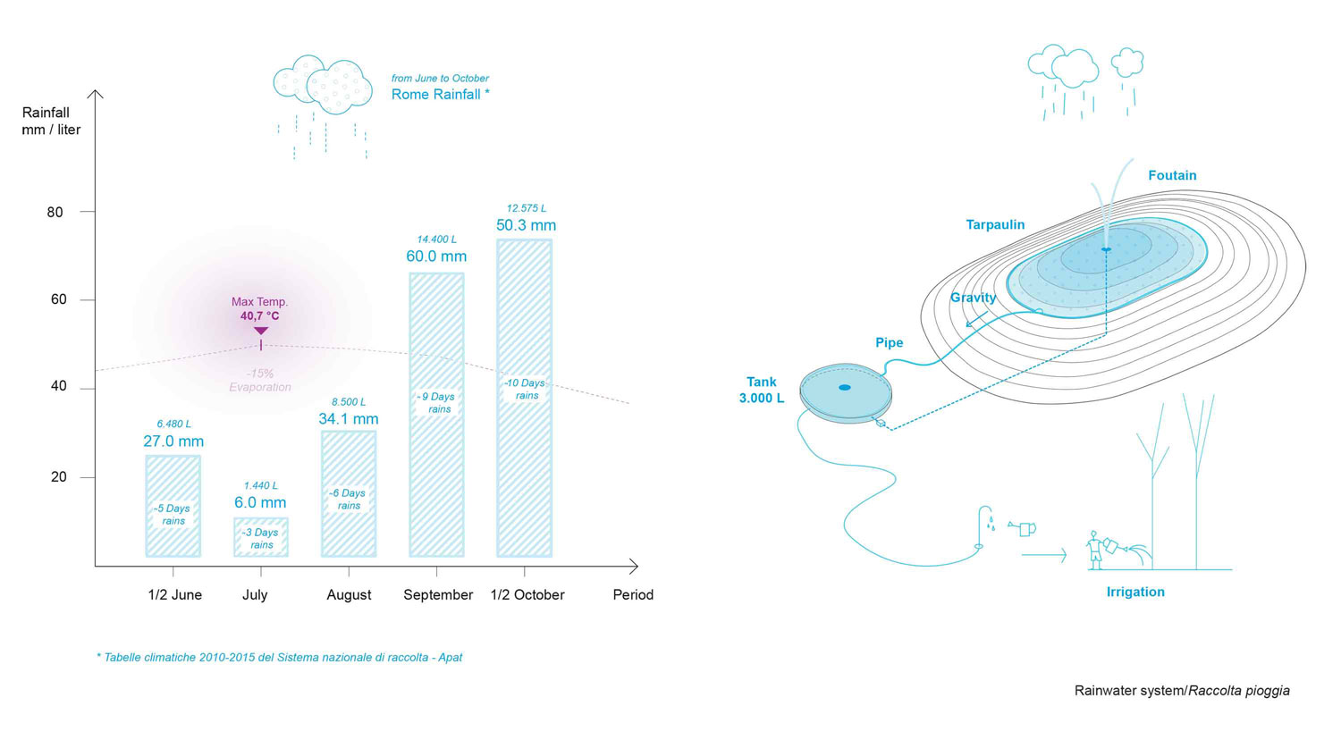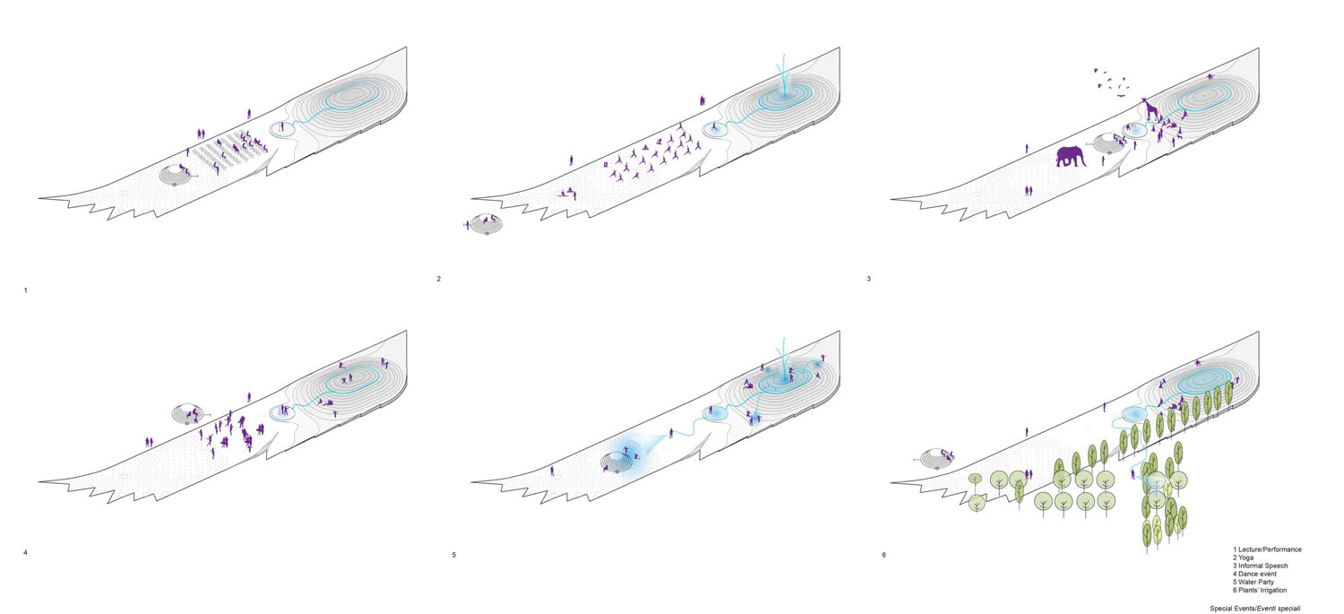 It is an important natural resource necessary for the survival of all ecosystems, including humans, animals, plants and microorganisms. The collected water can then be used to irrigate the existing trees of the Maxxi square and to play in different ways. The overall idea is to reduce the use of potable water. But why collect water during the summer? Because water is scarce during the summer in Rome. Therefore, the dry period is the best moment to test and show the importance of this resource, raising awareness among the Yap-ers who will participate in activities on the Belly. With the project Rub the Belly we can collect up to 40.000 liters of water during the Yap 2016. This summer we will dance together on the belly to make it rain!