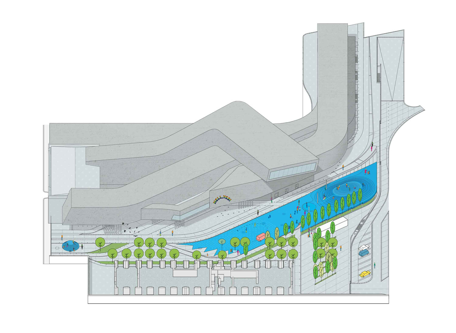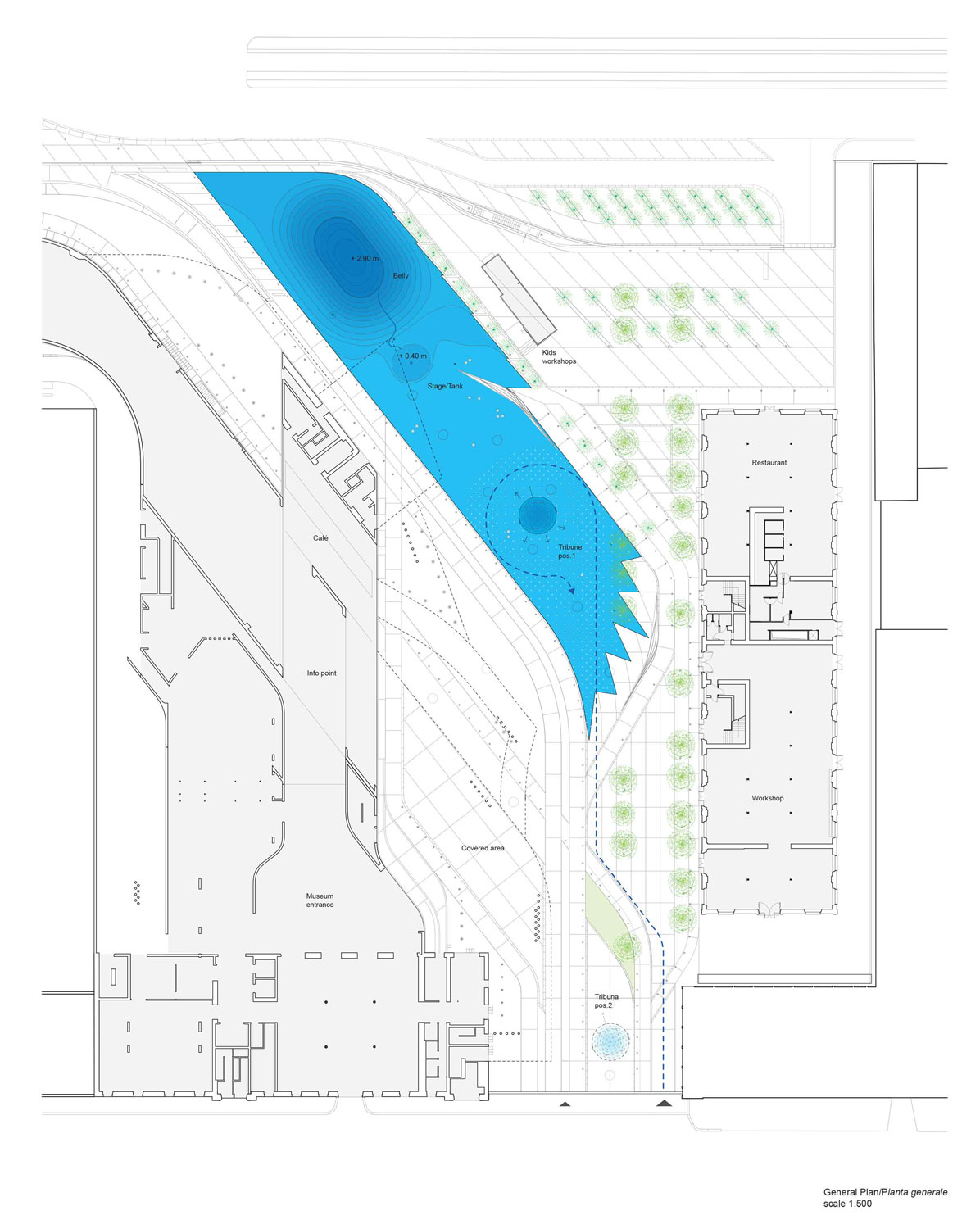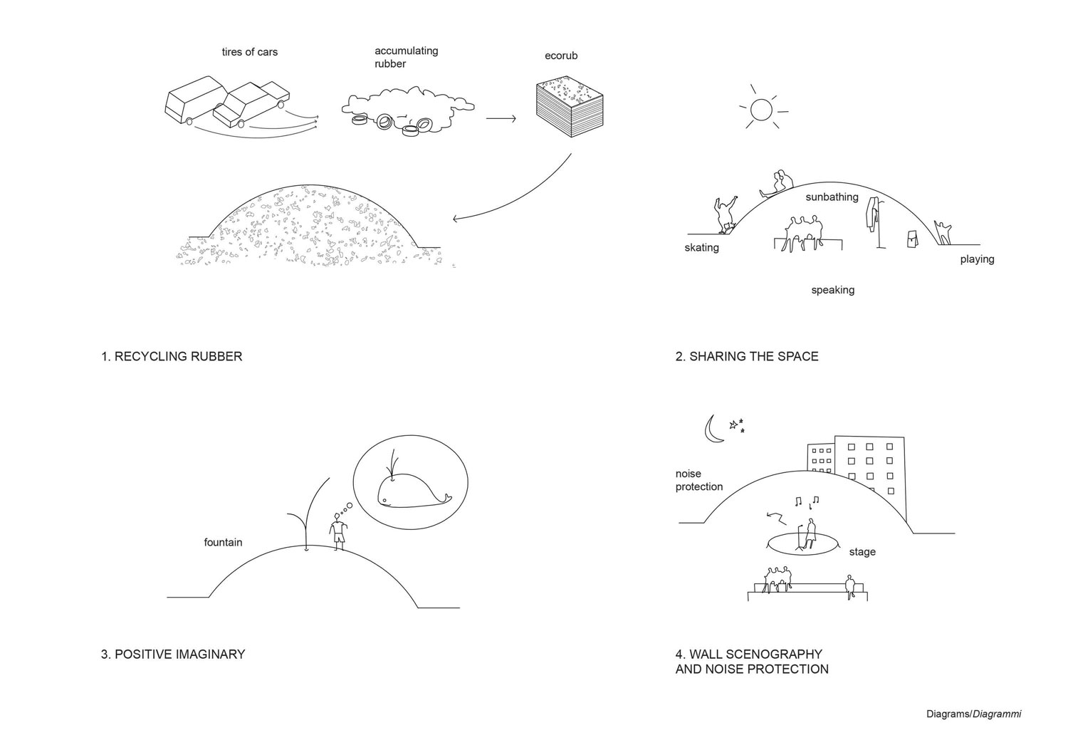 ☉ Rub the Belly is a finalist proposal by Angelo Renna designed in 2016. It is located in Rome Italy in an urban setting. Its scale is small with an estimated budget of 70.000 €. The concept of pavimentation is explored.