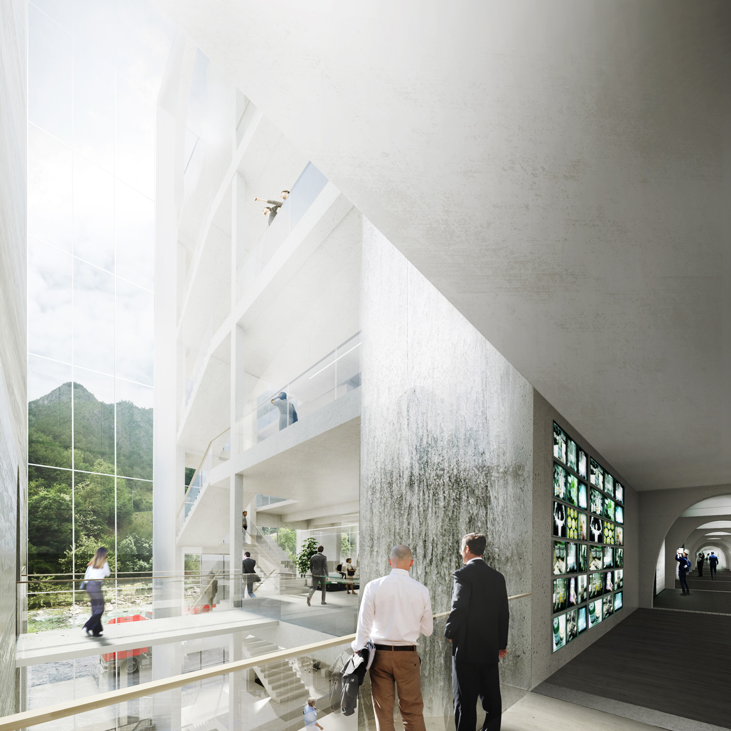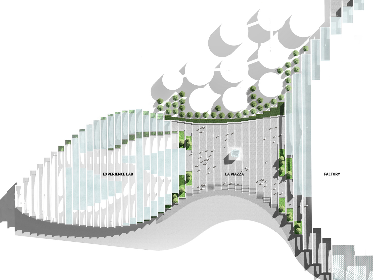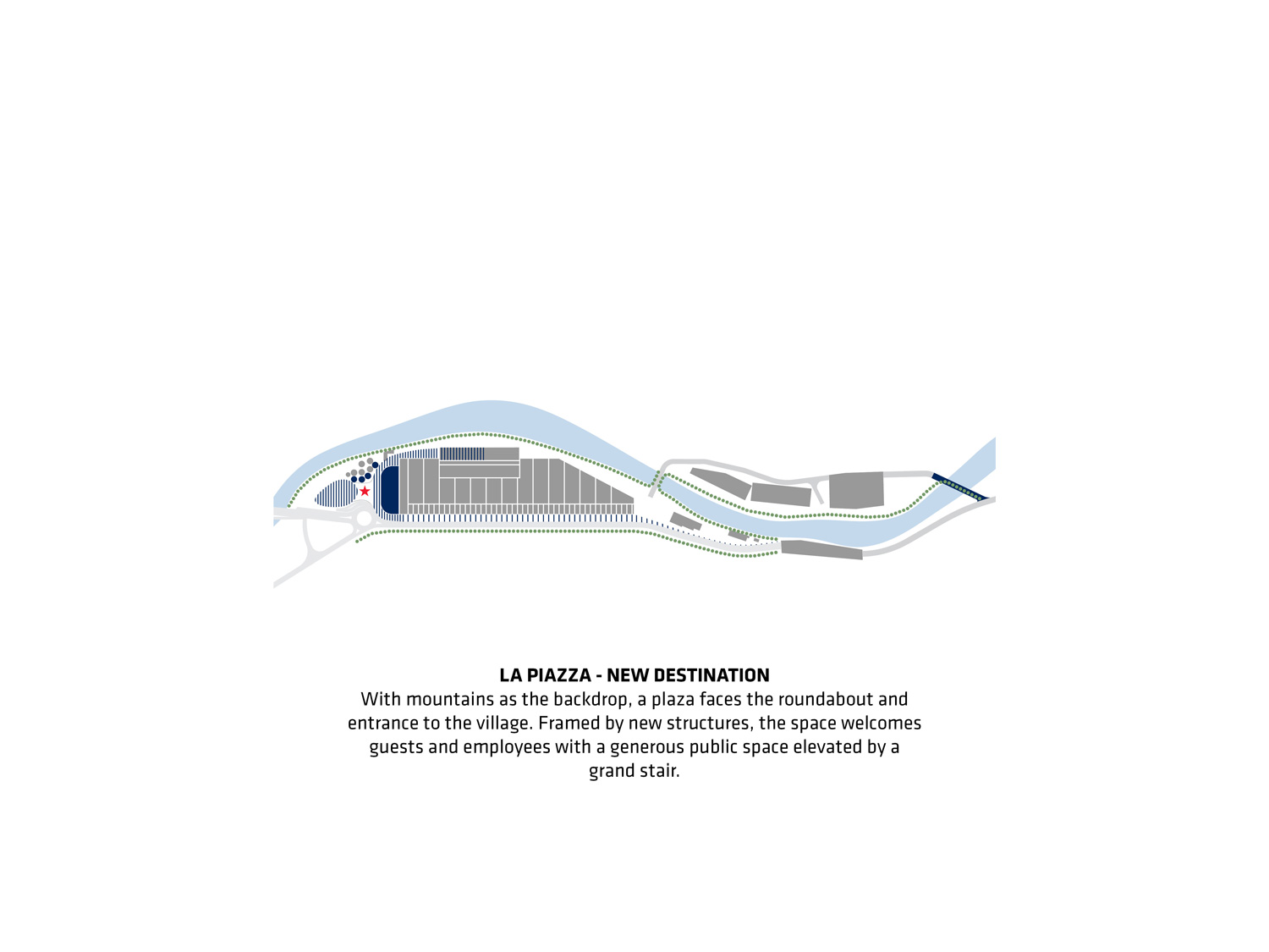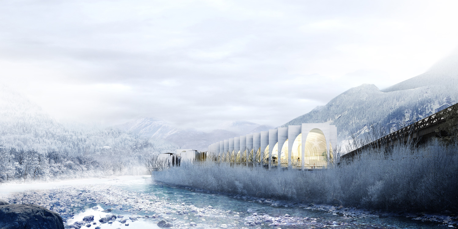 The S.Pellegrino brand identity is deeply rooted in its origin in the San Pellegrino Terme: from the majestic nature, purity of the source and historical heritage, to the century-long development of craft and Italian way of life. As such, the new S.Pellegrino Flagship Factory should not be a radical superposition of new messages or foreign elements, but rather an enhancement and elevation of the qualities that are already abundant in and around the river valley. This proposal offers a fresh take on an ancient wisdom, revisiting the classic elements of Italian architecture and urbanism: the arcade, the viale, the piazza and the portico create an architectural environment where production and consumption, nature and architecture, outside and inside, and making and enjoying are integrated to elevate the experience for visitors as well as S.Pellegrino staff. Framed by the river valley and mountains on either sides, employees and visitors will feel immersed in nature from all directions, with abundant views to the flowing river, the forested slopes, the snowy summits and the clear skies.