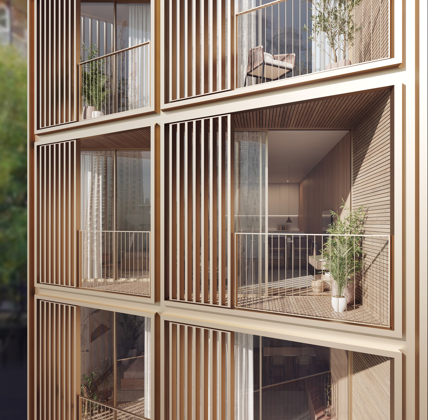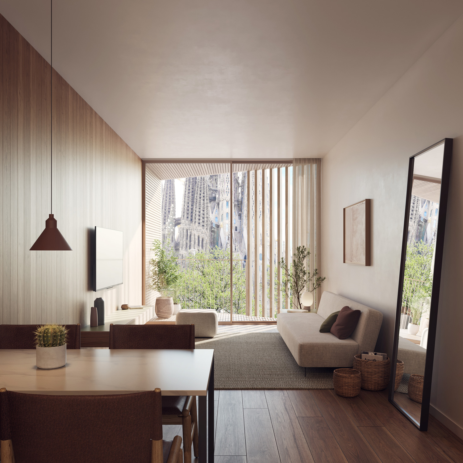☉ Sagrada Familia Residencial Building is a proposal by Bxd Arquitectura for Yessflats designed in 2020. It is located in Barcelona Spain in an urban setting. Its scale is medium with a surface of 1.200 sqm an estimated budget of 1.200.000 € and a ratio of 1.000 €/sqm. Key materials are wood and concrete. bside visuals collaborated as visualizer.