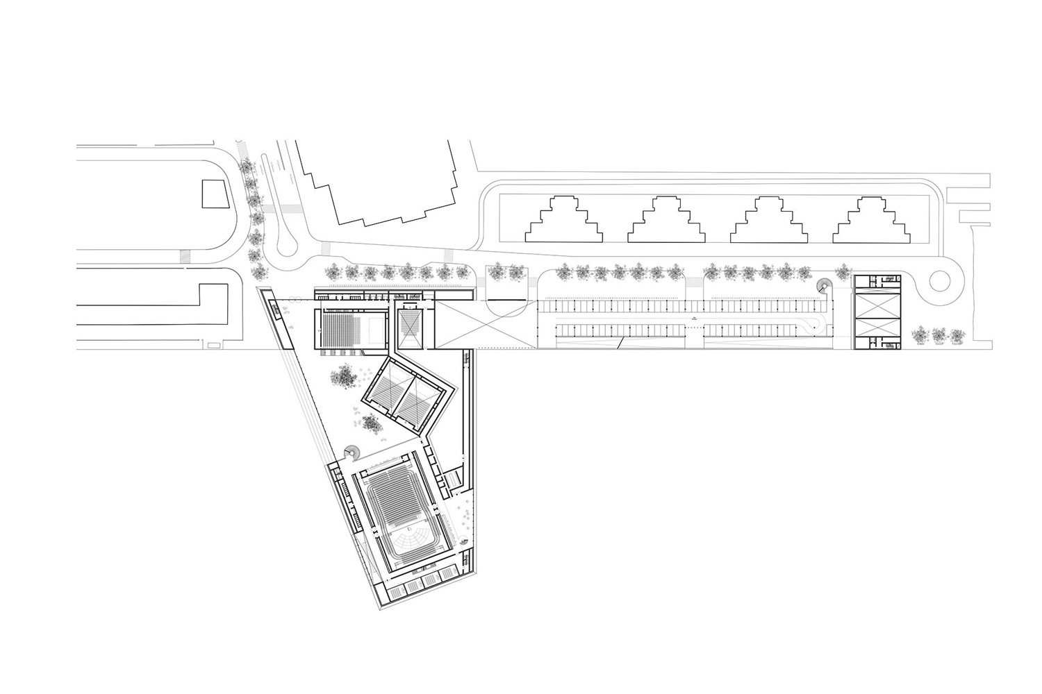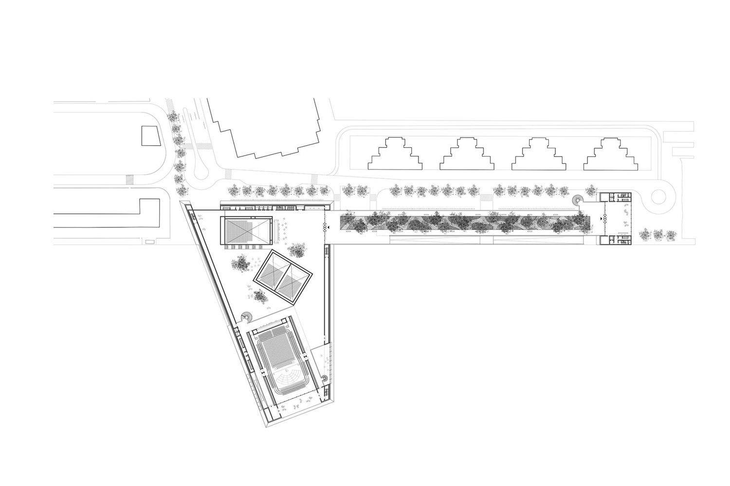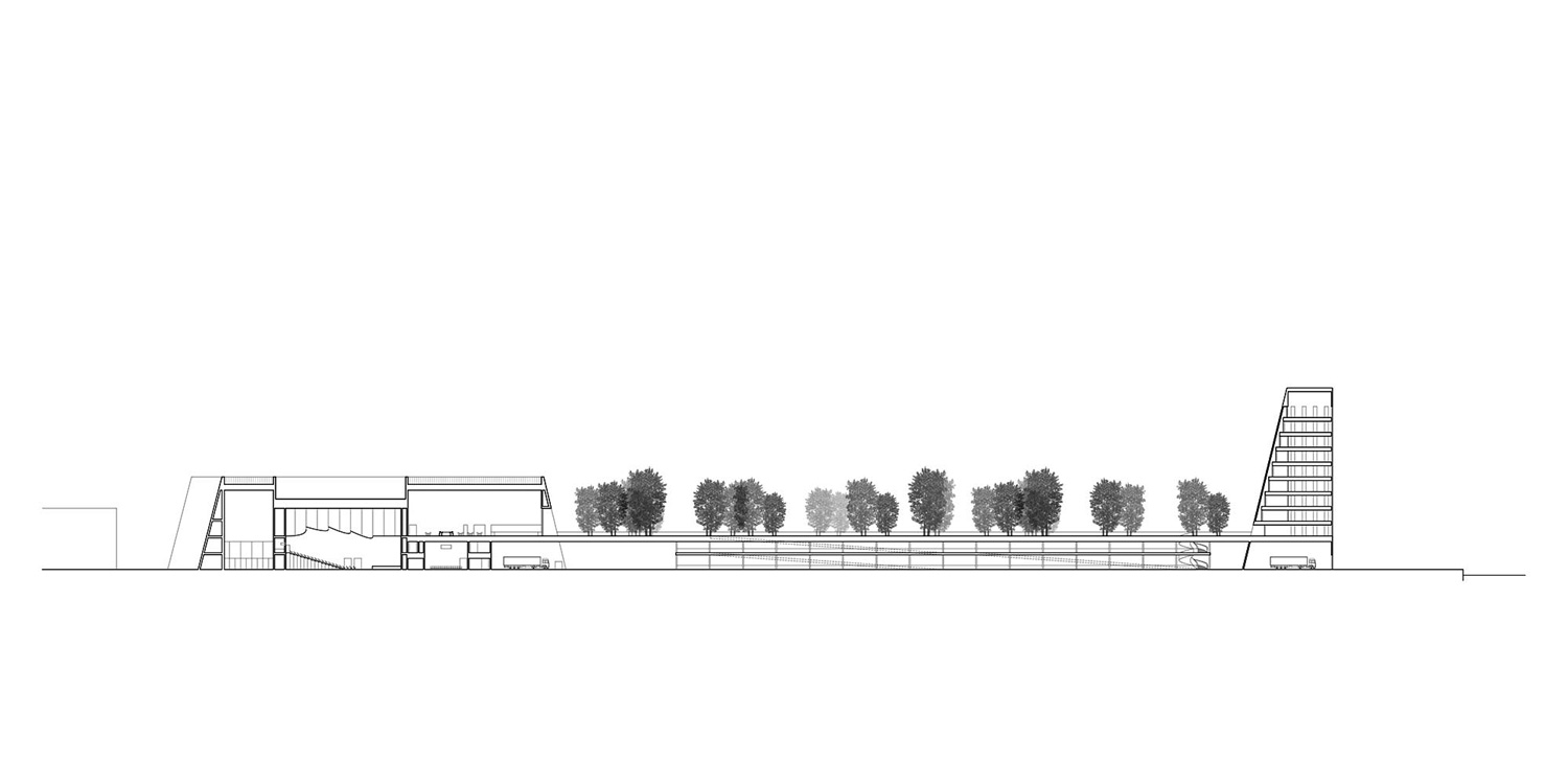 Designed to cater to a variety of events, the main volume houses 2,000-capacity, 500-capacity and 300-capacity events halls. Additional amenities include a foyer, a multipurpose hall, a VIP lounge, a press room, dedicated backstage areas for speakers, and loading facilities. Meanwhile, a tower-like structure hosts office space. A key feature of the design is the bridge connecting the two main volumes. This structure incorporates a public roof garden which lends a new public gathering space and connection with nature.