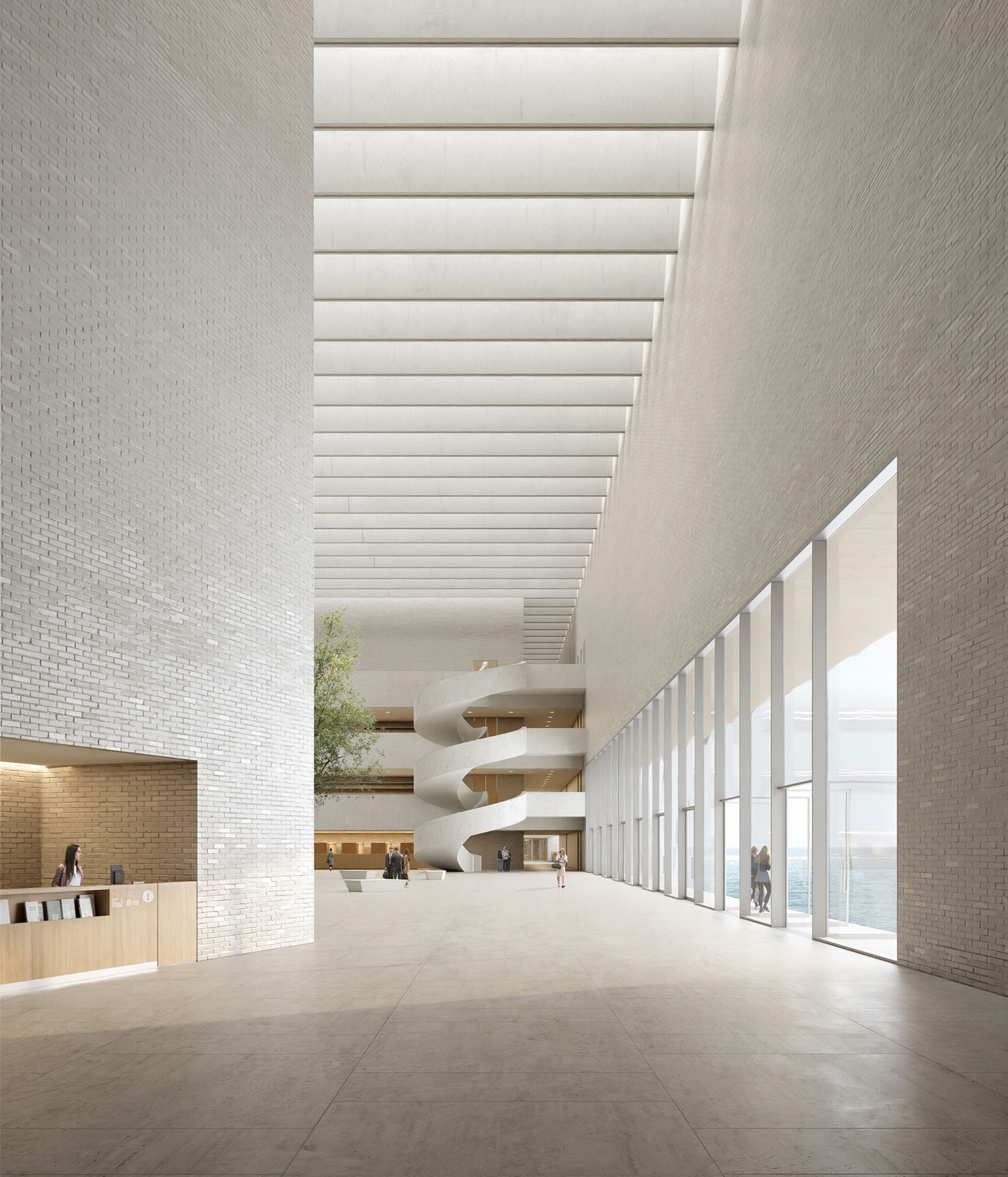 The design takes its cue from the San Carlos bastion, a former defensive structure that once stood on the site. Dismantled in the late 19th century, the bastion’s memory lives on in the design’s two distinct volumes. These tapered masses will be clad in white glazed ceramic bricks in a nod to Valencian tradition, resulting in a glimmering facade. Both volumes feature strategically located apertures offering carefully curated views of the city and the Mediterranean Sea. Together, they will be christened ‘the citadel’ and ‘the lighthouse.’