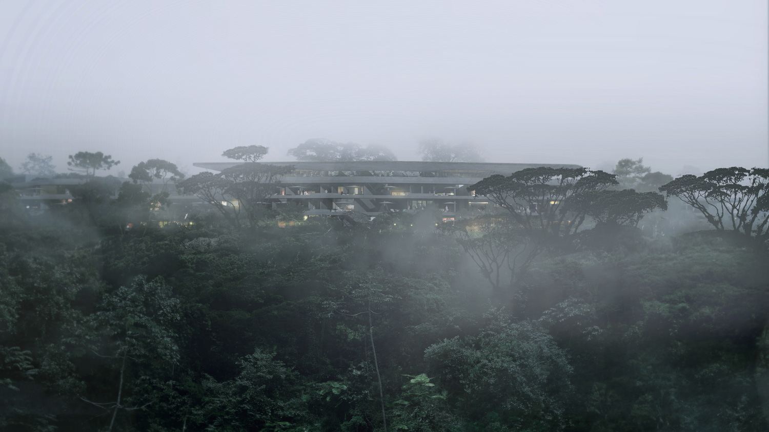 The architecture undulates harmoniously with the contours of the slopes and cliffs with nominal impact and primal elegance synchronizing with the topography and the rhythms of the environment.