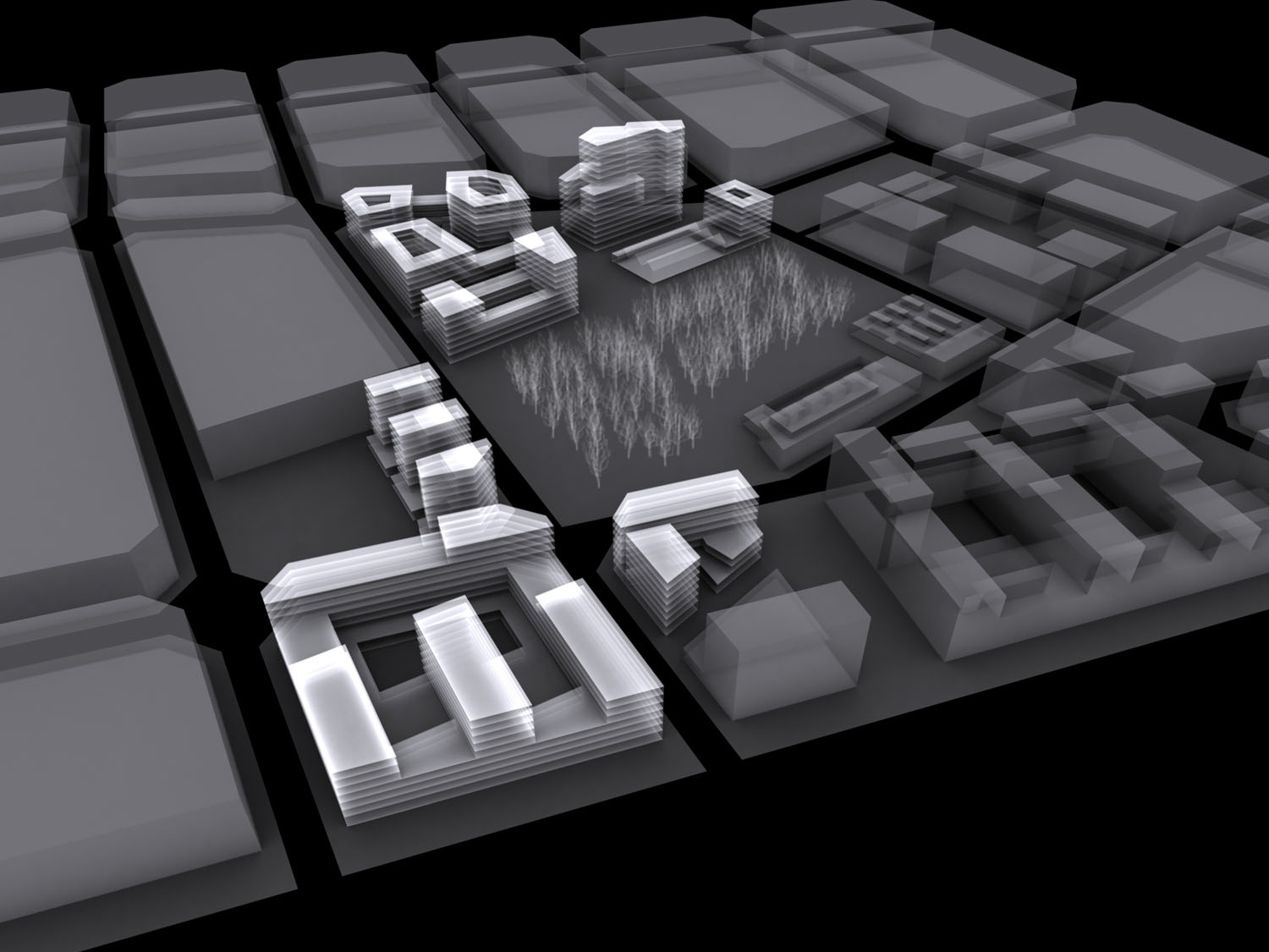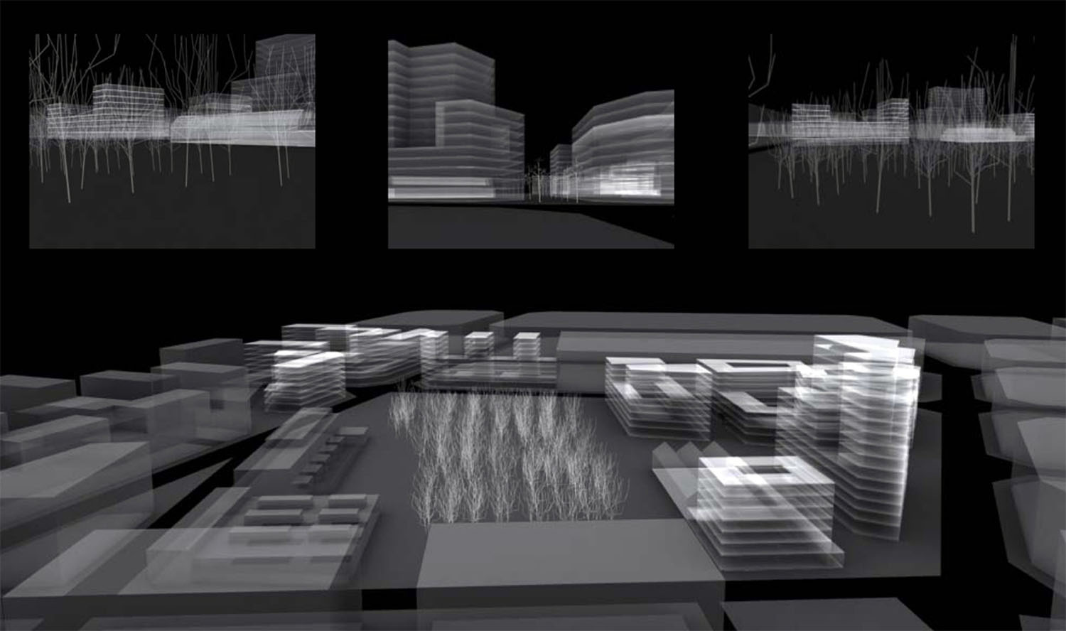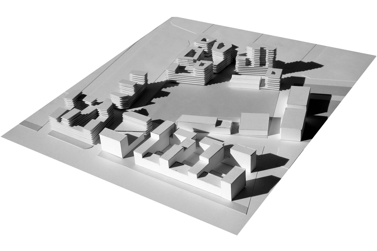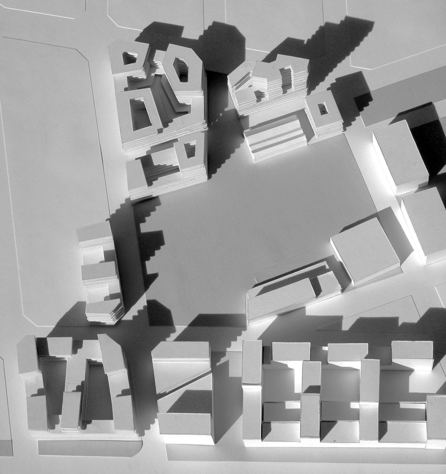 De acuerdo con esta primera voluntad de encontrar elementos morfológicos propios del barrio, el estudio intenta avanzar en la hipótesis de manzana cerrada o semi-cerrada, con edificación alineada a la calle en las plantas más bajas, recogiendo los aspectos normativos de la MGPM que ya apuntan a soluciones de este tipo en la definición de las alturas y en algunas alineaciones obligatorias. Por tanto, se ha apostado por una definición del espacio público-calle a través de la continuidad de las fachadas, tal como sucede en los tejidos más tradicionales de nuestra ciudad. Sin embargo, la definición tradicional de la manzana queda alterada a partir de la cuarta planta por una ordenación volumétrica que busca mejorar las condiciones de asoleo, ventilación e iluminación del conjunto. La fachada se rompe y aparecen cuerpos de diferentes dimensiones y geometrías, dependiendo de la singularidad de cada manzana. A la claridad formal de la planta baja se añade una mayor complejidad en altura que prefigura un perfil del barrio más rico y con nuevas visiones transversales.
