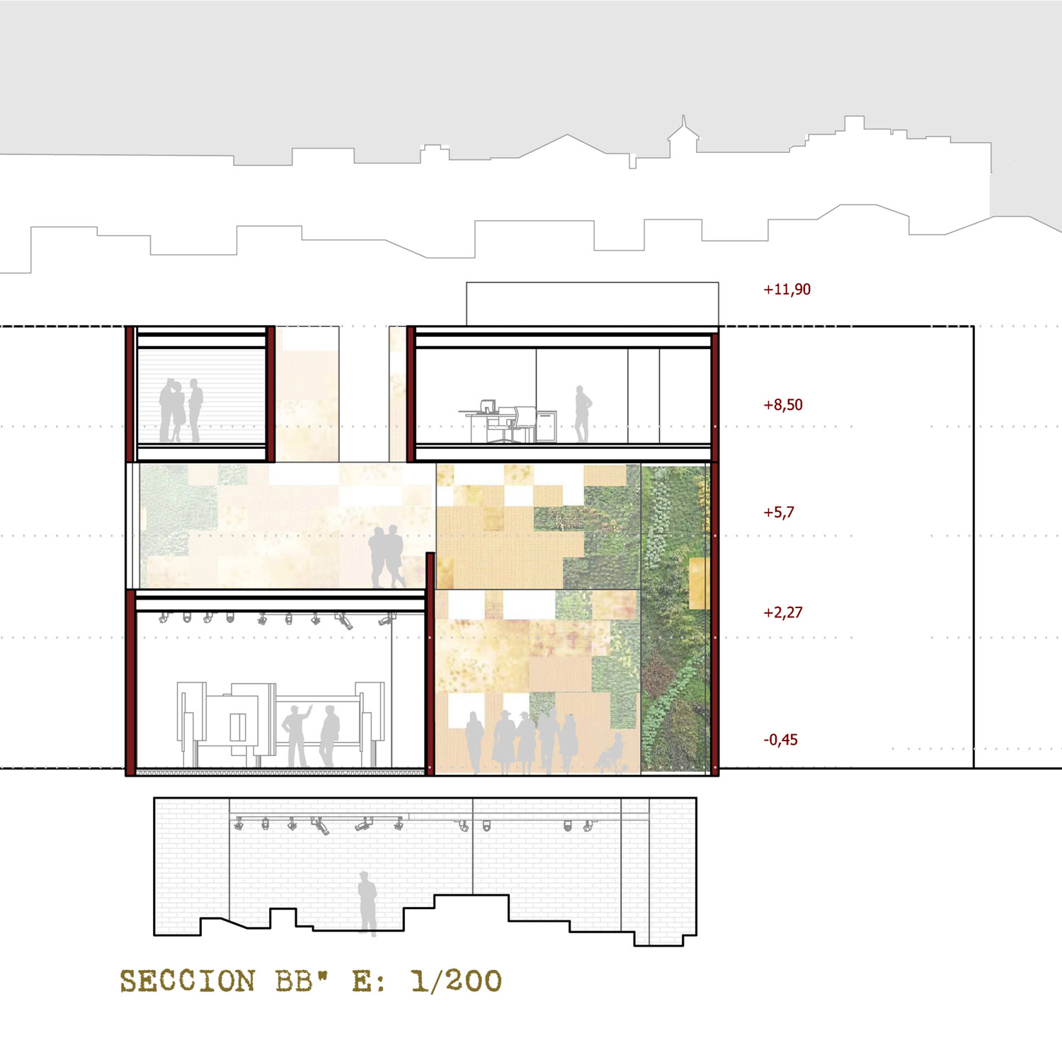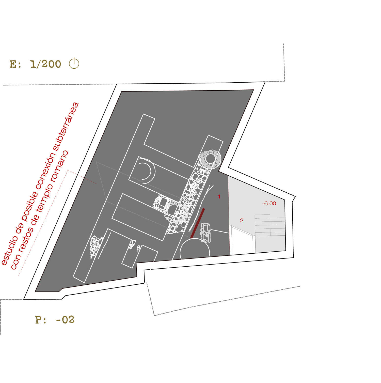 – estudiar una posible conexión subterránea con el templo romano y los restos arqueológicos al otro lado de la calle Capitulares, además de la relación visual creada con la plaza sobre la cafetería a nivel del templo.